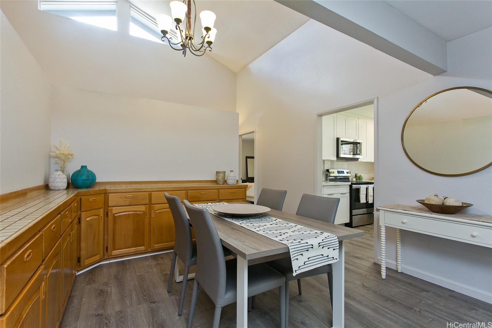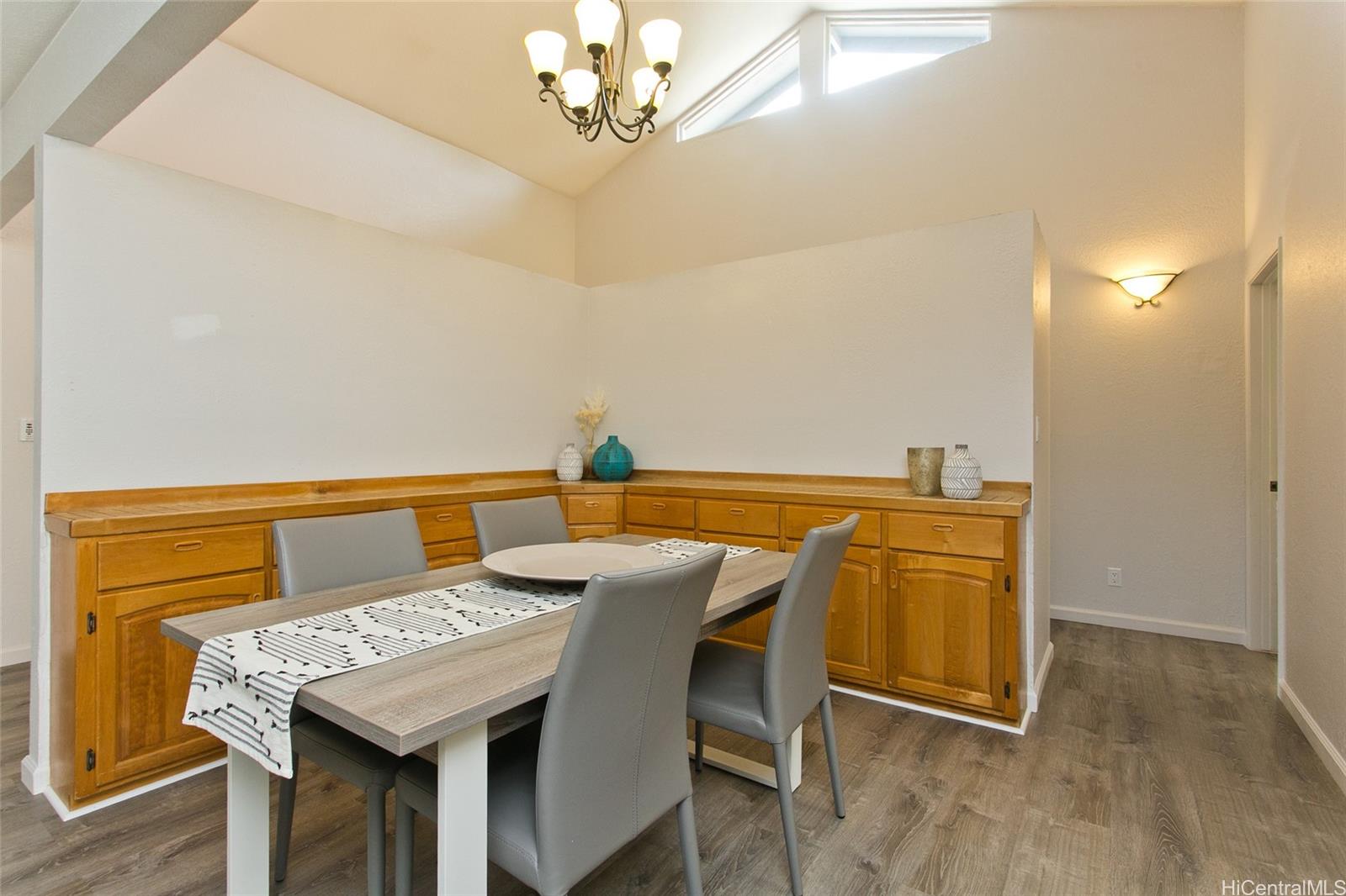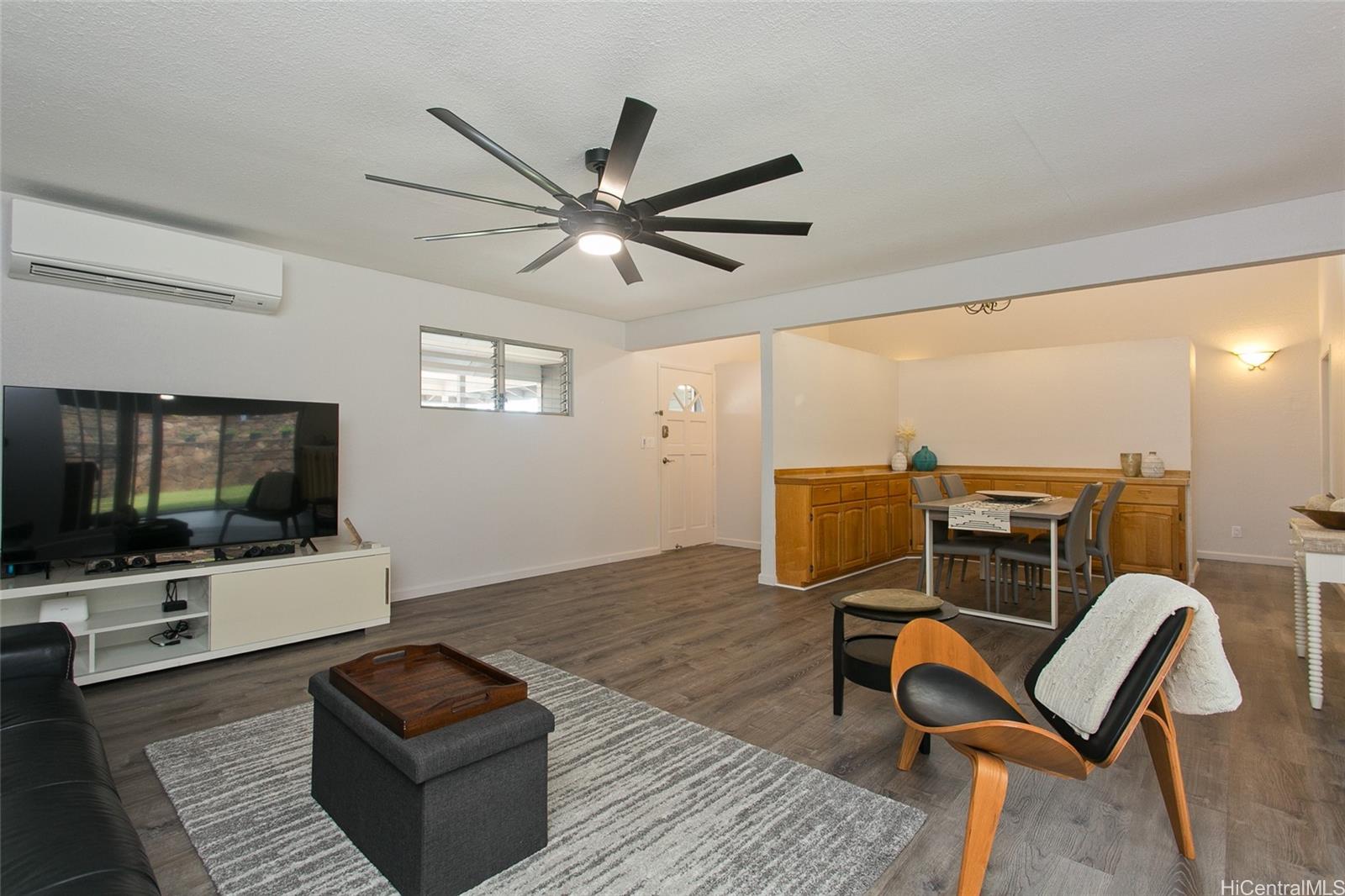 string(944) "Desirable Mililani. Single level with open floor plan. 3 bedrooms, 2 baths in excellent condition. Clean and ready to move in! Upgrades include: renovated kitchen and bathrooms, large split ac in living room, newer appliances, vinyl plank flooring throughout, ceiling fans. Popcorn ceiling removed/drywalled finished. Landscaped, front and back. Terraced back yard tastefully done. You can make this back yard your own. Irrigation does not work and sold in as is. Sellers water yard manually when needed. Carport can fit 2 cars and room to also park on the driveway. Storage closet in carport. Home is located in the beginning of a Culdesac. Mililani Town Association fee $165 quarterly. Multiple Recreational Centers for use.