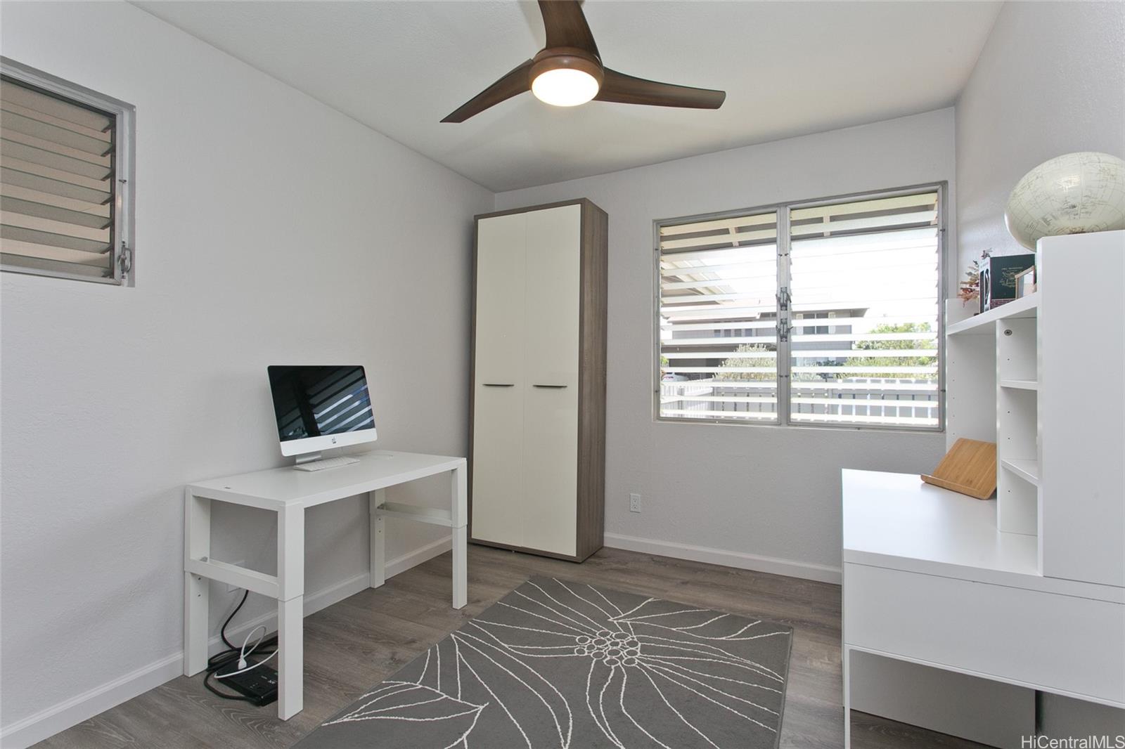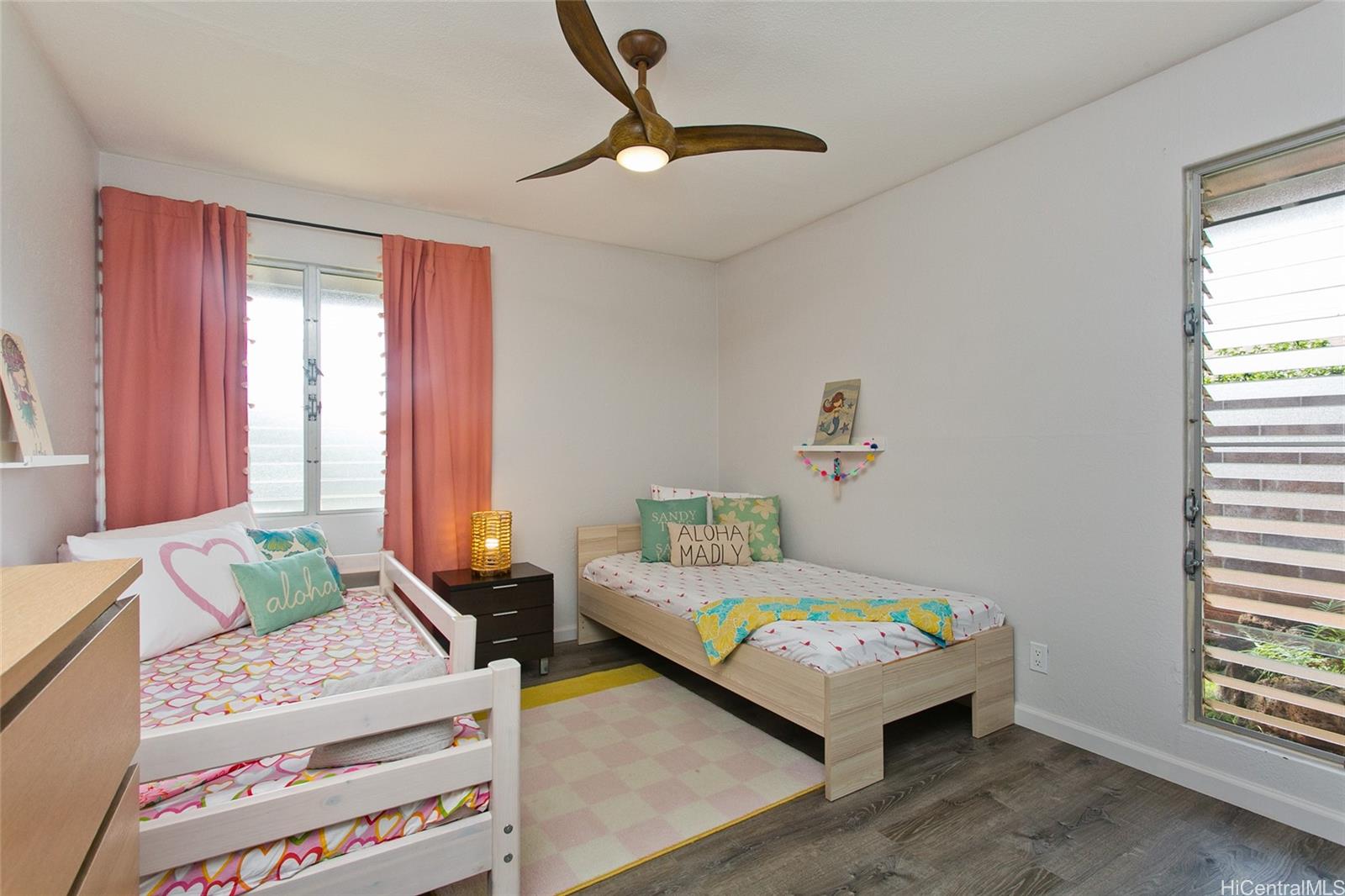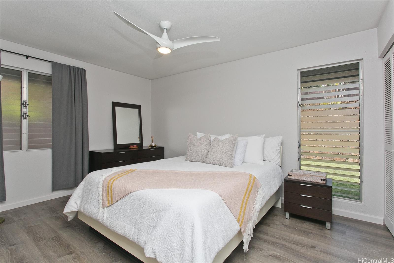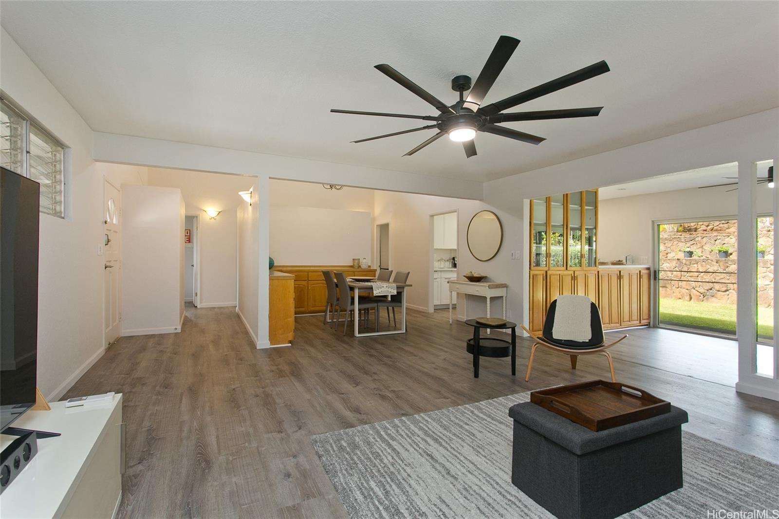 string(944) "Desirable Mililani. Single level with open floor plan. 3 bedrooms, 2 baths in excellent condition. Clean and ready to move in! Upgrades include: renovated kitchen and bathrooms, large split ac in living room, newer appliances, vinyl plank flooring throughout, ceiling fans. Popcorn ceiling removed/drywalled finished. Landscaped, front and back. Terraced back yard tastefully done. You can make this back yard your own. Irrigation does not work and sold in as is. Sellers water yard manually when needed. Carport can fit 2 cars and room to also park on the driveway. Storage closet in carport. Home is located in the beginning of a Culdesac. Mililani Town Association fee $165 quarterly. Multiple Recreational Centers for use.