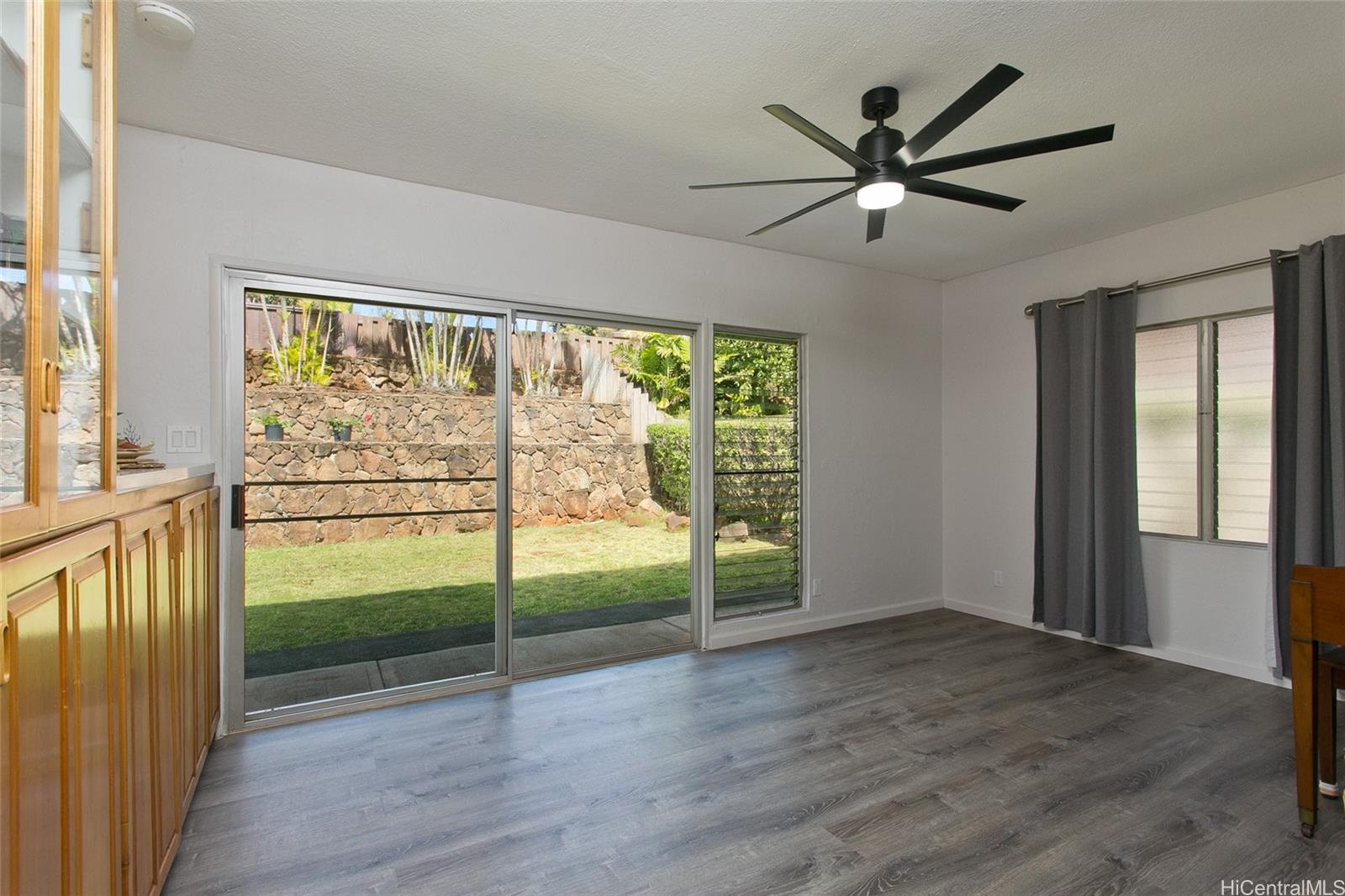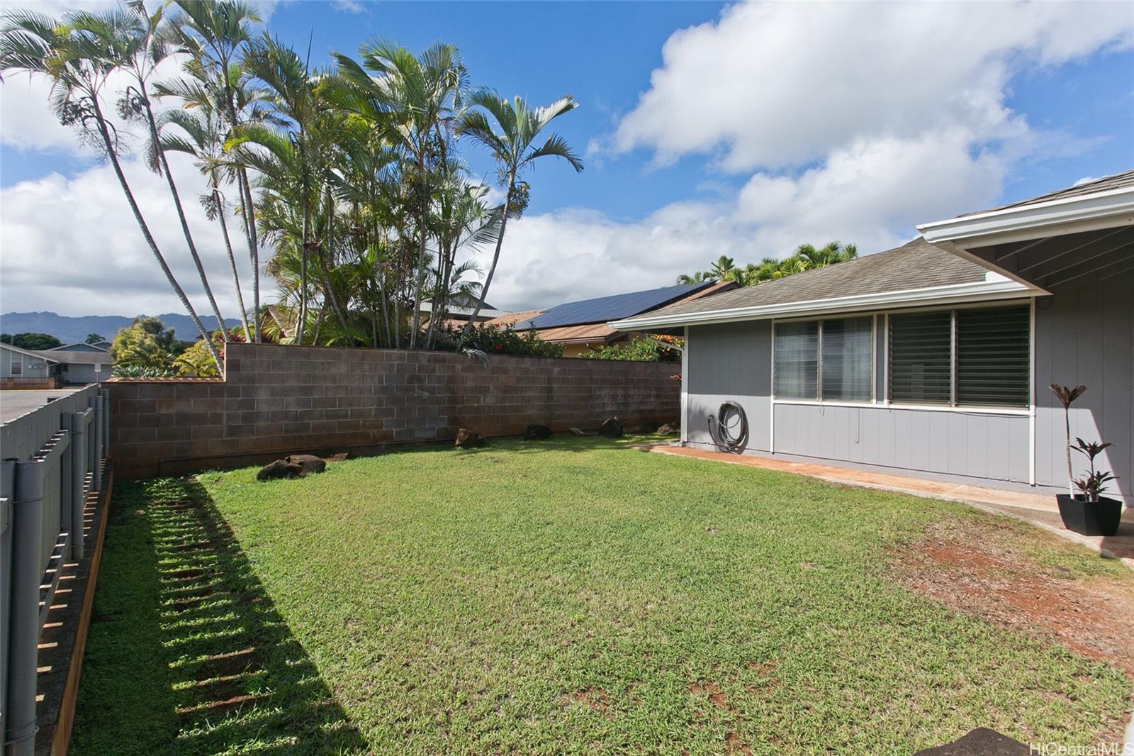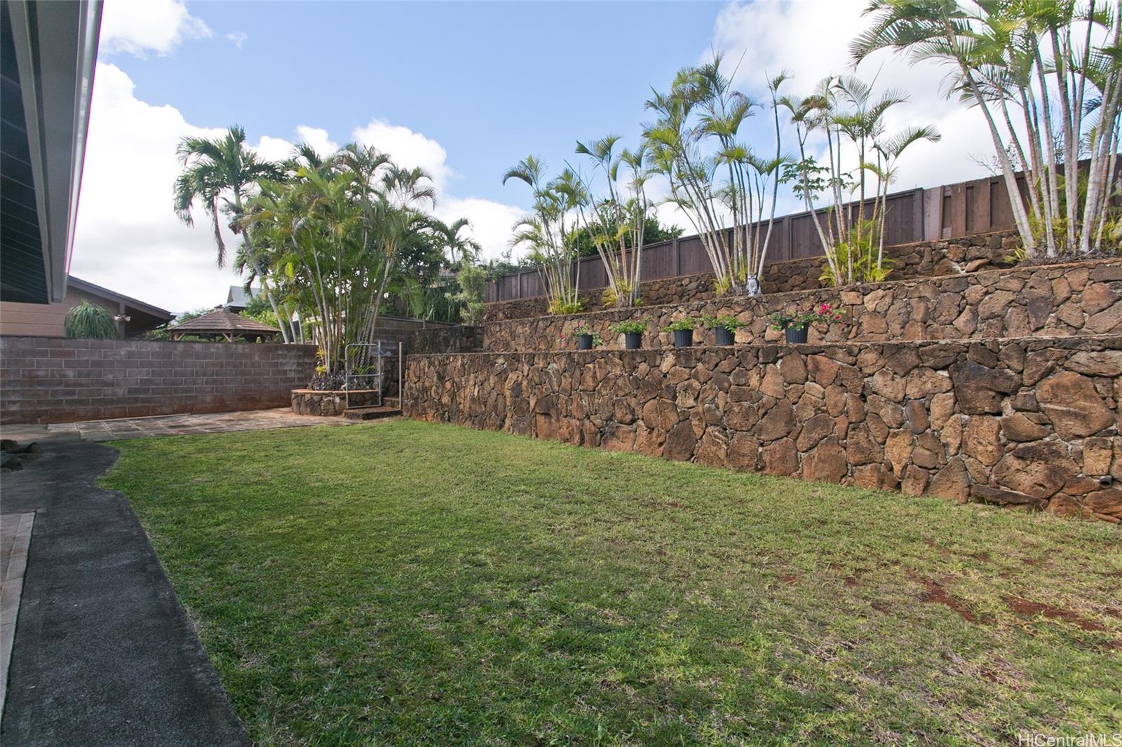Desirable Mililani. Single level with open floor plan. 3 bedrooms, 2 baths in excellent condition. Clean and ready to move in! Upgrades include: renovated kitchen and bathrooms, large split ac in living room, newer appliances, vinyl plank flooring throughout, ceiling fans. Popcorn ceiling removed/drywalled finished. Landscaped, front and back. Terraced back yard tastefully done. You can make this back yard your own. Irrigation does not work and sold in as is. Sellers water yard manually when needed. Carport can fit 2 cars and room to also park on the driveway. Storage closet in carport. Home is located in the beginning of a Culdesac. Mililani Town Association fee $165 quarterly. Multiple Recreational Centers for use.
