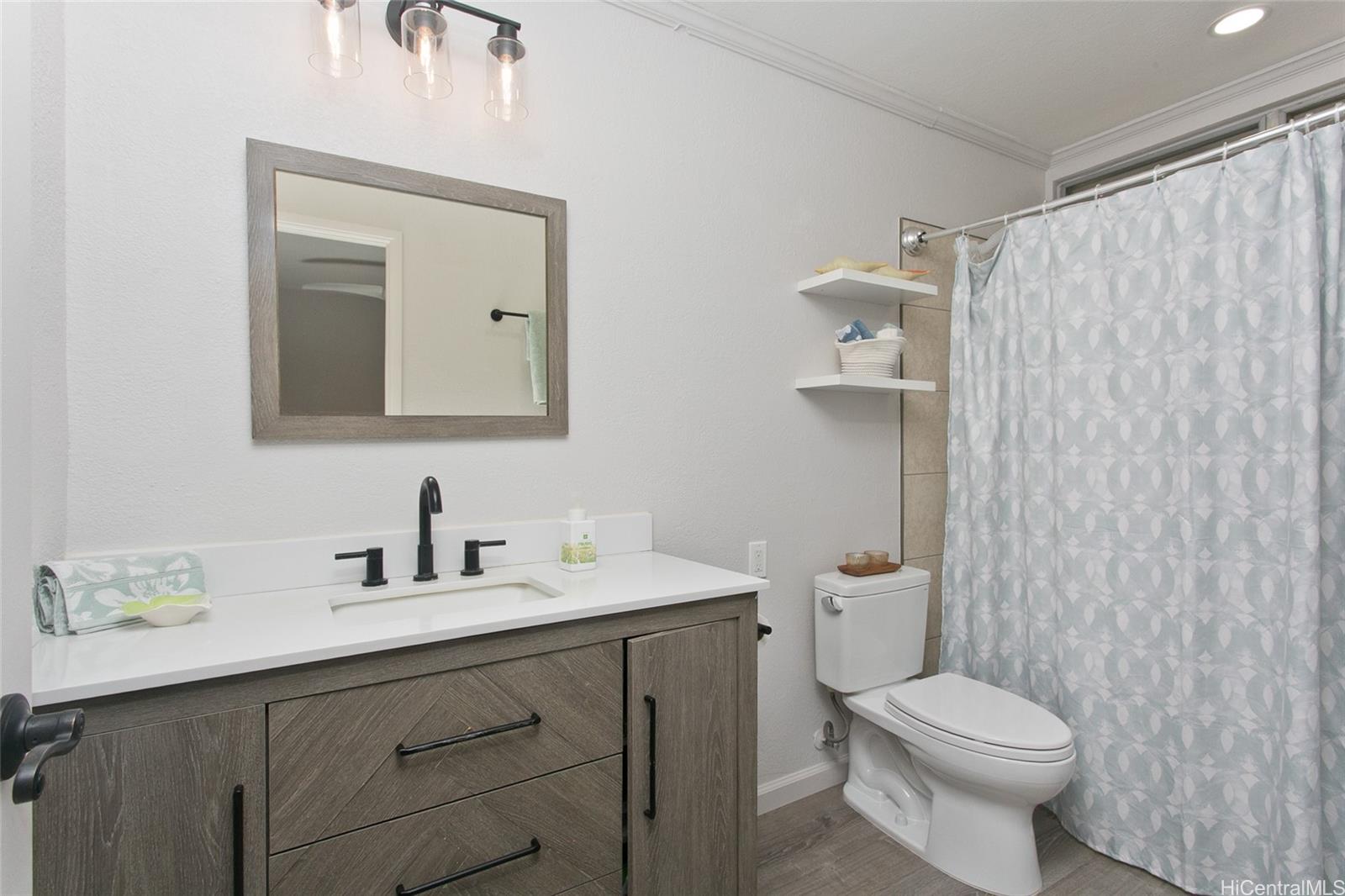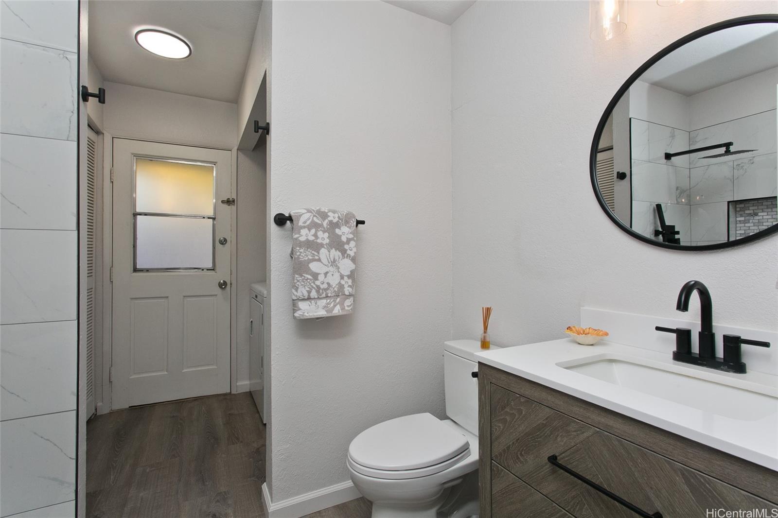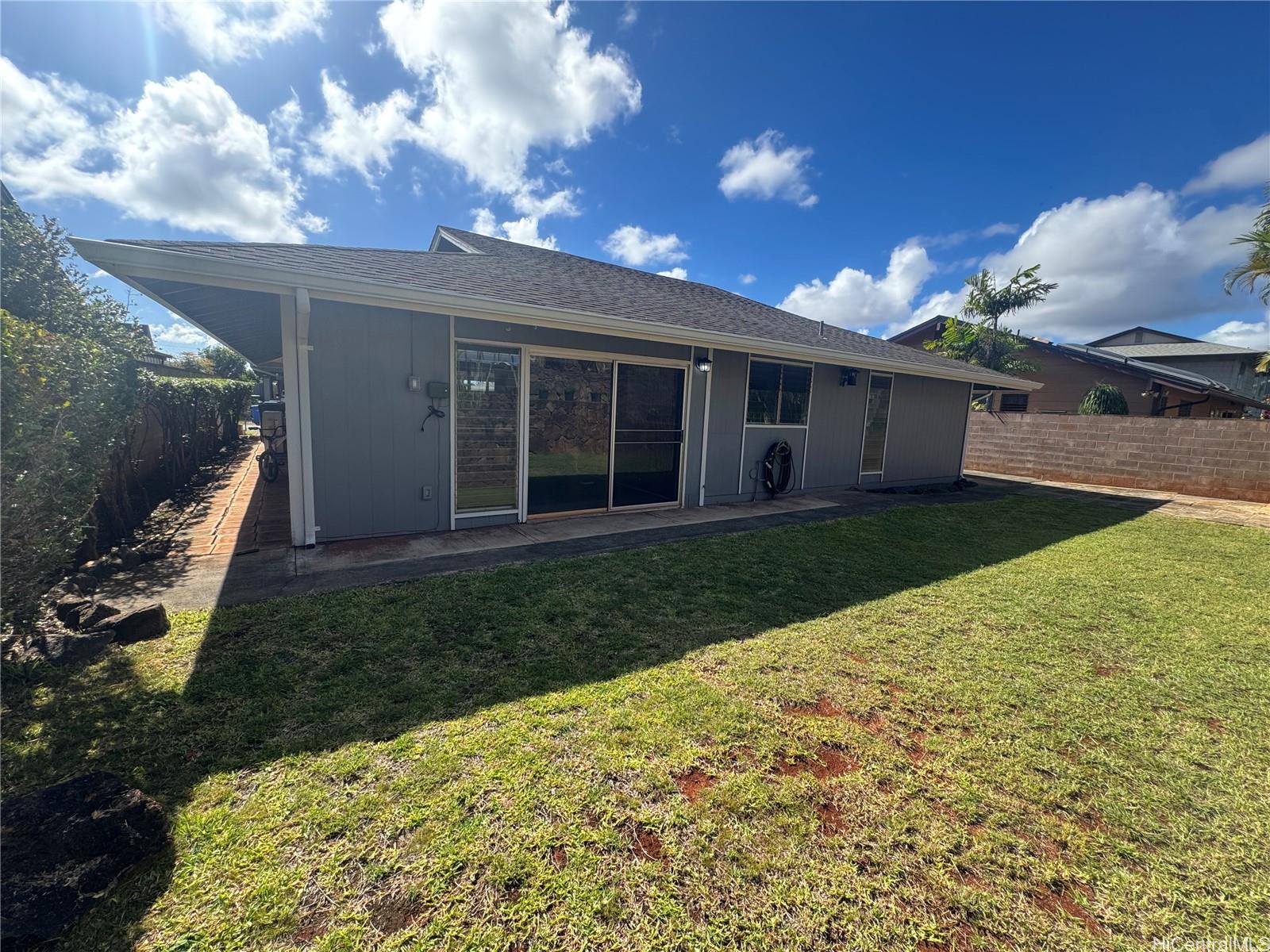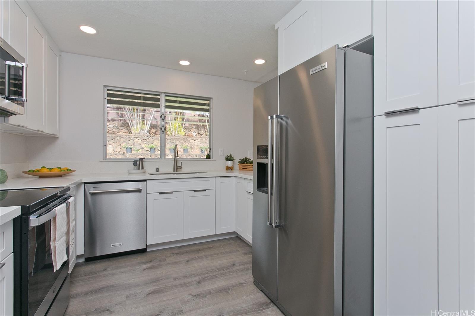 Desirable Mililani. Single level with open floor plan. 3 bedrooms, 2 baths in excellent condition. Clean and ready to move in! Upgrades include: renovated kitchen and bathrooms, large split ac in living room, newer appliances, vinyl plank flooring throughout, ceiling fans. Popcorn ceiling removed/drywalled finished. Landscaped, front and back. Terraced back yard tastefully done. You can make this back yard your own. Irrigation does not work and sold in as is. Sellers water yard manually when needed. Carport can fit 2 cars and room to also park on the driveway. Storage closet in carport. Home is located in the beginning of a Culdesac. Mililani Town Association fee $165 quarterly. Multiple Recreational Centers for use.