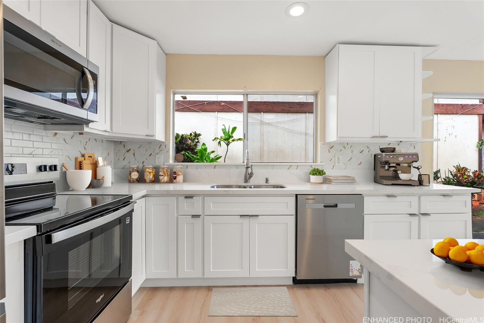 Welcome to this beautifully updated single-level home in desirable Waipio Gentry. Thoughtfully renovated this move-in ready residence offers comfort, style, and convenience in a well-established neighborhood. The newly upgraded kitchen features brand-new cabinets, quartz countertops, and new appliances, complemented by durable luxury vinyl flooring and fresh interior paint throughout. Both the kitchen and bathrooms have been tastefully updated to provide a modern, clean look with easy maintenance in mind. A new metal roof adds additional value and peace of mind. This home has includes a bright sunroom that adds additional living space ideal for relaxing, entertaining, off the primary bedroom. The low-maintenance wrap around yard and a large orange tree complete the outdoor living space. Ideally located on a quiet cul-de-sac with convenient freeway access, this home is nearby Costco, schools, shopping, and Patsy T. Mink Central O‘ahu Regional Park, featuring an Olympic-size pool, sports fields, and walking paths. A wonderful opportunity to own a beautifully updated home in one of Central Oahu’s most convenient locations. Contact your realtor today for a showing! Listing by: Homes of Hawai'i Real Estate (808) 497-3860