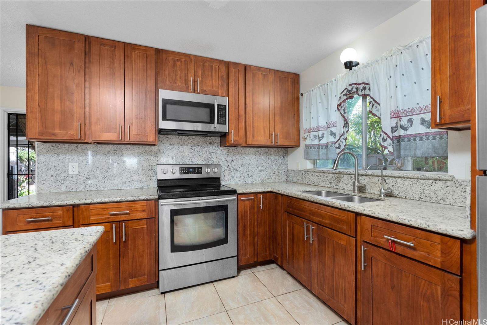 Come view this 3-bedroom, 2 full bath with a 2-car garage and driveway for additional parking home in Village Park. The flooring is equipped with ceramic tile throughout. The kitchen has been updated with a spacious countertop and island which opens to the living room perfect for hosting and gatherings. A spacious primary bedroom that will serve as your own sanctuary and two standard sized bedrooms. There are 20 owned photovoltaic panels as an added bonus lowering your electricity consumption and new roof in 2015. This home is in close proximity to school, public park, freeway access, Queens Medical Center, Ka Makana Alii, Walmart, Times and more. Listing by: Five Star Realty, Inc. (808) 753-7211