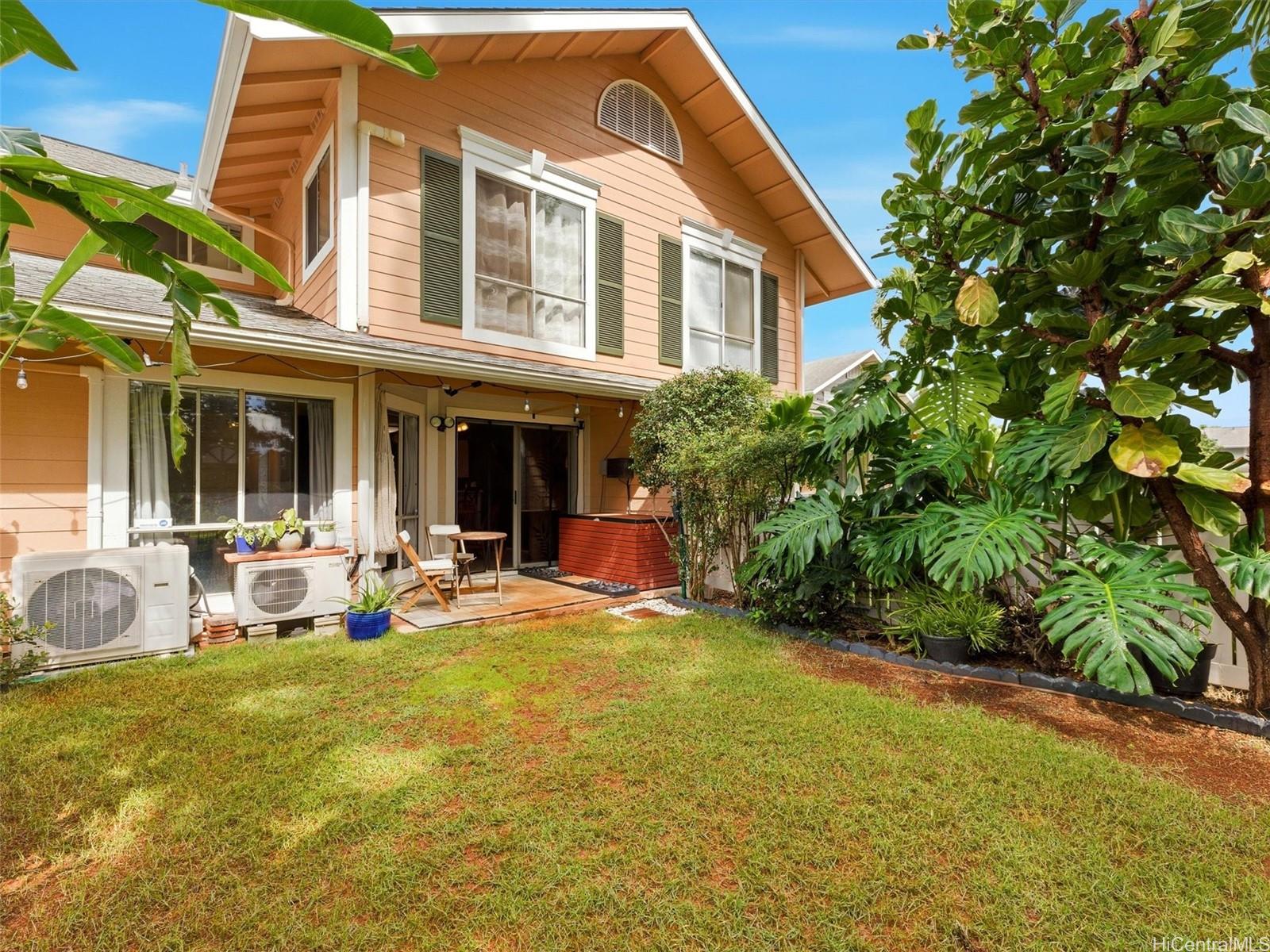 string(1012) "Beautifully upgraded townhome in desirable Waikele Village on the Green. This move-in ready home features an open and functional floor plan with abundant natural light, split AC units, ceramic tile flooring, and luxury vinyl plank flooring throughout. Enjoy indoor-outdoor living with a private backyard bordering the second hole of Waikele Golf Course, offering added privacy and a peaceful setting. Spacious layout designed for comfortable island living. Rare and convenient parking includes a 2-car enclosed garage plus additional driveway parking for 2–4 vehicles. Conveniently located near Waikele Premium Outlets, Waikele Shopping Center, restaurants, grocery stores, parks, UFC Gym, and golf course amenities. Easy access to H-1 Freeway for commuting to Pearl Harbor, Hickam, Schofield Barracks, Wheeler Army Airfield, Tripler Army Medical Center, Kapolei, Pearl City, and Honolulu.