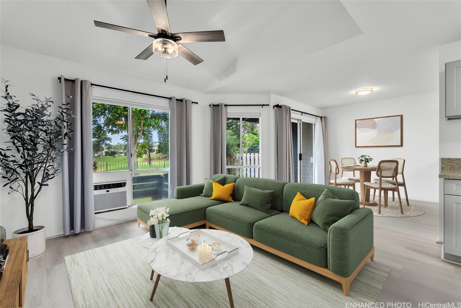 [0] => Welcome to this beautifully renovated 3-bedroom, 2.5-bathroom townhome, with direct golf course frontage. This unit offers the comfort & privacy of a single-family home in this highly sought-after Waikele community. This home has been thoughtfully updated with elegant finishes, including a sleek, modern kitchen featuring quartz countertops, new cabinetry, and stainless steel appliances. Luxury vinyl plank flooring adds a touch of sophistication, while the updated bathrooms offer a spa-like retreat. The spacious two-car garage provides convenient direct access to the kitchen, while the fully fenced, landscaped backyard provides an ideal outdoor space for entertaining or enjoying the lush golf course views. With its excellent layout and abundant natural light, this home truly feels like a private retreat. Located in a prime central Oahu location, you'll enjoy easy access to Waikele Shopping Center, H-1 Freeway, Central Oahu Regional Park, and the Waipio Soccer Complex. Whether you're shopping, dining, or enjoying outdoor activities, everything is within reach. Don’t miss your chance to see this exceptional property—schedule a showing today! A few photos have been virtually enhanced.