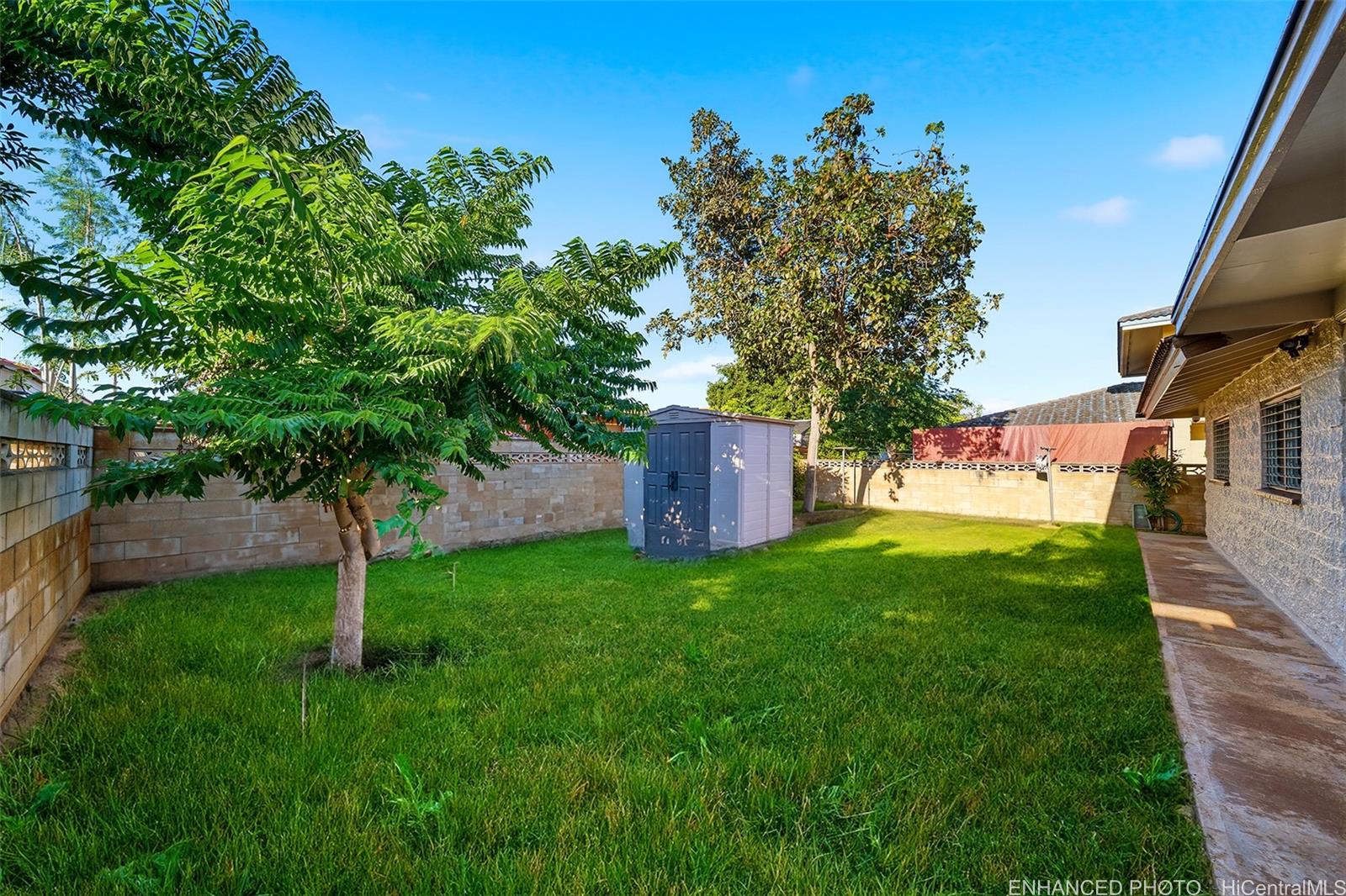 Discover Waipahu’s Finest! Experience the perfect blend of comfort, style, and functionality in this beautiful 4 bedroom, 2 bath home. The spacious great room offers an open-concept layout, ideal for entertaining or relaxing.The kitchen is equipped with durable HI-MACS solid-surface countertops, combining quality and modern appeal. Fresh interior and exterior paint give the home a clean, bright, and inviting feel. One bedroom has been thoughtfully transformed into a custom walk-in closet, adding a touch of luxury and organization. Step outside to the expansive 378 sq. ft. covered porch, perfect for gatherings or simply enjoying the outdoors. Beyond the porch, a spacious leveled backyard provides endless possibilities for play, gardening, or future expansion. Located in the desirable Waipahu Estates neighborhood, you’ll enjoy convenient access to Waikele Premium Outlets, local dining, parks, and schools. Easy access to the H-1 freeway and nearby bus routes makes commuting a breeze. With no association or maintenance fees, this move-in ready home offers true ownership freedom. Discover the best of Waipahu living, comfort, space, and convenience all in one. Listing by: Coldwell Banker Realty (808) 781-5207
