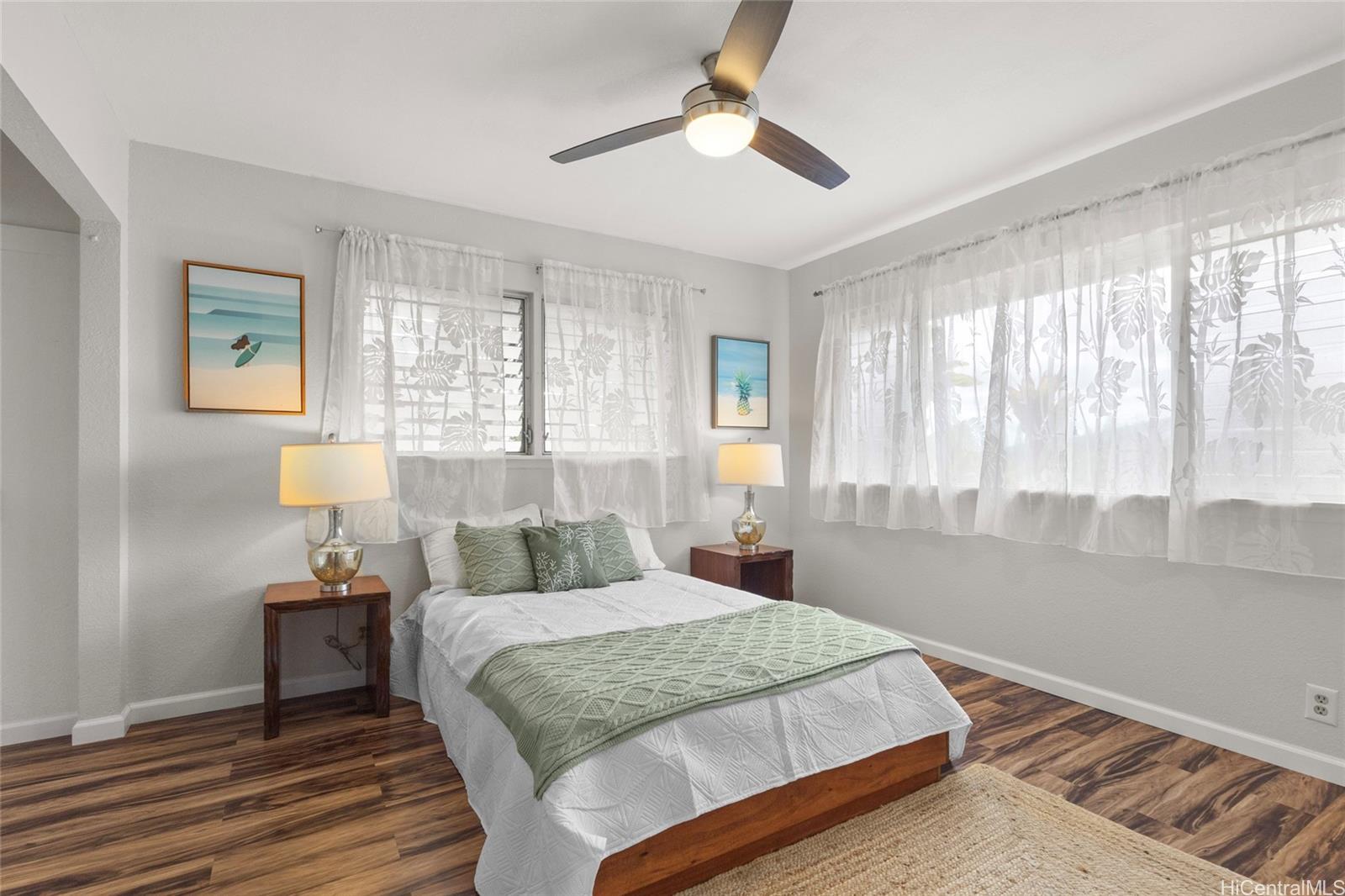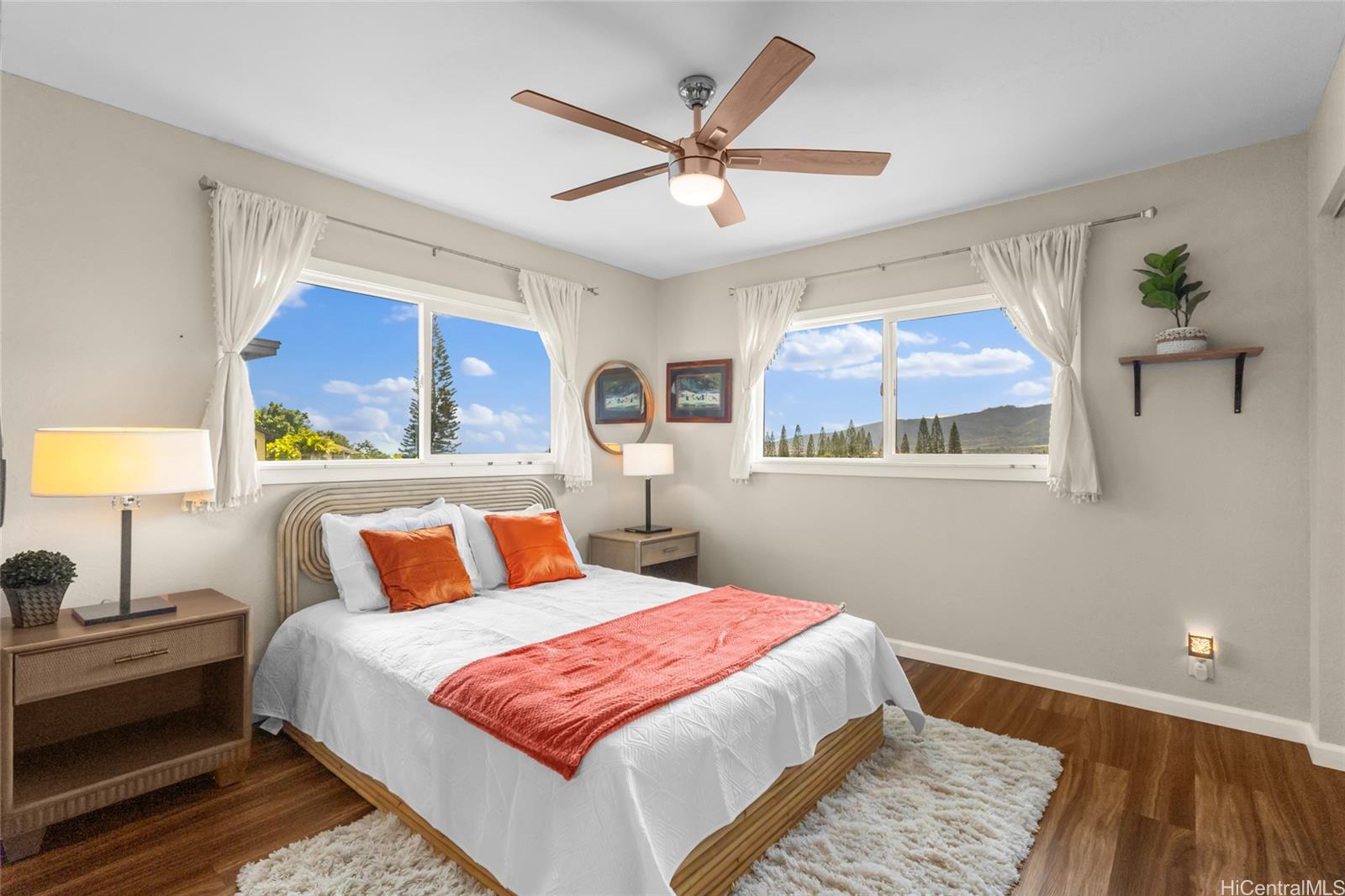 Well-maintained and lovingly cared for by its original owners, this 4-bedroom, 3-bath Mililani home offers both comfort and flexibility. The main level features 3 bedrooms and 2 bathrooms, while the second-story addition with its own private entrance boasts a spacious bedroom, full bath, and nicely sized living room—ideal for extended family, guests, or a home office.