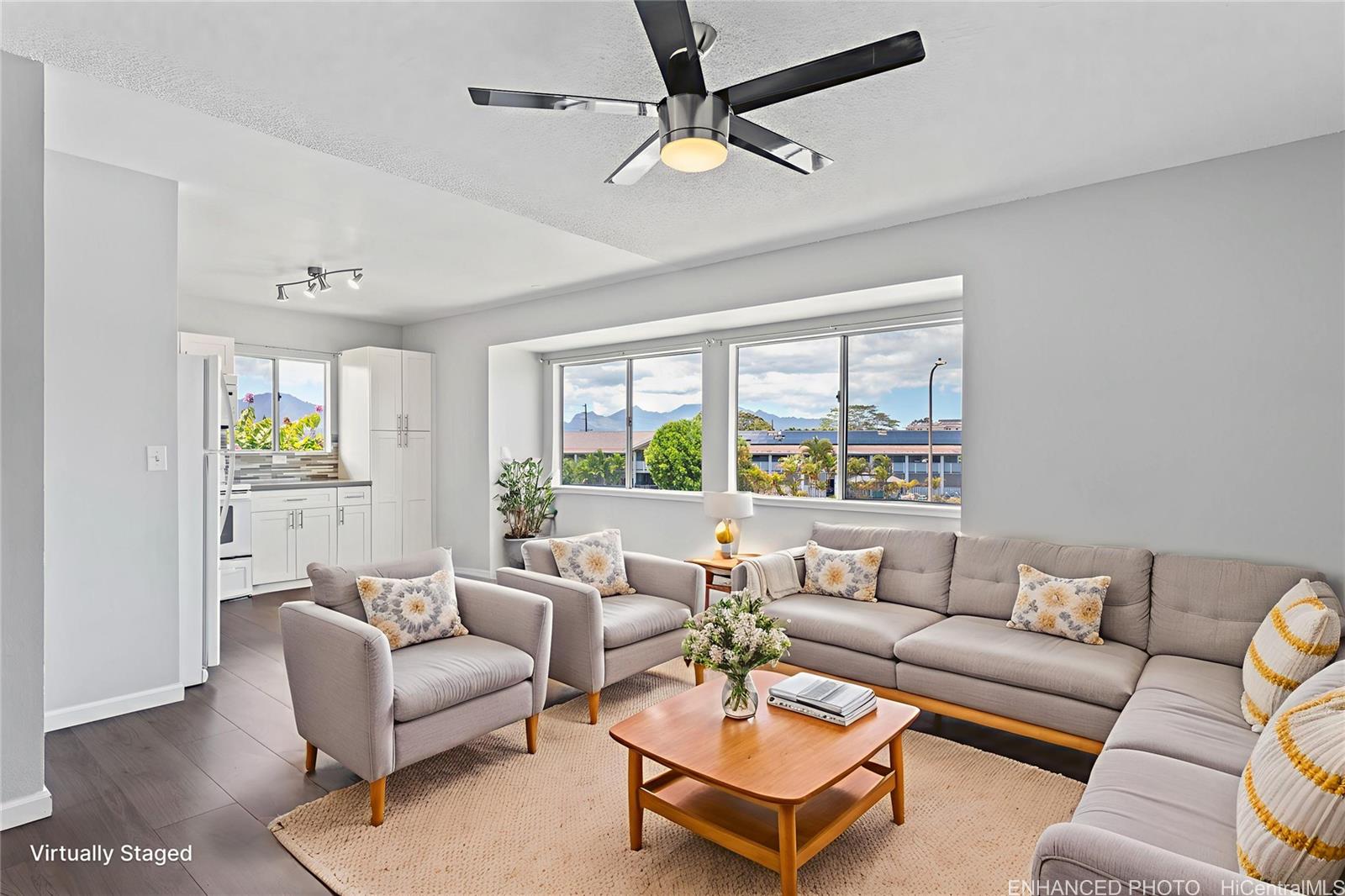 Enjoy the cooler Mililani Mauka weather in this renovated 2 bedroom, 1 bath, 2 parking townhome! Walking distance to the Mililani Mauka shopping center with restaurants, Longs/CVS, drive-thru Starbucks, parks, the Mililani Town Center, etc. This unit comes with new luxury vinyl plank flooring, upgraded kitchen cabinets with quartz countertops, ceiling fans in all rooms, stack washer/dryer, and upgraded bathroom vanity! You'll also love the convenience of being near the freeway on/off-ramps, Wheeler and Schofield Barracks, and 20-30 minutes from the world famous North Shore of Oahu! Listing by: Property Profiles, Inc. (808) 398-0914