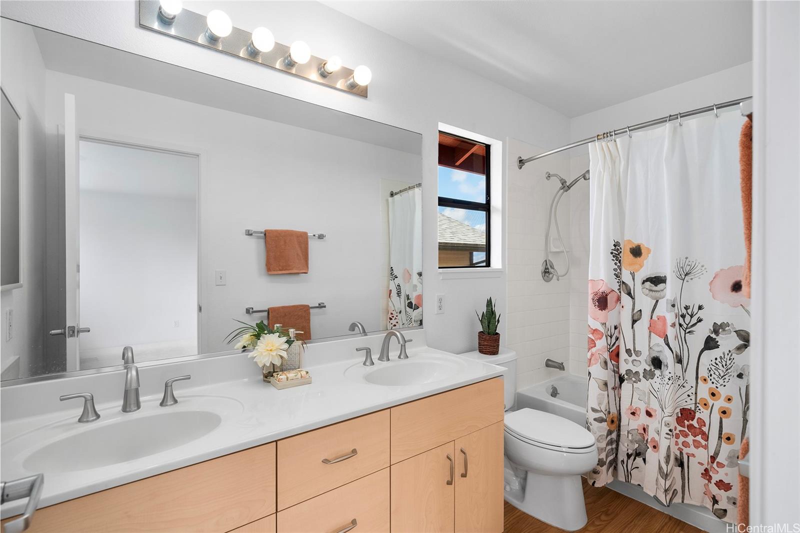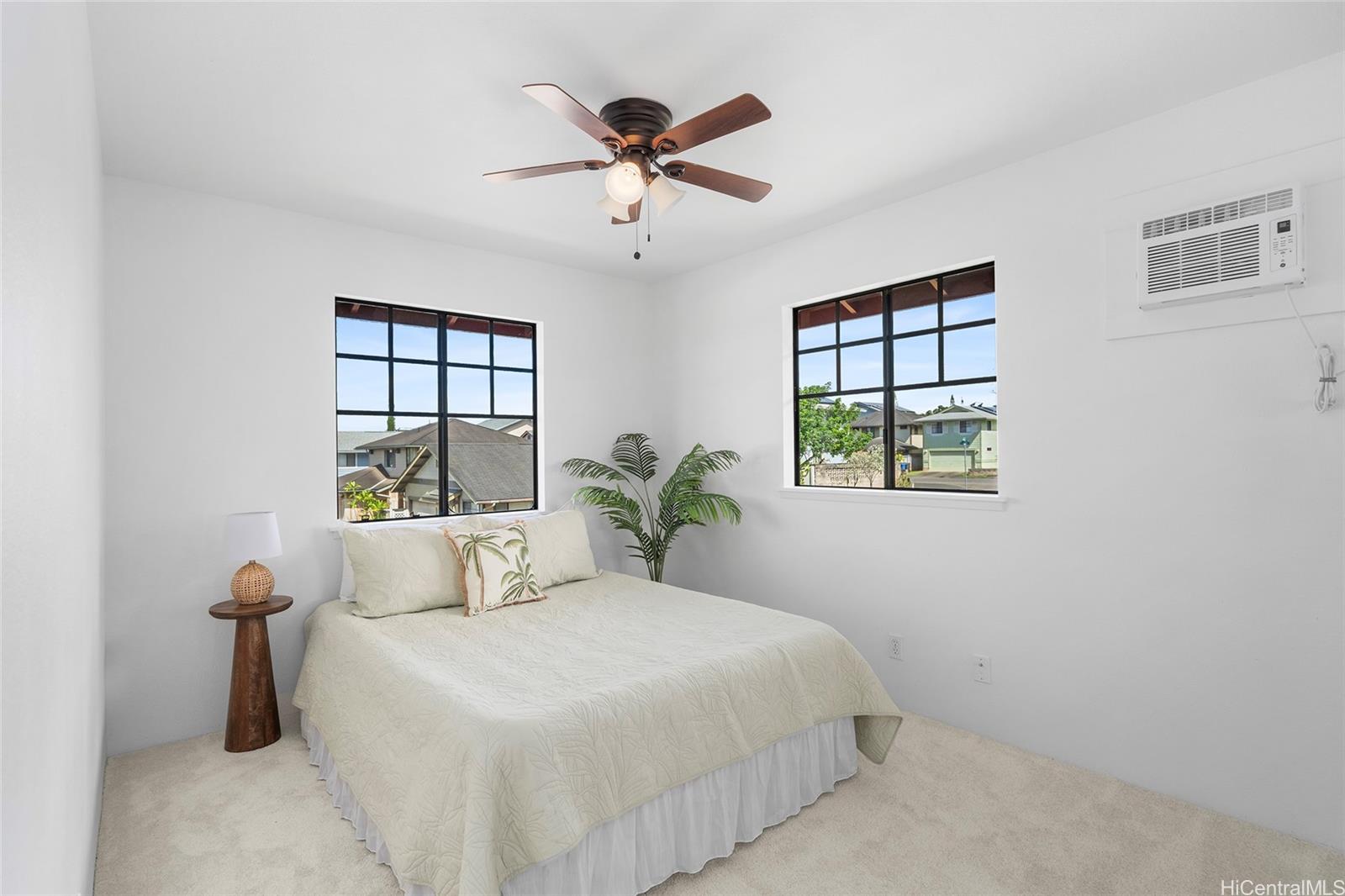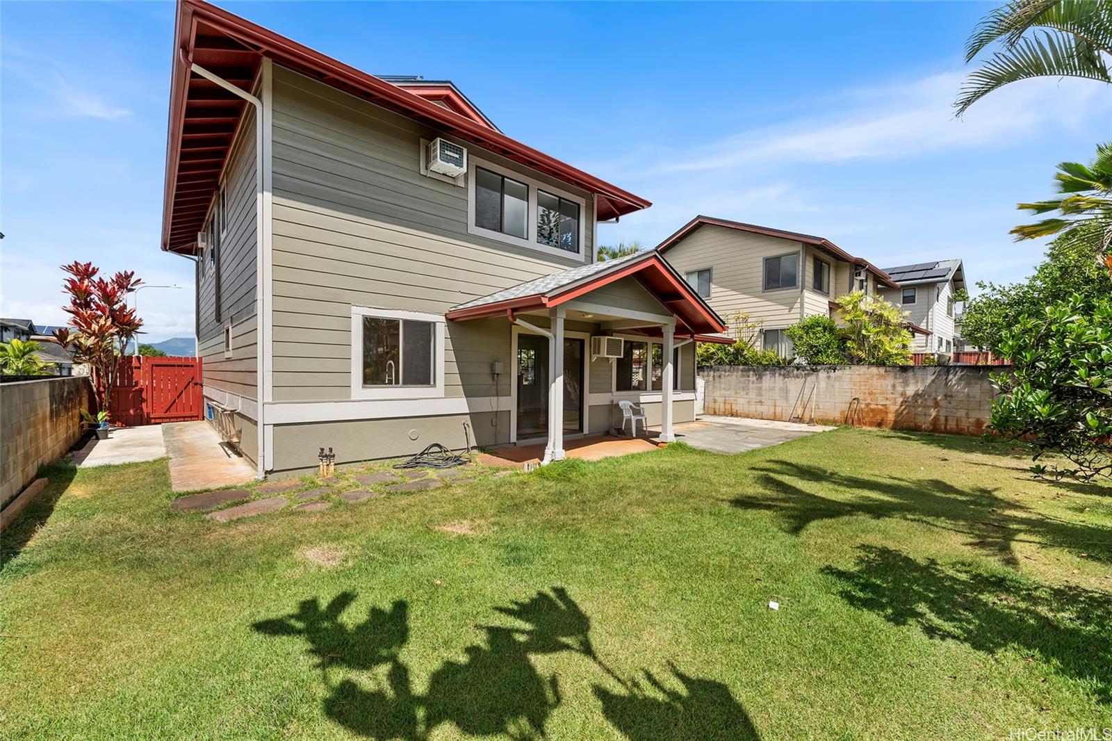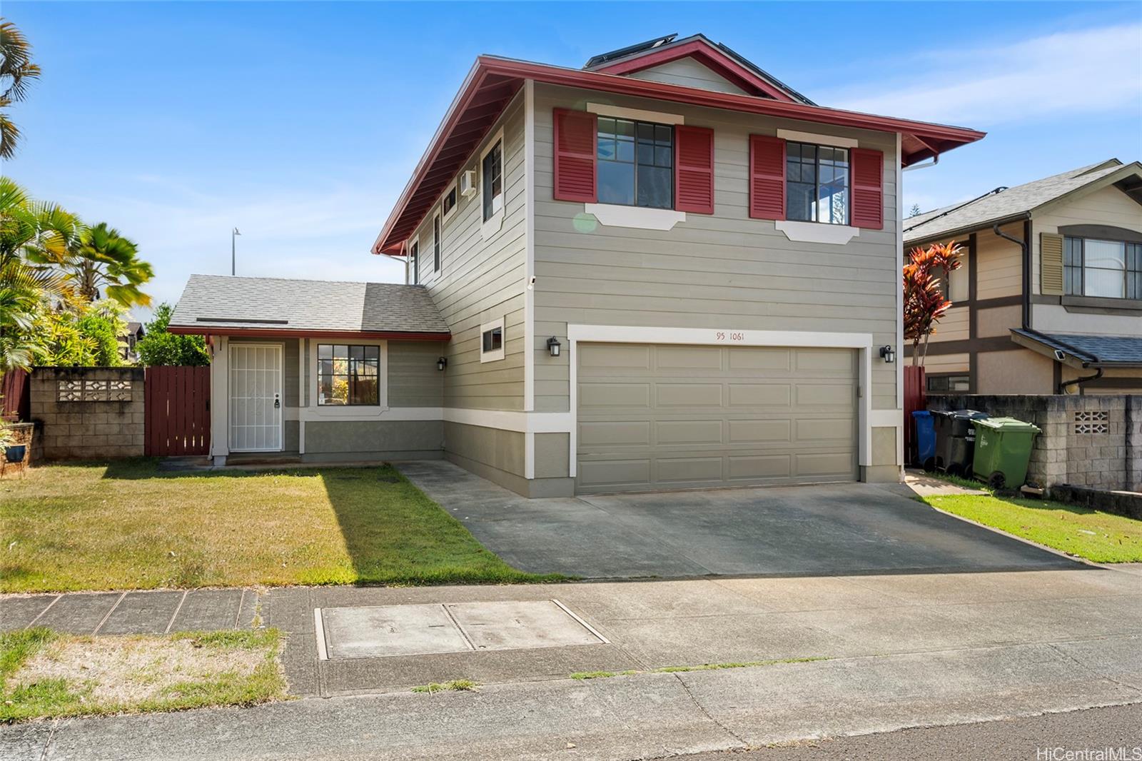 A great opportunity to own in Mililani Mauka! Located in the highly desirable Destiny II community, this charming, well maintained residence offers a welcoming front yard, good sized backyard, and inside you'll find an open layout with abundance of natural light, a spacious kitchen and 3 bedrooms upstairs. This home features 13 OWNED PV panels, custom built shelving and storage in the garage and brand new carpet upstairs! Conveniently located near schools, parks and dining! Listing by: Engel & Volkers Honolulu (808) 479-9090