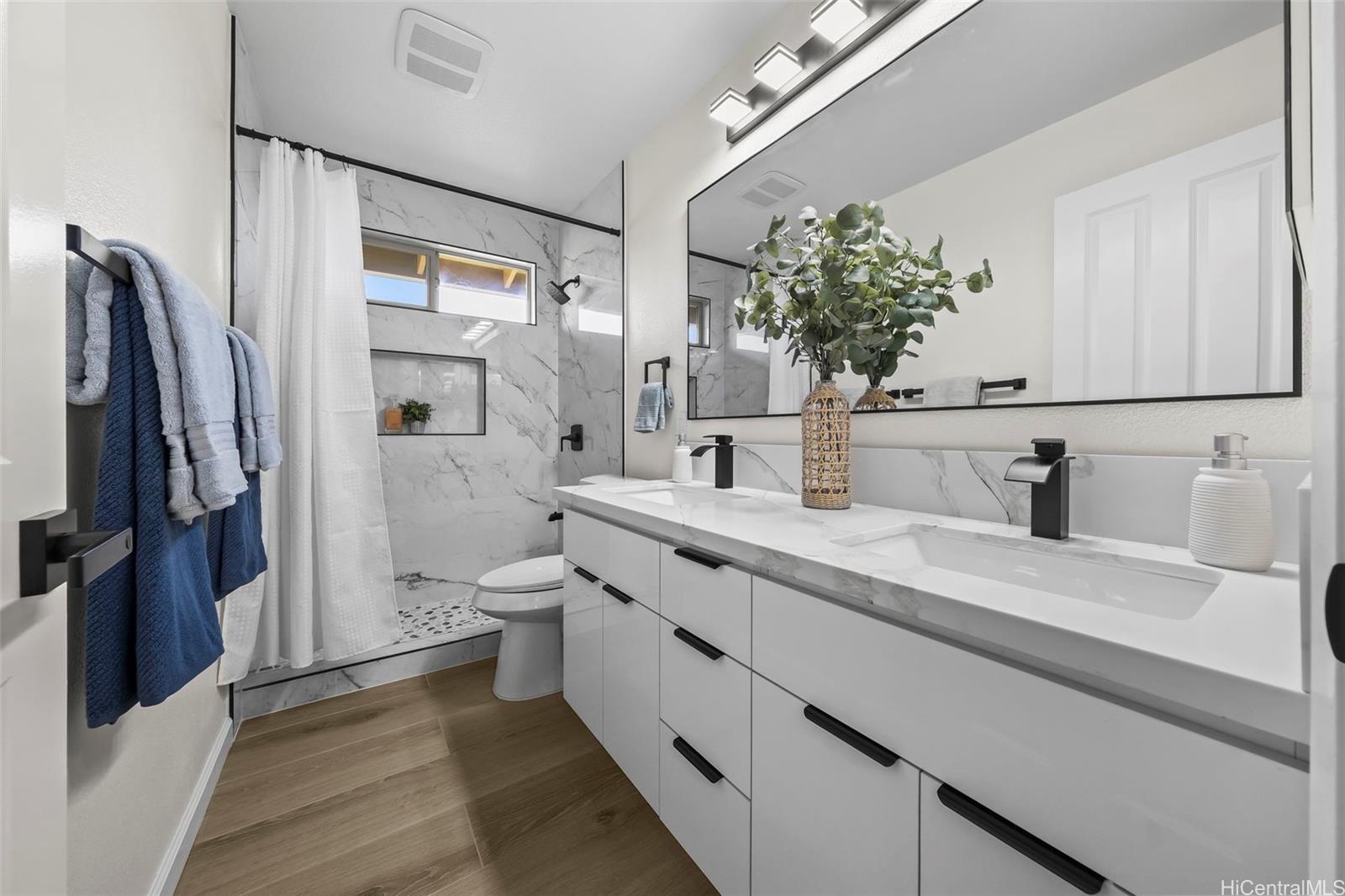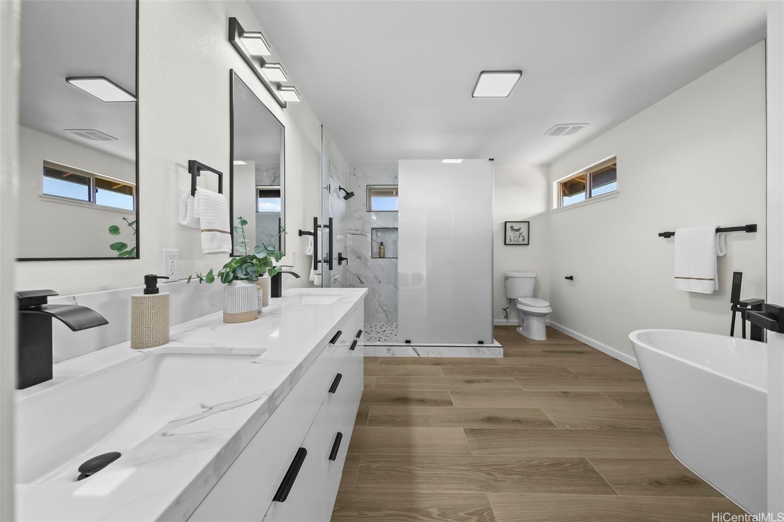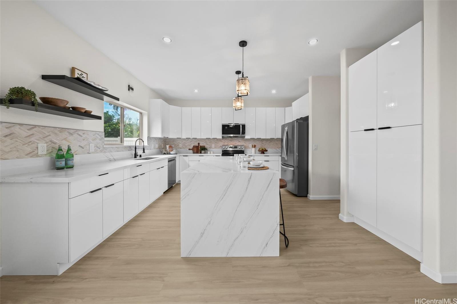 Peace and paradise await you in Mililani Mauka! This impressive 6 bedroom, 3.5 bathroom home is nestled along a quiet street and was thoughtfully renovated in 2025 to include brand new stainless steel appliances, luxury vinyl plank flooring, fresh paint, and fully upgraded bathrooms. Step foot through the front door to a large living room where views of the backyard palms wave at you through the glass sliding doors before making your way to the kitchen, neatly outfitted with sleek white cabinetry and a large walk-in pantry. Upstairs, you'll find spacious bedrooms, and in the primary bedroom, a walk-in closet, perfect for accommodating even the largest of wardrobes, and a beautifully customized bathroom that includes both a shower, and a soaking tub to promote total relaxation after the commute home. Last, but not least, head out to the covered lanai and imagine yourself with a good book and a cold drink in hand, enjoying the mauka breezes with your friends and family. Just a few minutes drive from Mililani Mauka Shopping Center, Mililani Mauka District Park, and several of MTA recreation centers. This one won't last long! Listing by: Vesta Hawaii Real Estate (808) 561-8200