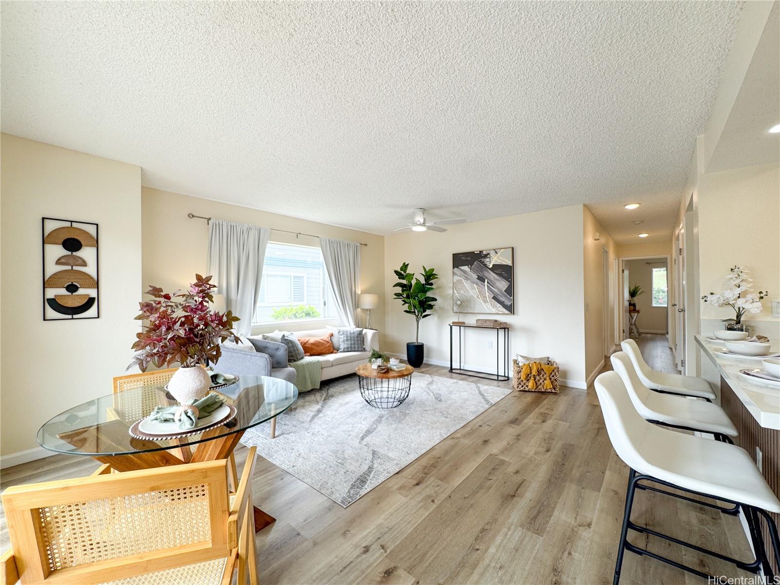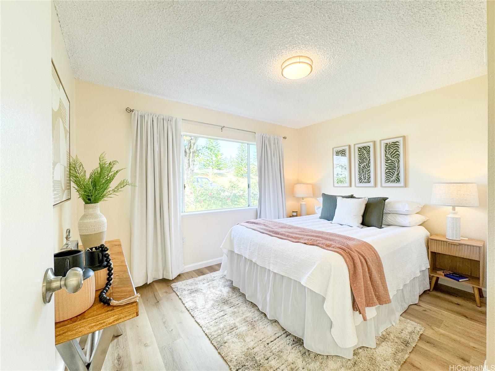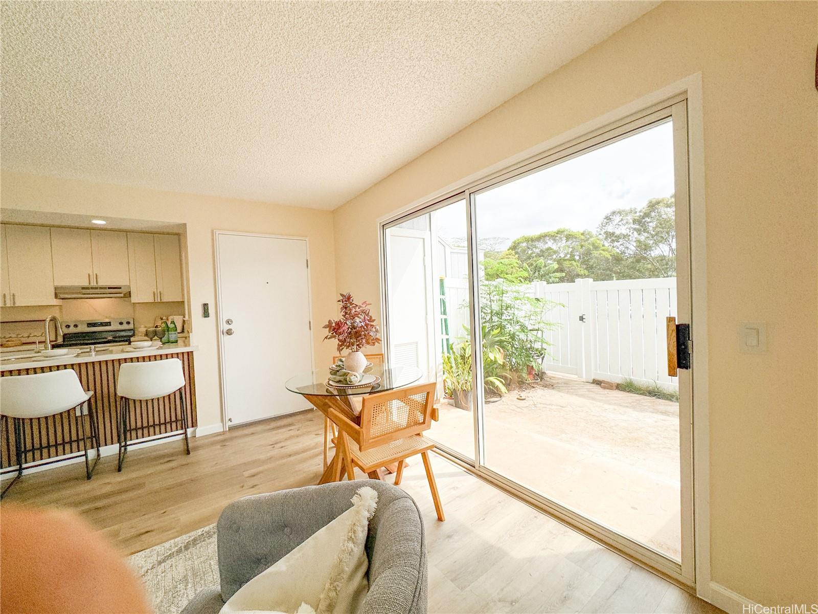 Welcome to your New Home in the heart of Mililani Mauka! Beautiful, completely remodeled 3bedroom 2bath ground floor end unit townhome. Ideally located on the perimeter of the Hillsdale townhome complex with no neighbor on one side or in the back, only serene green space & extra street parking. Fabulous Upgrades include NEW stainless-steel appliances, dishwasher, stove, refrigerator, large kitchen sink, custom cabinets, & gorgeous quartz countertops. New luxury vinyl plank flooring throughout entire home in neutral tones leaving room for your creative design. All new paint, large stacked washer/dryer in the unit. Two full sized side by side parking stalls right in front. Enjoy the many recreation centers, the newest Rec 7 boasting a heated saline pool, kiddie pool, internet cafe, volleyball, free Wi-Fi, indoor volleyball, basketball courts, BBQ pavilion and playground. Conveniently located near top-rated schools, shopping, dining, this home is ideal for those seeking both comfort and convenience. Quick access to H-2 freeway and Kam Hwy, shopping centers, restaurants, schools and Park and Ride. Don’t miss this wonderful opportunity—contact us today for a private showing! Listing by: Coldwell Banker Realty (808) 676-7200