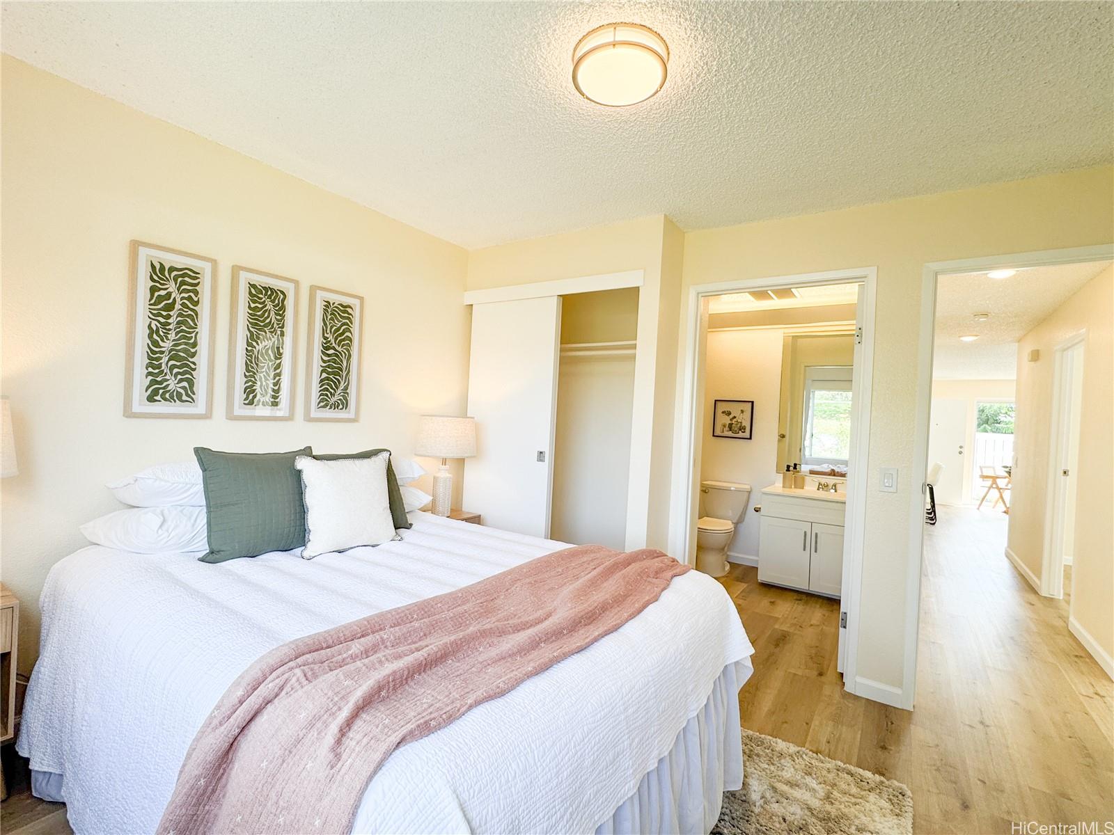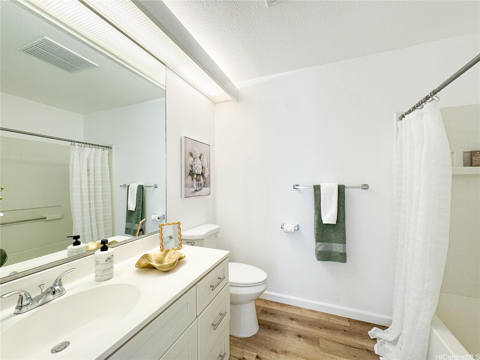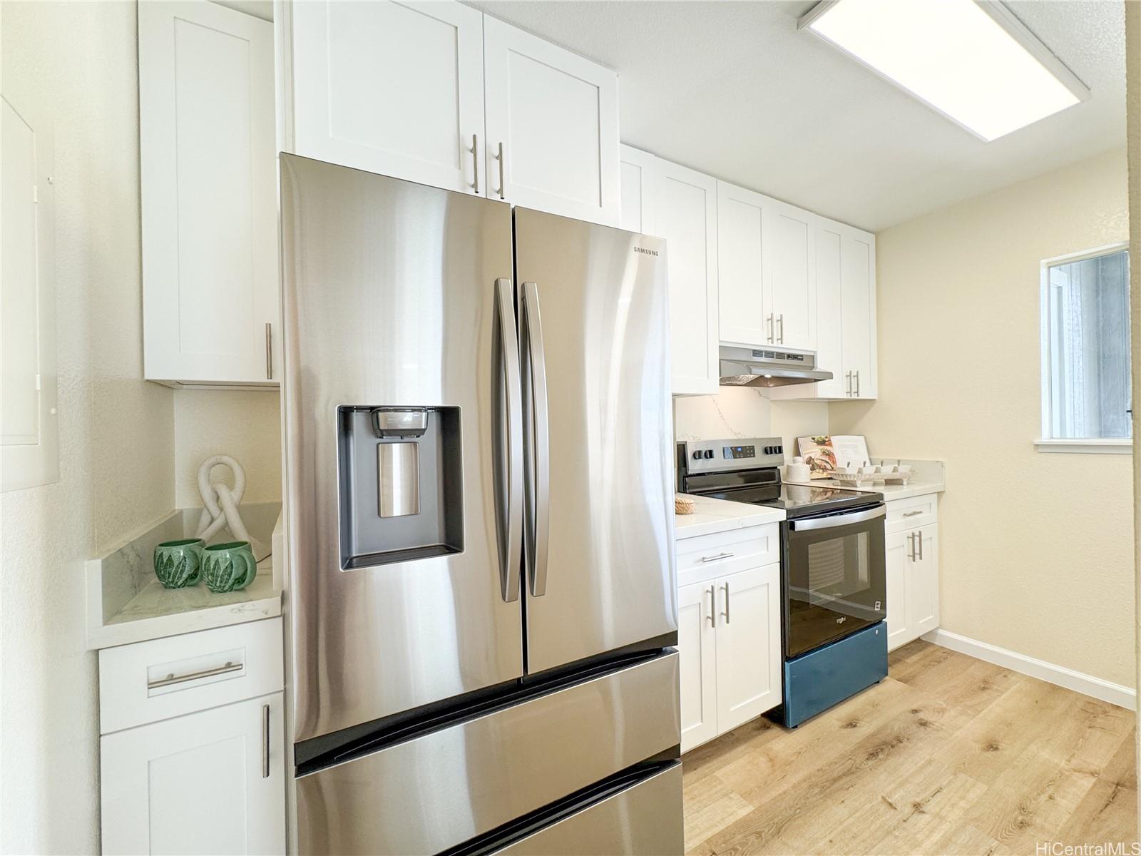 Welcome to your New Home in the heart of Mililani Mauka! Beautiful, completely remodeled 3bedroom 2bath ground floor end unit townhome. Ideally located on the perimeter of the Hillsdale townhome complex with no neighbor on one side or in the back, only serene green space & extra street parking. Fabulous Upgrades include NEW stainless-steel appliances, dishwasher, stove, refrigerator, large kitchen sink, custom cabinets, & gorgeous quartz countertops. New luxury vinyl plank flooring throughout entire home in neutral tones leaving room for your creative design. All new paint, large stacked washer/dryer in the unit. Two full sized side by side parking stalls right in front. Enjoy the many recreation centers, the newest Rec 7 boasting a heated saline pool, kiddie pool, internet cafe, volleyball, free Wi-Fi, indoor volleyball, basketball courts, BBQ pavilion and playground. Conveniently located near top-rated schools, shopping, dining, this home is ideal for those seeking both comfort and convenience. Quick access to H-2 freeway and Kam Hwy, shopping centers, restaurants, schools and Park and Ride. Don’t miss this wonderful opportunity—contact us today for a private showing! Listing by: Coldwell Banker Realty (808) 676-7200