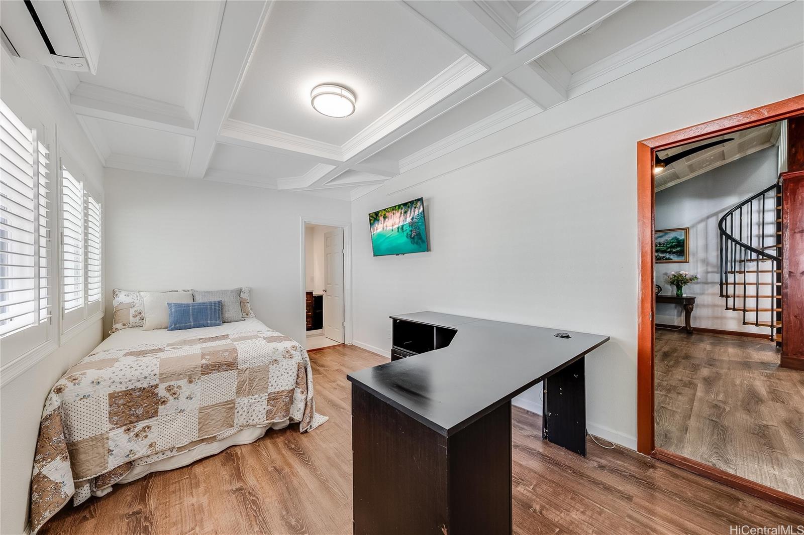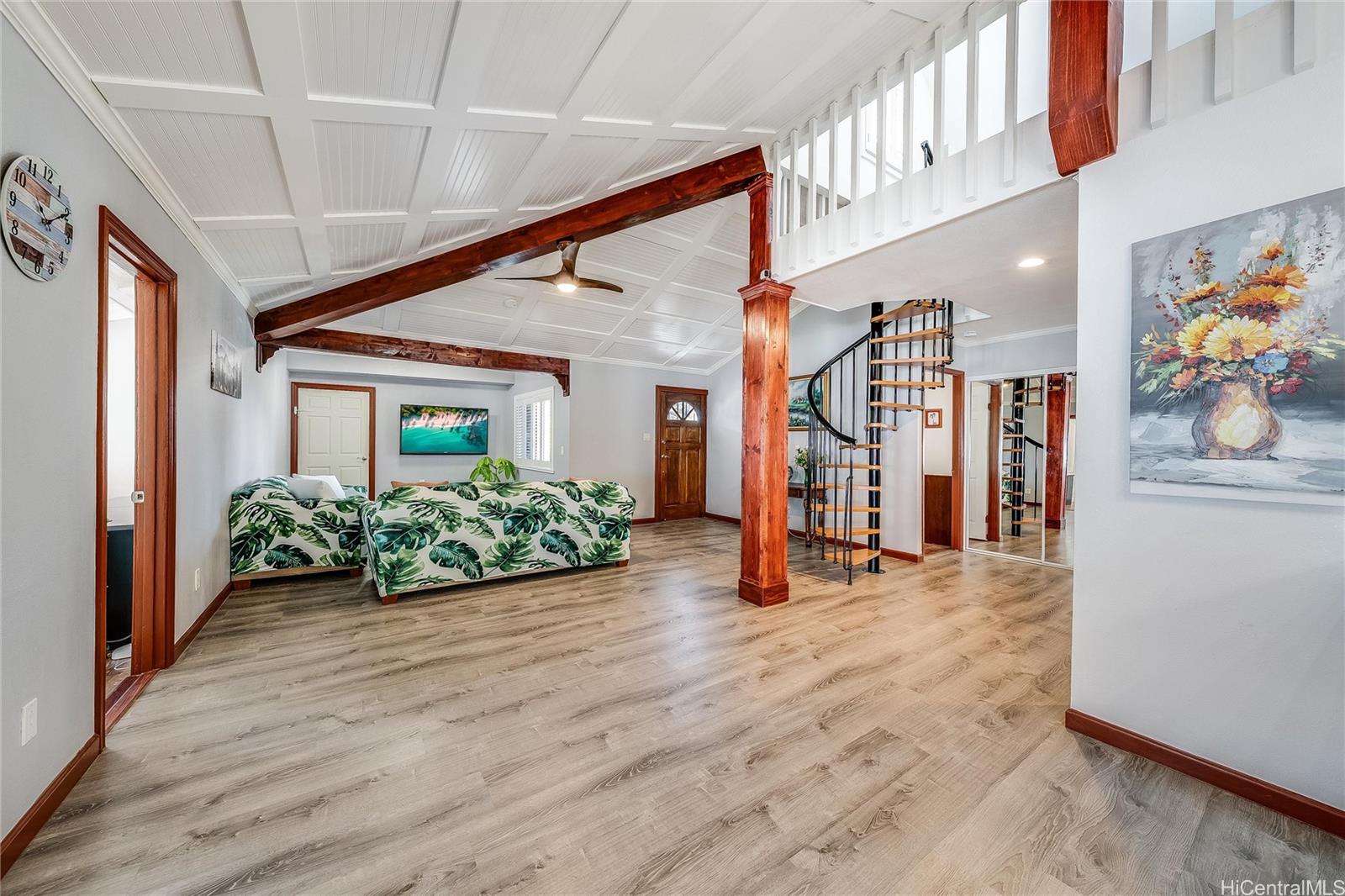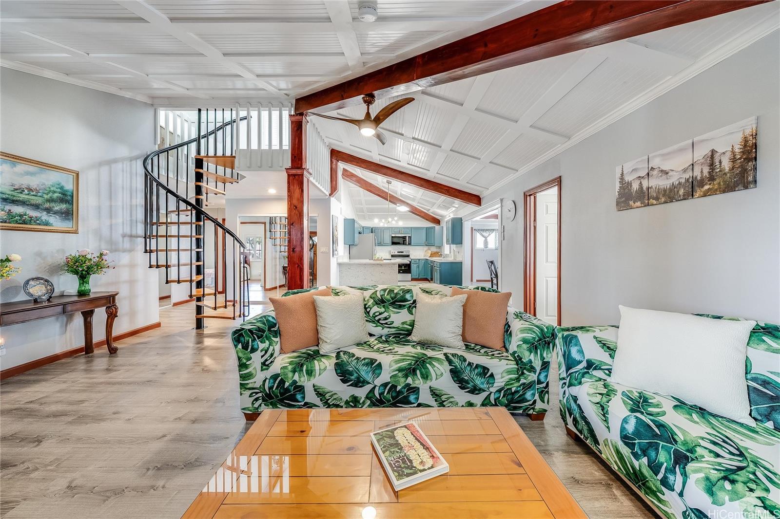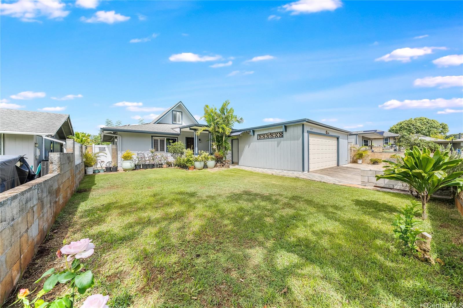 Welcome to this meticulously maintained single-level Mililani home, now offering a $10,000 closing credit to the buyer. Tucked away on a quiet cul-de-sac, this 4-bedroom, 3-bathroom residence combines timeless elegance with modern upgrades. The fourth bedroom features its own private entrance, ideal for visiting friends, family, or multi-generational family living, while the bonus loft upstairs provides flexible space for an office, media room, reading nook, private yoga studio or play area.