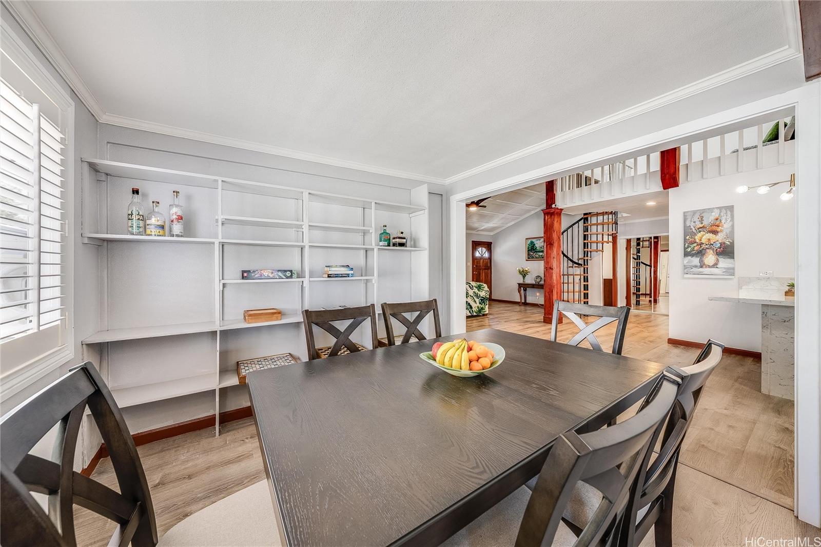 string(1159) "Welcome to this meticulously maintained single-level Mililani home, now offering a $10,000 closing credit to the buyer. Tucked away on a quiet cul-de-sac, this 4-bedroom, 3-bathroom residence combines timeless elegance with modern upgrades. The fourth bedroom features its own private entrance, ideal for visiting friends, family, or multi-generational family living, while the bonus loft upstairs provides flexible space for an office, media room, reading nook, private yoga studio or play area.