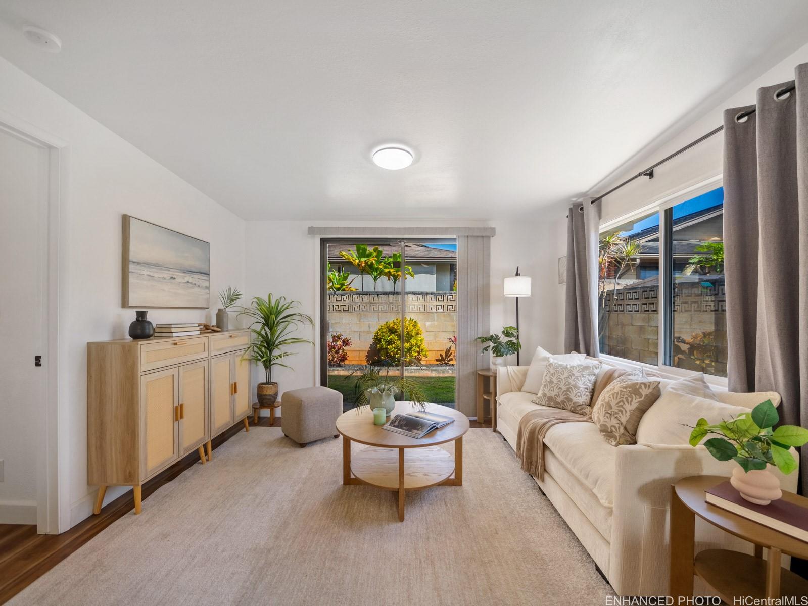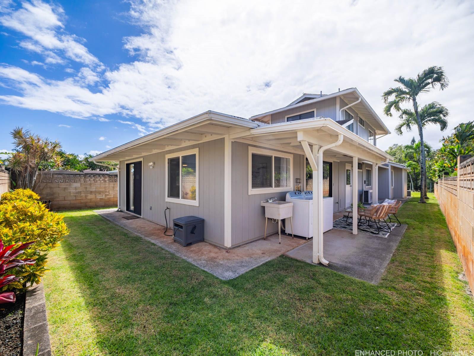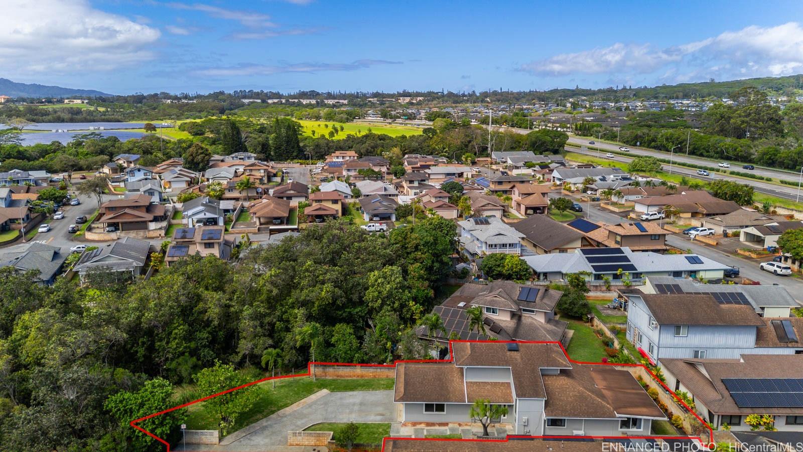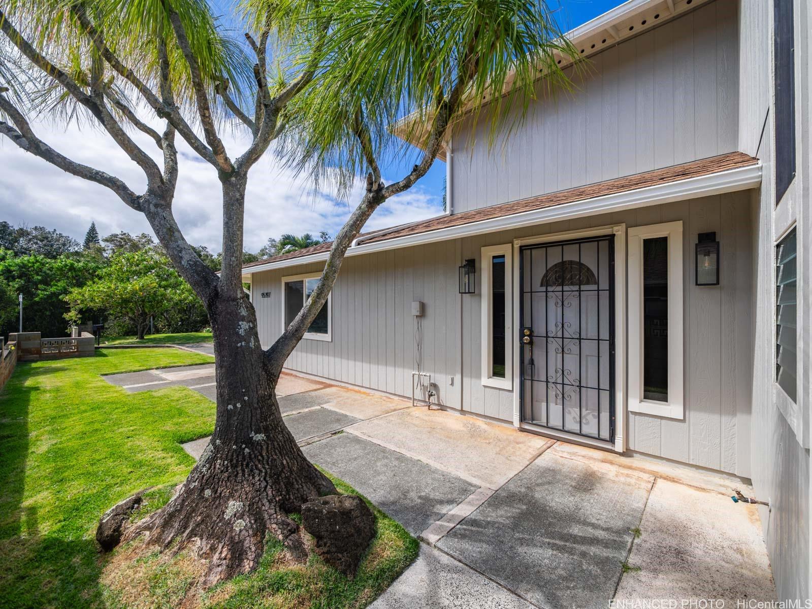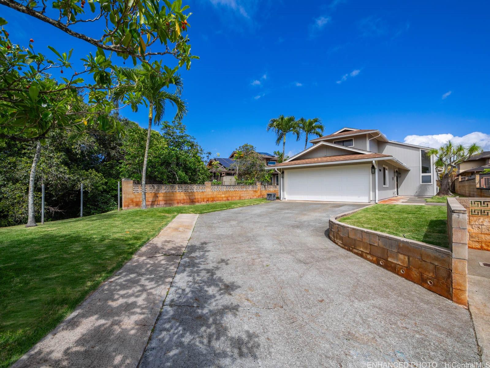Tucked away on a desirable perimeter lot, this Mililani home offers the privacy and quiet buyers crave while still being close to everything that makes Mililani convenient. One of the home’s most sought-after features is the primary bedroom located on the first floor, providing comfort, accessibility, and flexibility for m long-term convenience. The kitchen was thoughtfully remodeled in 2023 and flows seamlessly into the main living areas, making it ideal for everyday living and entertaining. Luxury vinyl plank flooring runs throughout the home, creating a clean, cohesive look that’s both stylish and easy to maintain. With 4 beds and 2 baths, and a two car garage... there’s room for guests, a home office, or growing needs. Whole house fan and split ac's keep the home cool. Enjoy a more secluded feel with few neighbors behind you, plus outdoor space perfect for BBQs, playtime, or unwinding after a long day. Conveniently located near parks, schools, shopping, dining, and freeway access. Come experience the privacy, comfort, and lifestyle this Mililani home offers. 2026 tax value value is $1,109,500. VA assum. loan with eligibility appox. payoff $723,641.65 @ 2.25% interest rate. Listing by: Talk Realty LLC (808) 829-6819