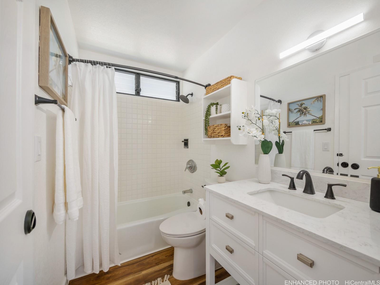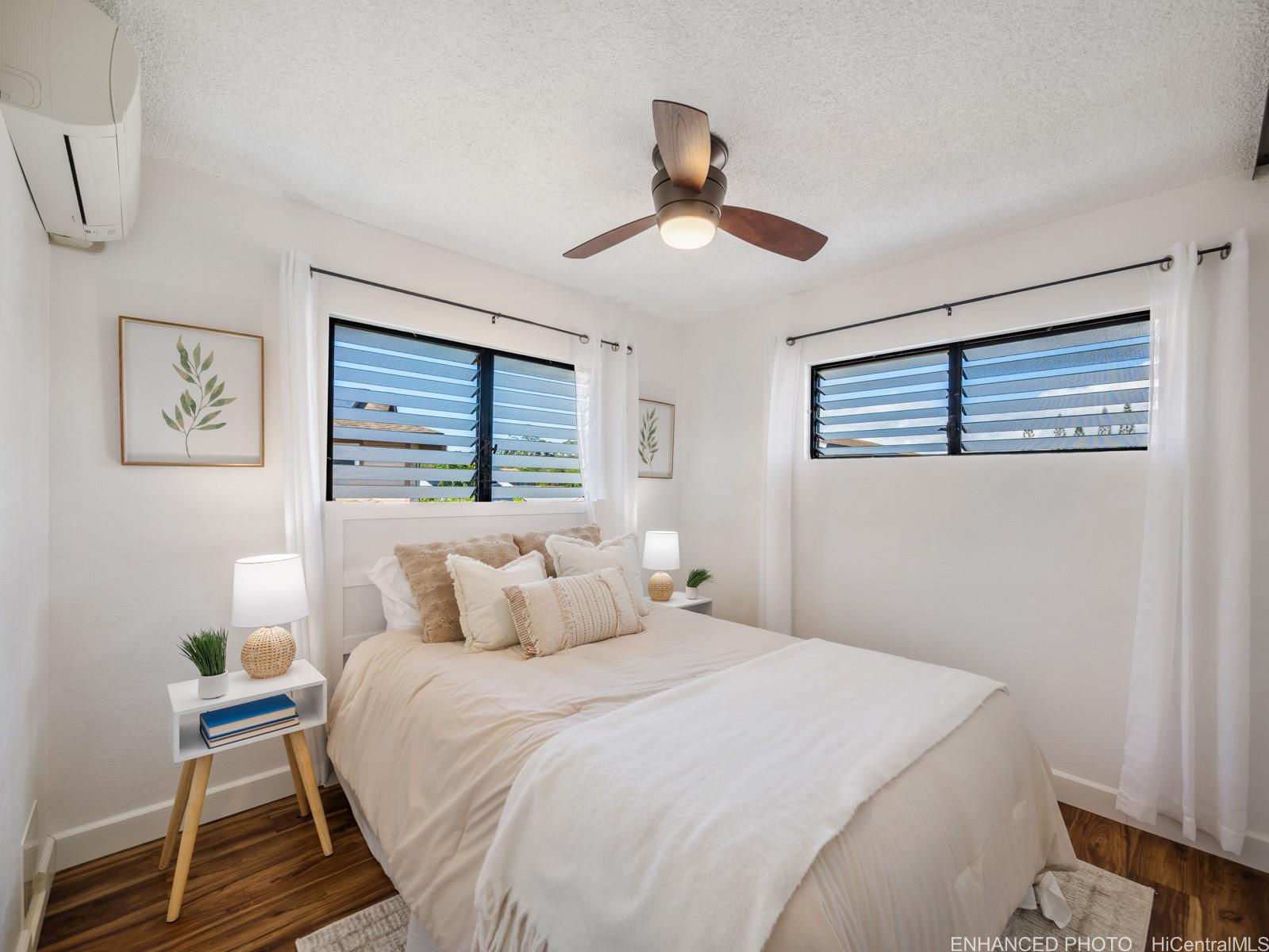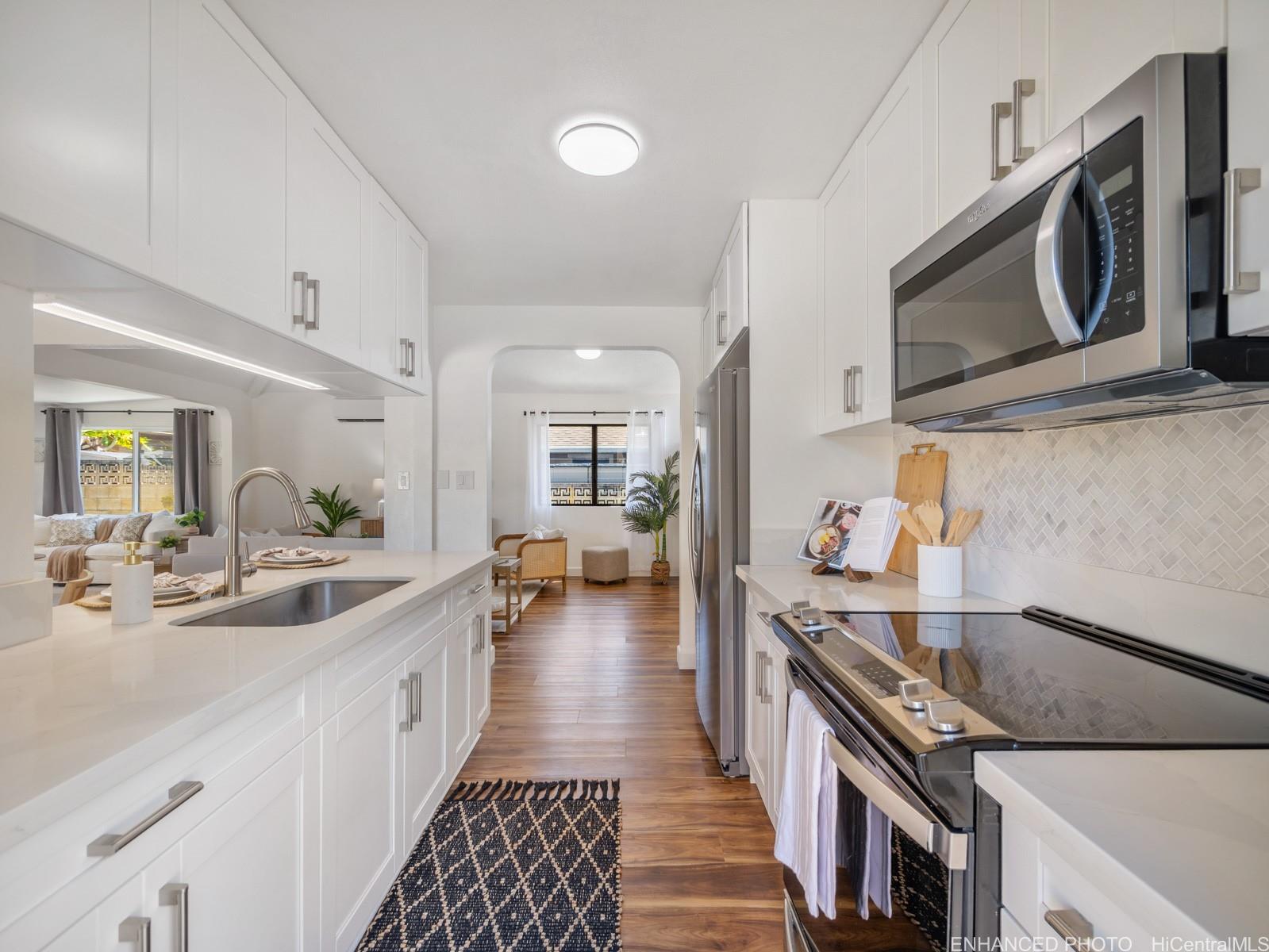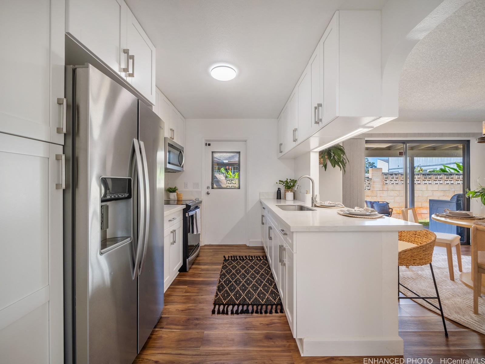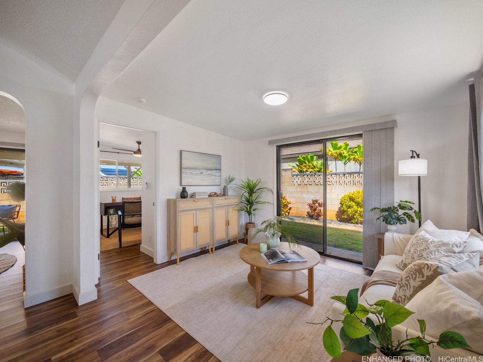 Tucked away on a desirable perimeter lot, this Mililani home offers the privacy and quiet buyers crave while still being close to everything that makes Mililani convenient. One of the home’s most sought-after features is the primary bedroom located on the first floor, providing comfort, accessibility, and flexibility for m long-term convenience. The kitchen was thoughtfully remodeled in 2023 and flows seamlessly into the main living areas, making it ideal for everyday living and entertaining. Luxury vinyl plank flooring runs throughout the home, creating a clean, cohesive look that’s both stylish and easy to maintain. With 4 beds and 2 baths, and a two car garage... there’s room for guests, a home office, or growing needs. Whole house fan and split ac's keep the home cool. Enjoy a more secluded feel with few neighbors behind you, plus outdoor space perfect for BBQs, playtime, or unwinding after a long day. Conveniently located near parks, schools, shopping, dining, and freeway access. Come experience the privacy, comfort, and lifestyle this Mililani home offers. 2026 tax value value is $1,109,500. VA assum. loan with eligibility appox. payoff $723,641.65 @ 2.25% interest rate. Listing by: Talk Realty LLC (808) 829-6819