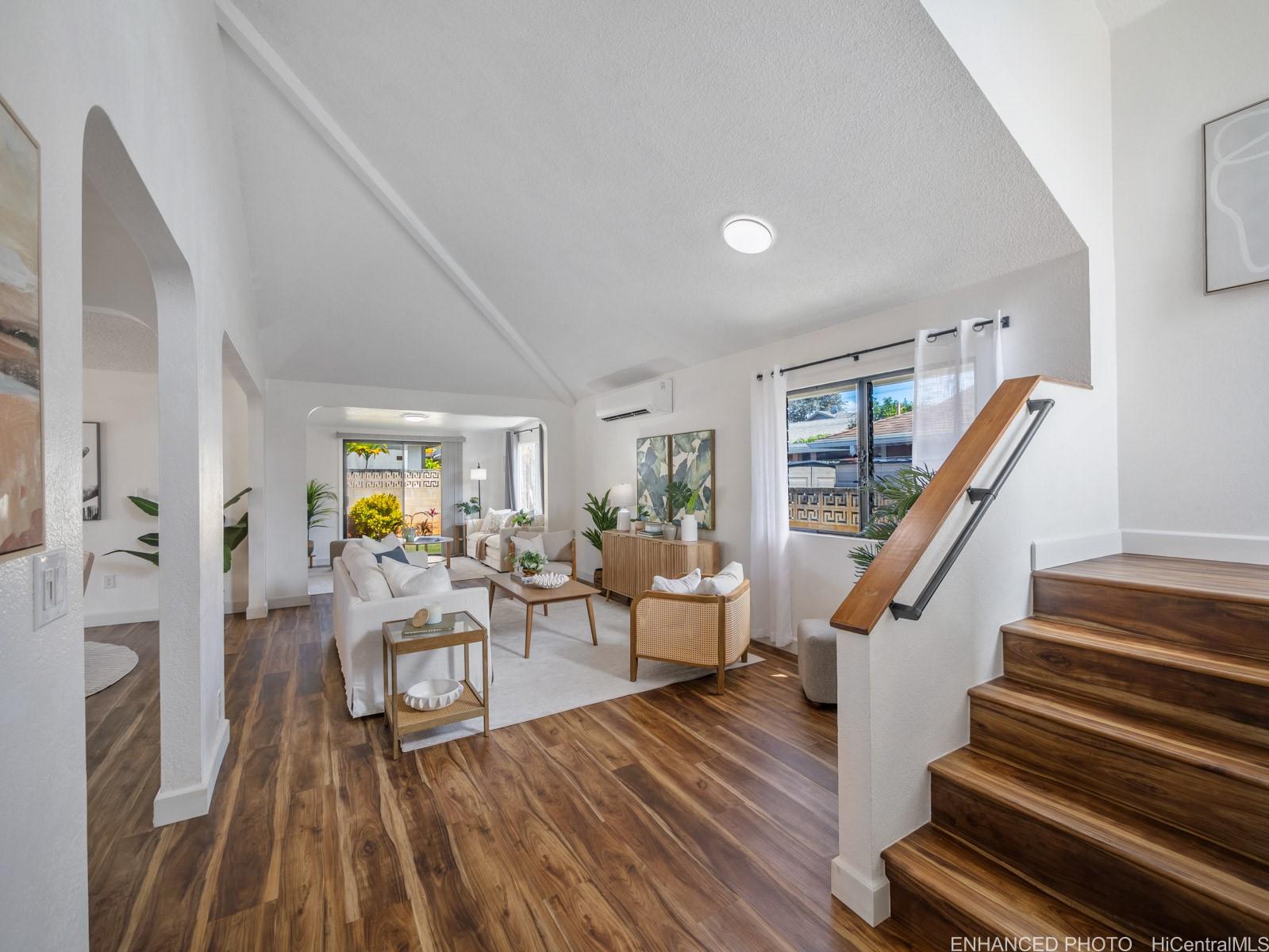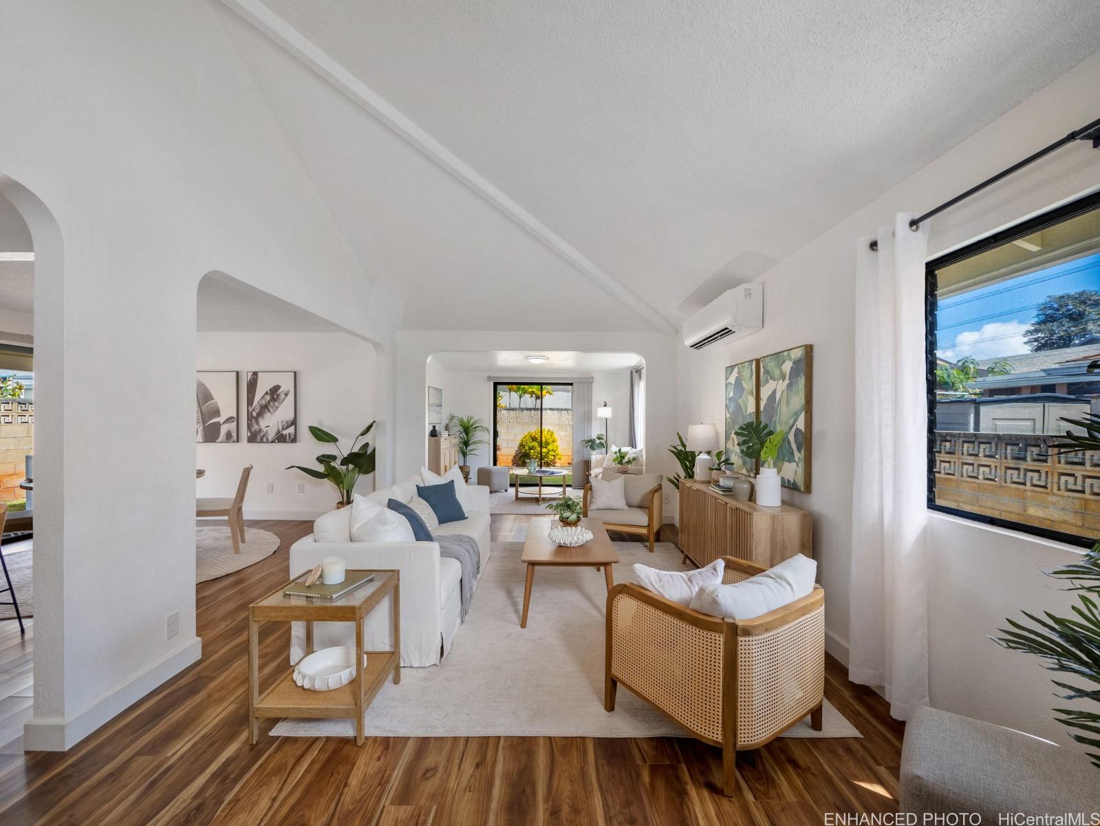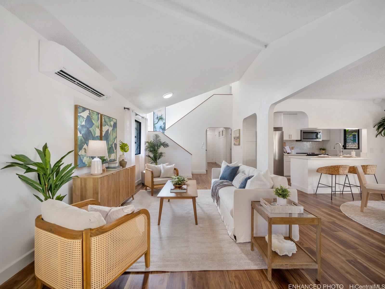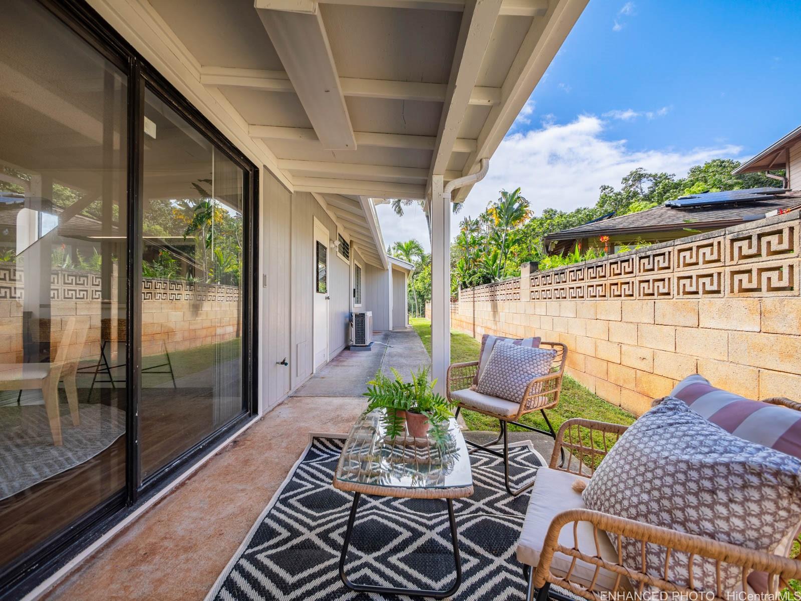 [0] => Tucked away on a desirable perimeter lot, this Mililani home offers the privacy and quiet buyers crave while still being close to everything that makes Mililani convenient. One of the home’s most sought-after features is the primary bedroom located on the first floor, providing comfort, accessibility, and flexibility for m long-term convenience. The kitchen was thoughtfully remodeled in 2023 and flows seamlessly into the main living areas, making it ideal for everyday living and entertaining. Luxury vinyl plank flooring runs throughout the home, creating a clean, cohesive look that’s both stylish and easy to maintain. With 4 beds and 2 baths, and a two car garage... there’s room for guests, a home office, or growing needs. Whole house fan and split ac's keep the home cool. Enjoy a more secluded feel with few neighbors behind you, plus outdoor space perfect for BBQs, playtime, or unwinding after a long day. Conveniently located near parks, schools, shopping, dining, and freeway access. Come experience the privacy, comfort, and lifestyle this Mililani home offers. 2026 tax value value is $1,109,500. VA assum. loan with eligibility appox. payoff $723,641.65 @ 2.25% interest rate.