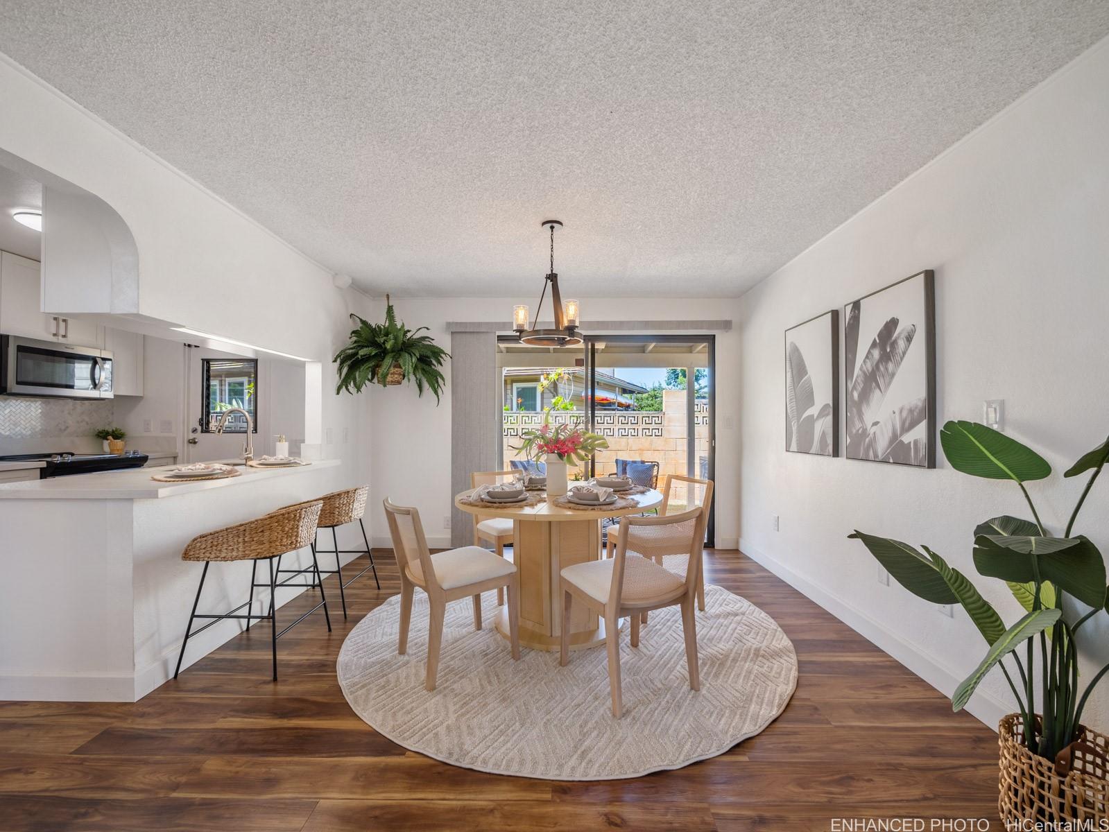 string(1202) "Tucked away on a desirable perimeter lot, this Mililani home offers the privacy and quiet buyers crave while still being close to everything that makes Mililani convenient. One of the home’s most sought-after features is the primary bedroom located on the first floor, providing comfort, accessibility, and flexibility for m long-term convenience. The kitchen was thoughtfully remodeled in 2023 and flows seamlessly into the main living areas, making it ideal for everyday living and entertaining. Luxury vinyl plank flooring runs throughout the home, creating a clean, cohesive look that’s both stylish and easy to maintain. With 4 beds and 2 baths, and a two car garage... there’s room for guests, a home office, or growing needs. Whole house fan and split ac's keep the home cool. Enjoy a more secluded feel with few neighbors behind you, plus outdoor space perfect for BBQs, playtime, or unwinding after a long day. Conveniently located near parks, schools, shopping, dining, and freeway access. Come experience the privacy, comfort, and lifestyle this Mililani home offers. 2026 tax value value is $1,109,500. VA assum. loan with eligibility appox. payoff $723,641.65 @ 2.25% interest rate."