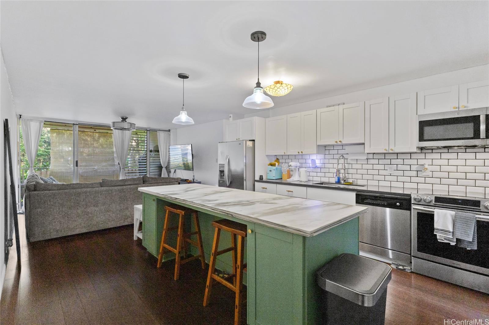string(1092) "Welcome home to Waikalani Woodlands! If a short commute is important to you... this is the place for you. Literally minutes from Schofield Barracks, this 2 bed, 1 bath, beautifully renovated condo with 2 parking feels like home. This second floor unit offers a spacious layout with a large kitchen island, brand new microwave, tons of storage, and a wonderful modern feel. From the kitchen, step right into the spacious living space with endless layout opportunities. From here, you look right out onto your lanai, where you have the privacy of no units outside, just a peaceful, forest backdrop. The primary bedroom features a large closet with a sliding barn door and the 2nd bedroom is perfect for an office space or hosting guests. The bathroom has been beautifully updated with new tiling in the shower. This home also features a brand new washer and dryer set, which is thoughtfully placed just outside the bedrooms for ease of access. This home is perfectly located in Northern Mililani, just a short drive from all of your shopping and dining needs. Don’t wait, schedule a tour now!"