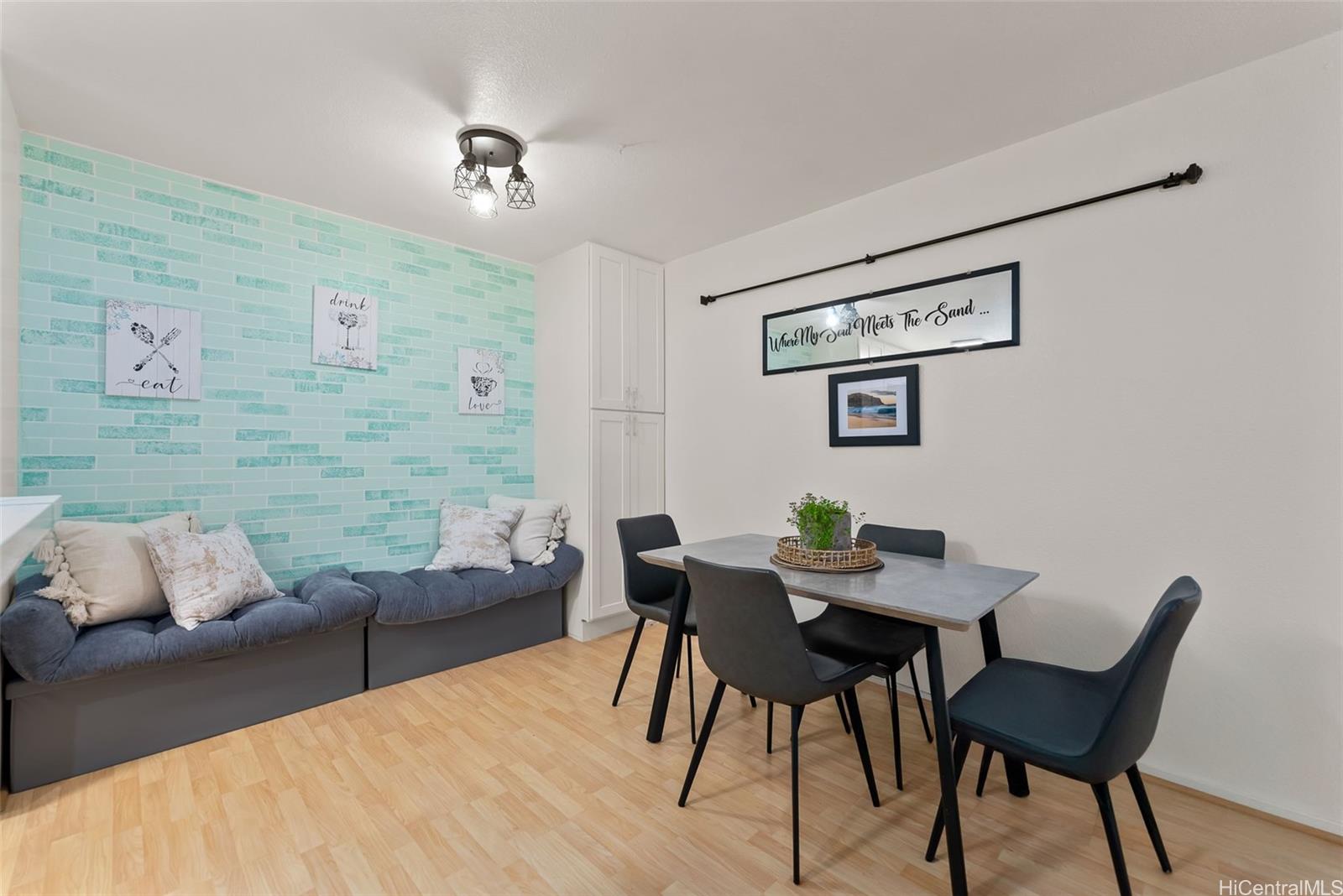 string(927) "Discover privacy and modern comfort in this renovated corner end-unit in Launani Valley. Surrounded by lush hillside views and accessed by a private back stairway, this home has been thoughtfully upgraded throughout. The kitchen features white shaker cabinetry, marble-style quartz counters, a glass tile backsplash, sleek black stainless appliances, and a cozy breakfast nook with built-in seating and storage. Both bathrooms have been transformed with new vanities, modern lighting, and elegant tilework—including a stunning walk-in shower in the primary suite. The dual-suite layout offers spacious bedrooms on opposite sides of the home, each with direct access to the covered lanai and open yard space, ready for your imagination, gatherings, or indoor-outdoor living. Includes 1 covered and 1 open parking stall with storage. Enjoy community amenities including a pool, hot tub, playground, walking paths, and car wash."