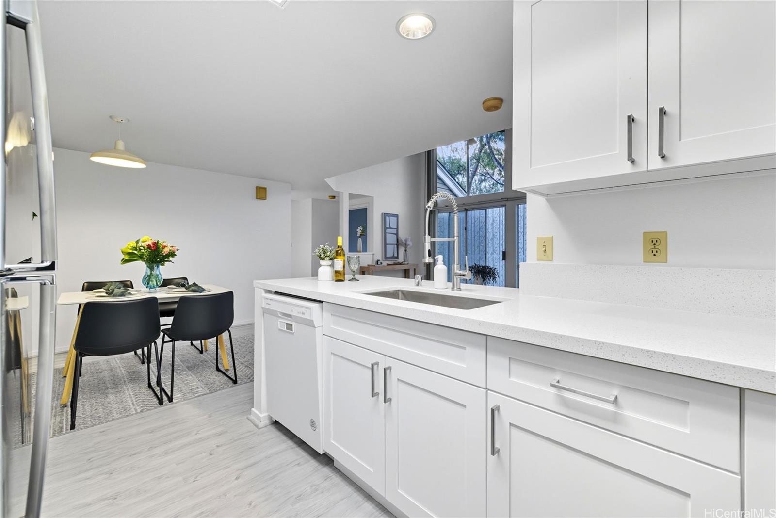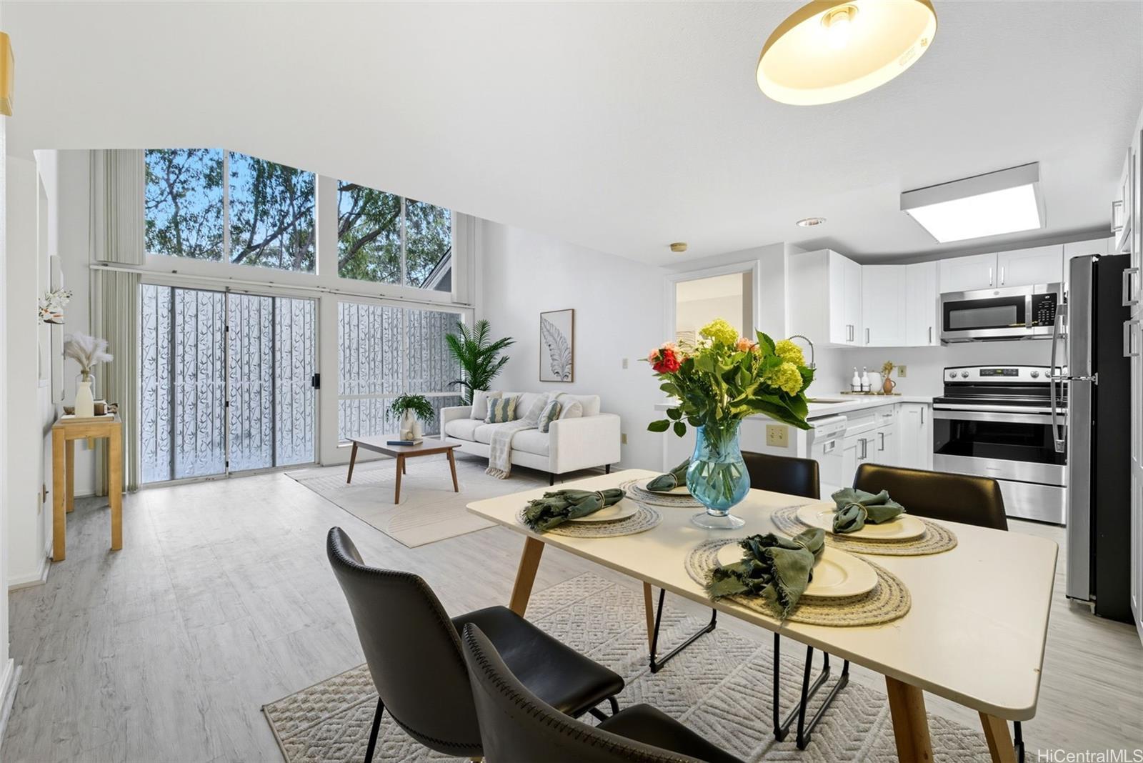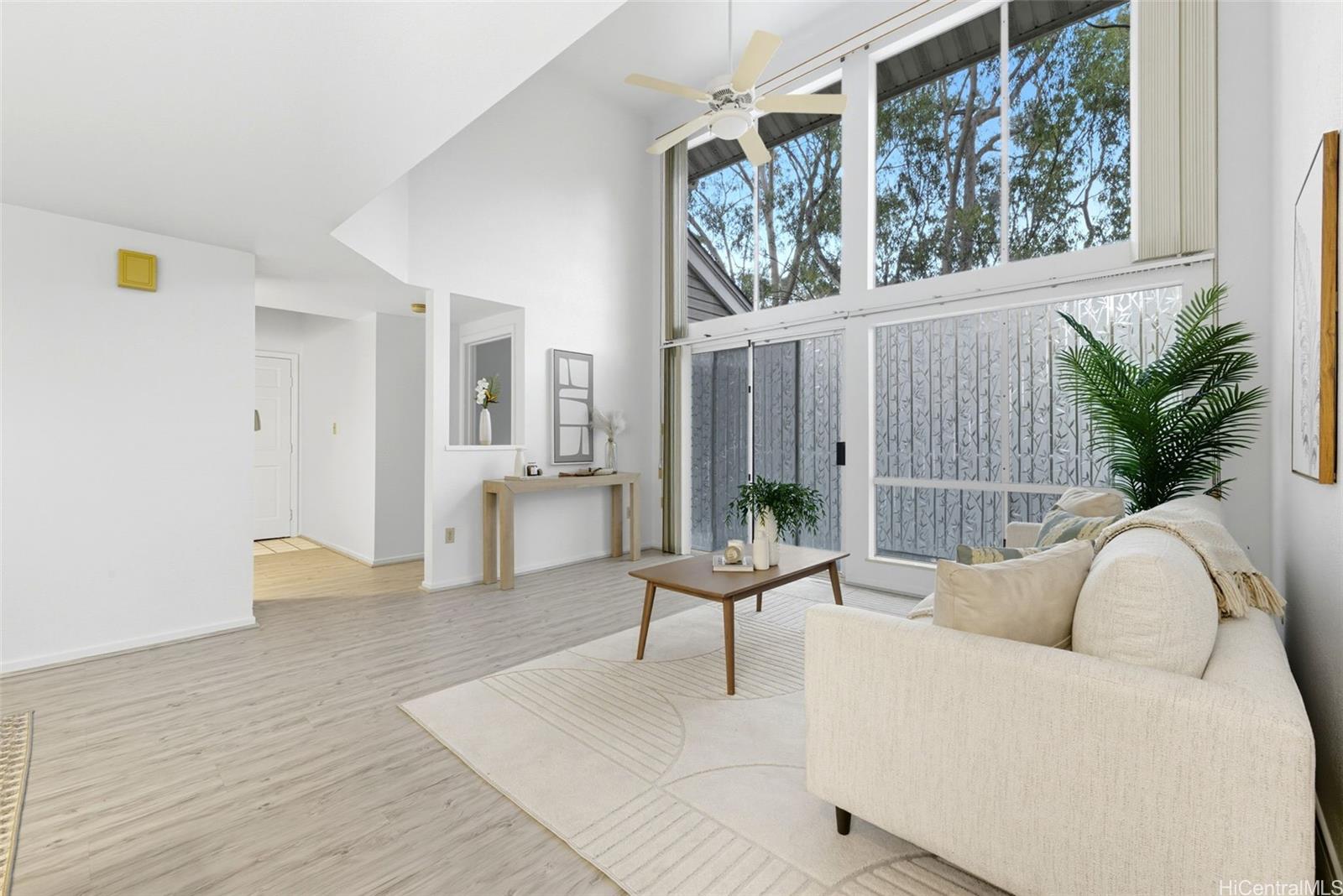string(821) "E Komo Mai! Welcome to this beautifully remodeled 3-bedroom, 2-bath split-level residence in Evergreen Terrace, offering a serene and tranquil setting. Upgrades include luxury plank flooring, fresh interior paint, updated kitchen cabinetry, and refreshed bathrooms with new vanities, toilets, and reglazed showers. Additional storage located in front of covered parking stall. The bright, open layout flows seamlessly, with a versatile loft space ideal for an office, guest room, or private retreat. Enjoy the convenience of two assigned parking stalls (one covered, one open) plus ample guest parking. Community amenities—pool, whirlpool, BBQ area, and playground—make it easy to relax and entertain. Perfectly located near shopping, dining, and major thoroughfares, this move-in-ready residence is truly a must-see."
