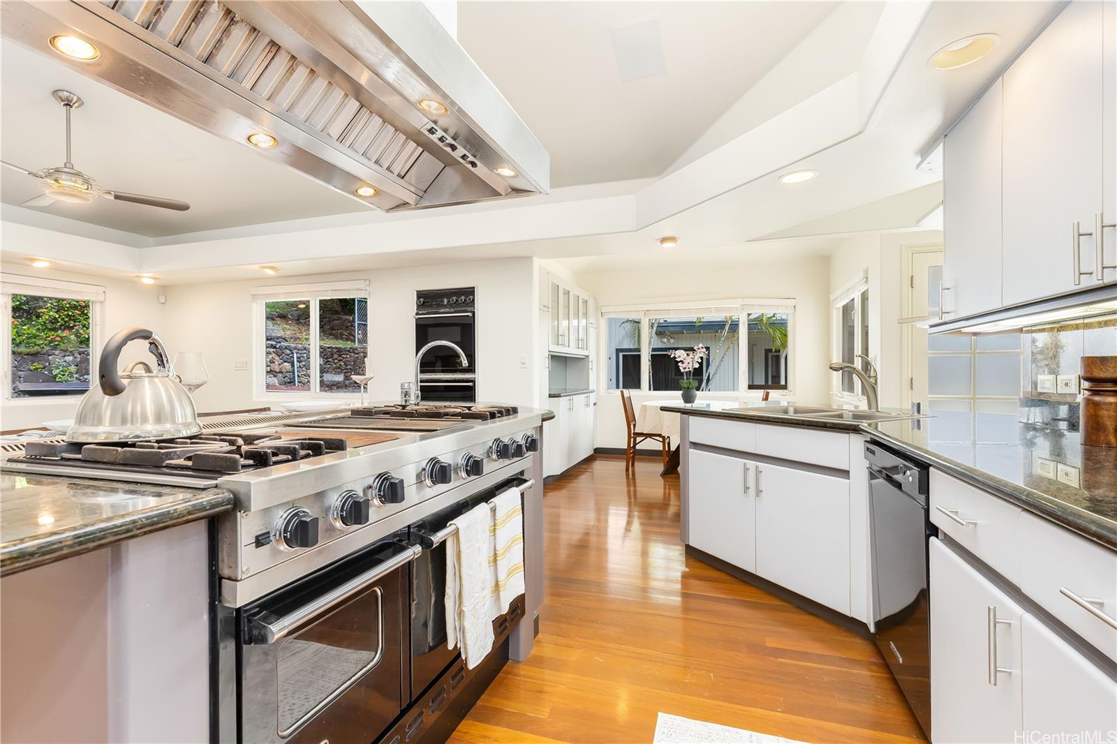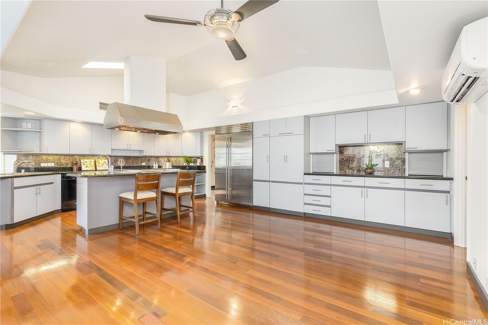 Rare opportunity in Pearlridge Estates—this exceptionally large residence offers over 5,000 square feet of interior living space, a true standout for the area. The spacious layout provides exceptional flexibility with multiple separate living areas, ideal for extended family living or entertaining guests. The gourmet kitchen is equipped with a Sub-Zero refrigerator, Viking gas range, and double wall ovens, and is complemented by a formal dining room and a sunny breakfast nook. Skylights throughout the home create an airy feel, enhanced by oversized ceiling heights. You’ve never seen a primary suite like this—an expansive bedroom with an enormous walk-in closet, along with a private study located downstairs that offers direct access to the garage. Enjoy breathtaking 180-degree views showcasing the ocean, coastline, and city lights. This is a truly rare luxury retreat—unlike anything else in Pearlridge Estates. Listing by: Compass (808) 224-3271
