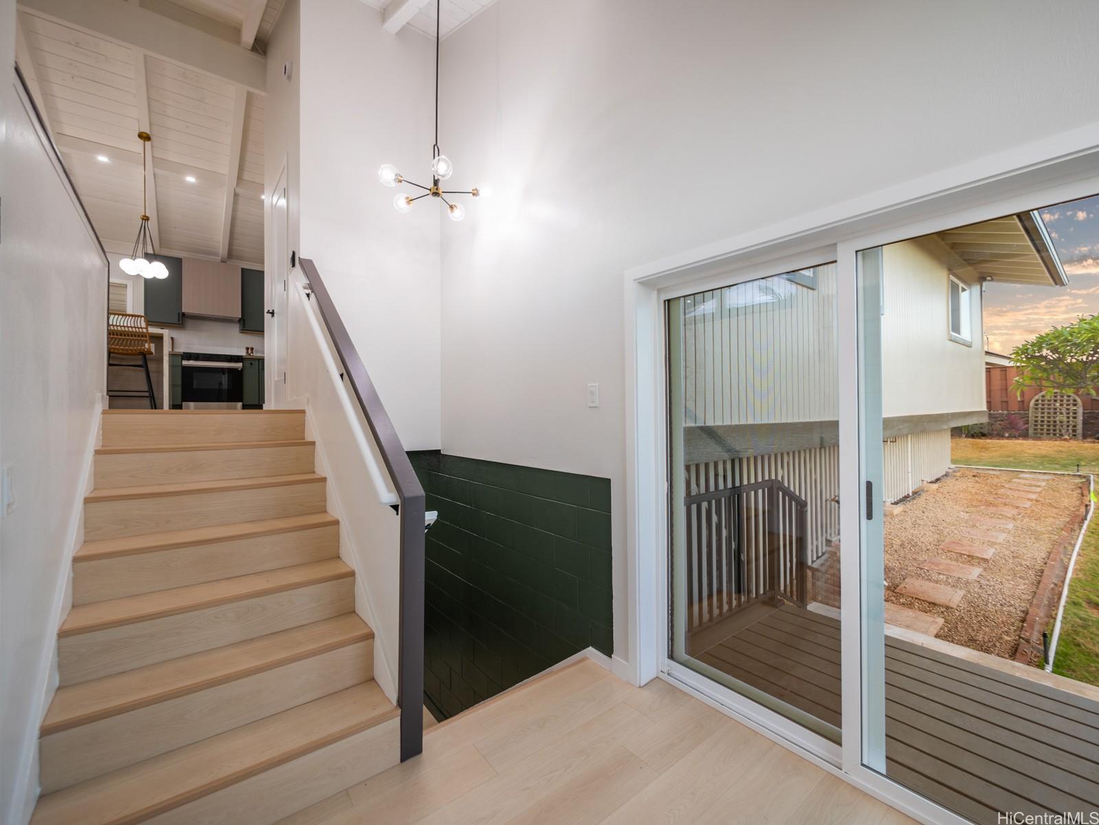 Welcome to this beautifully updated 4-bedroom, 2.5-bath home in desirable Newtown Estates. Featuring the exclusive Lanikai Maple flooring from the Mauka to Makai collection, this home offers modern comfort with island-inspired charm. Enjoy high ceilings, a spacious living area with split AC, and window units in all bedrooms. The generous kitchen is equipped with brand-new stainless steel appliances, and dual-pane windows provide energy efficiency throughout. A welcoming lanai invites seamless indoor-outdoor living, perfect for relaxing or entertaining. Take in stunning harbor views from multiple vantage points in the home. Move-in ready and thoughtfully upgraded, this is a must-see property in a prime location. Listing by: Engel & Volkers Honolulu (808) 220-4604