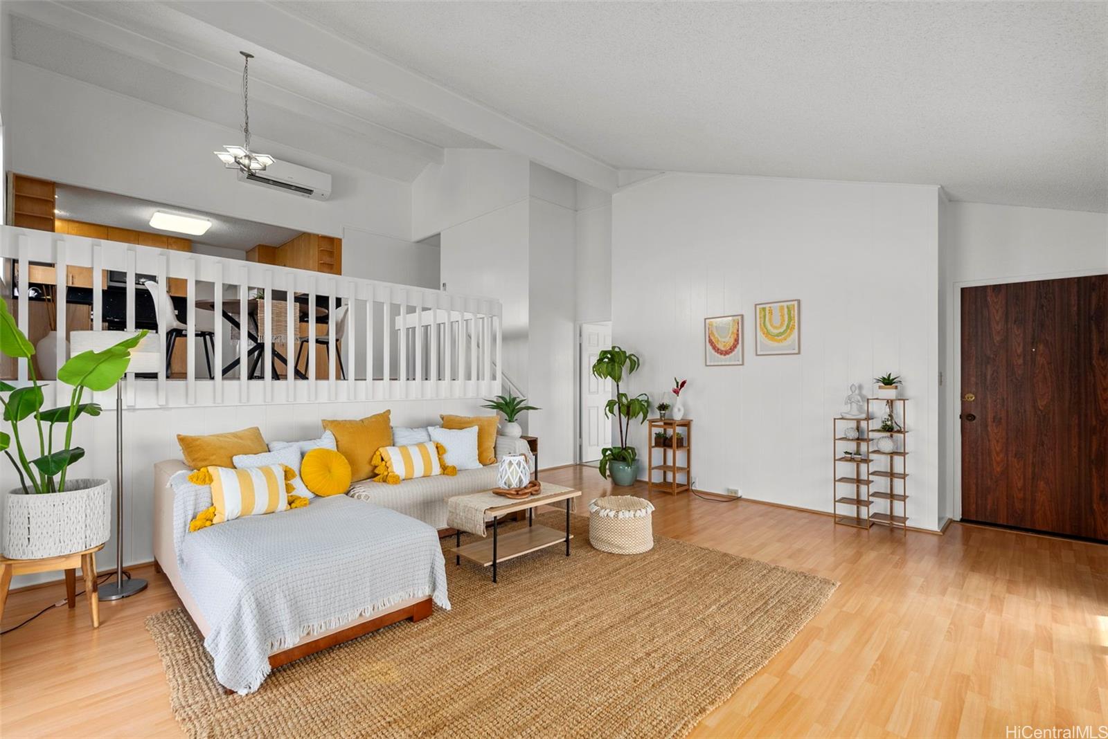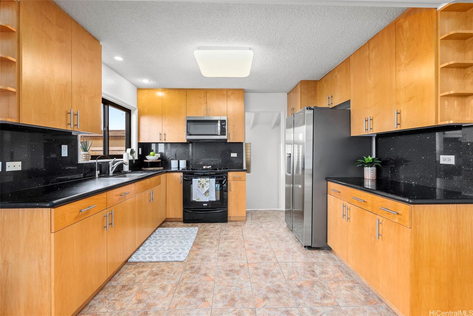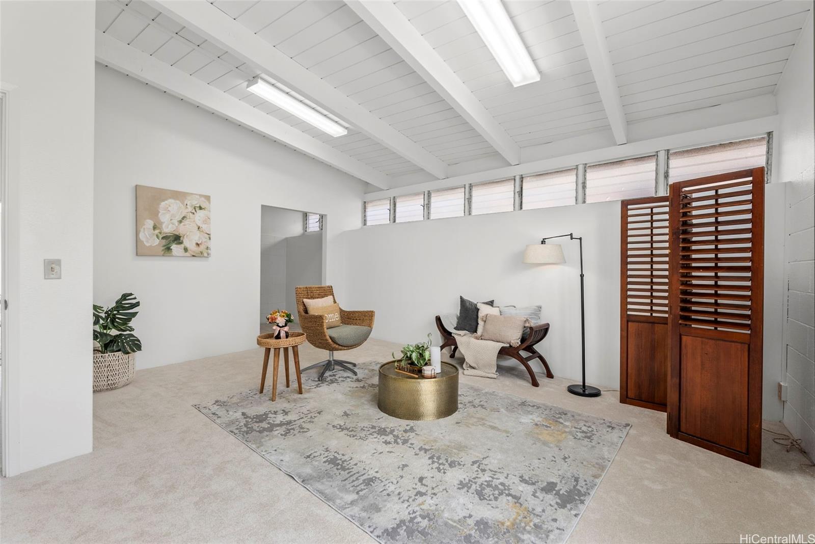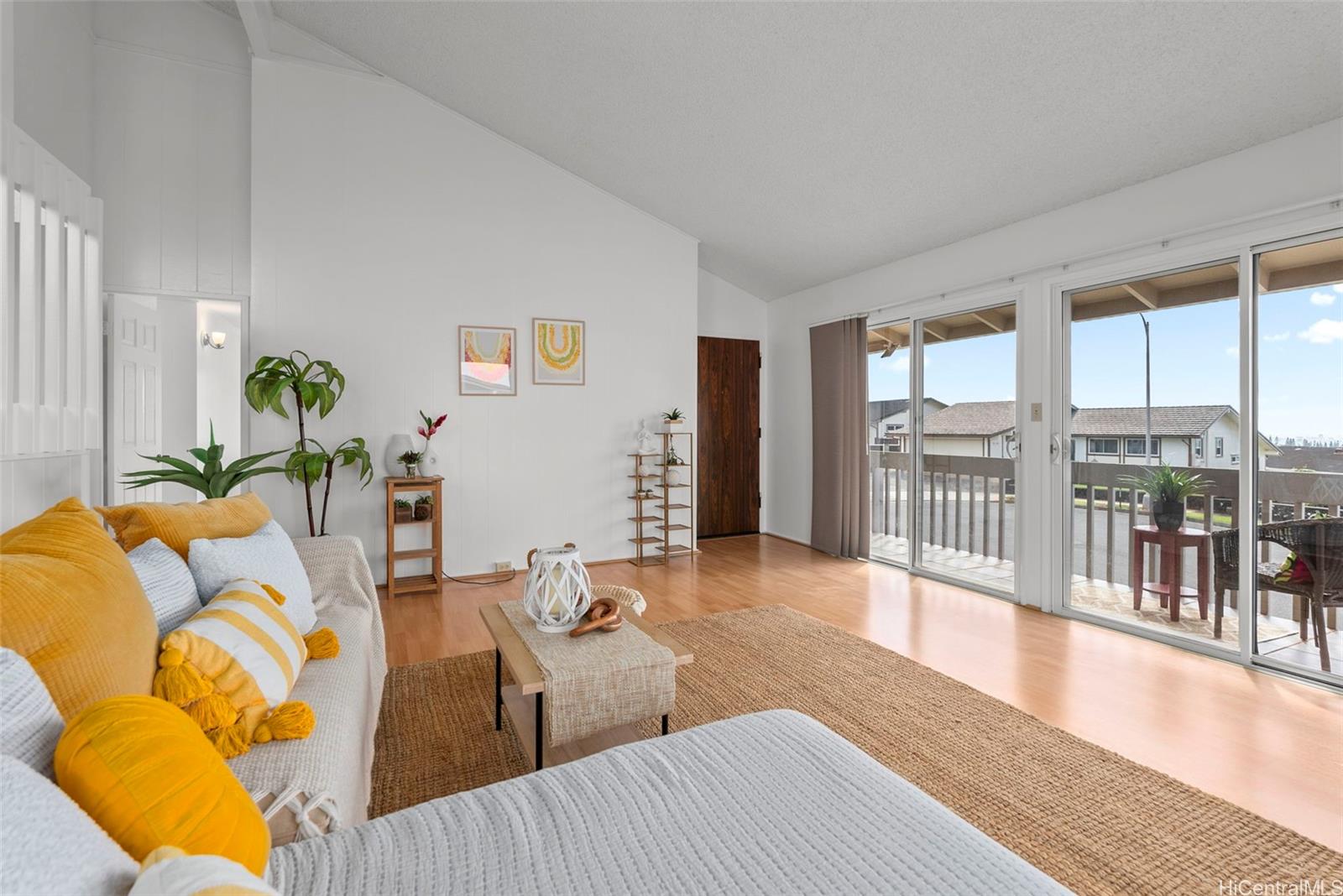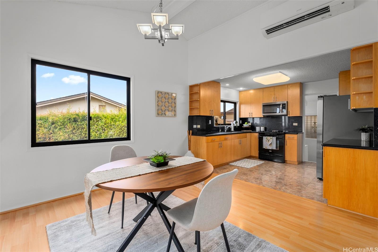 [0] => Experience island living in this 4-bedroom, 3-bath home located at the end of a quiet cul-de-sac in the highly desired Newtown Estates neighborhood. Enjoy spectacular views of the city, ocean, coastline, and sunsets right from your living room and deck—perfect for relaxing or entertaining. The home offers a versatile layout with a 4th bedroom featuring a separate entry, ideal for guests, extended family, or a home office. 3rd full bath in extra-large 4-car enclosed garage, spacious fenced yards, and storage shed provides ample room for storage, gardening, pets, or play, adding to the appeal of this well-maintained property. Energy-efficient living is made easy with 18 owned photovoltaic panels, split AC, and window AC units in the bedrooms to keep you cool and comfortable year-round. Recent updates include fresh interior paint, new carpet, vinyl flooring in the laundry room, and new refrigerator. Conveniently located near parks, shopping, and restaurants this home combines comfort, functionality, and a prime location in one of Aiea’s most sought-after communities.