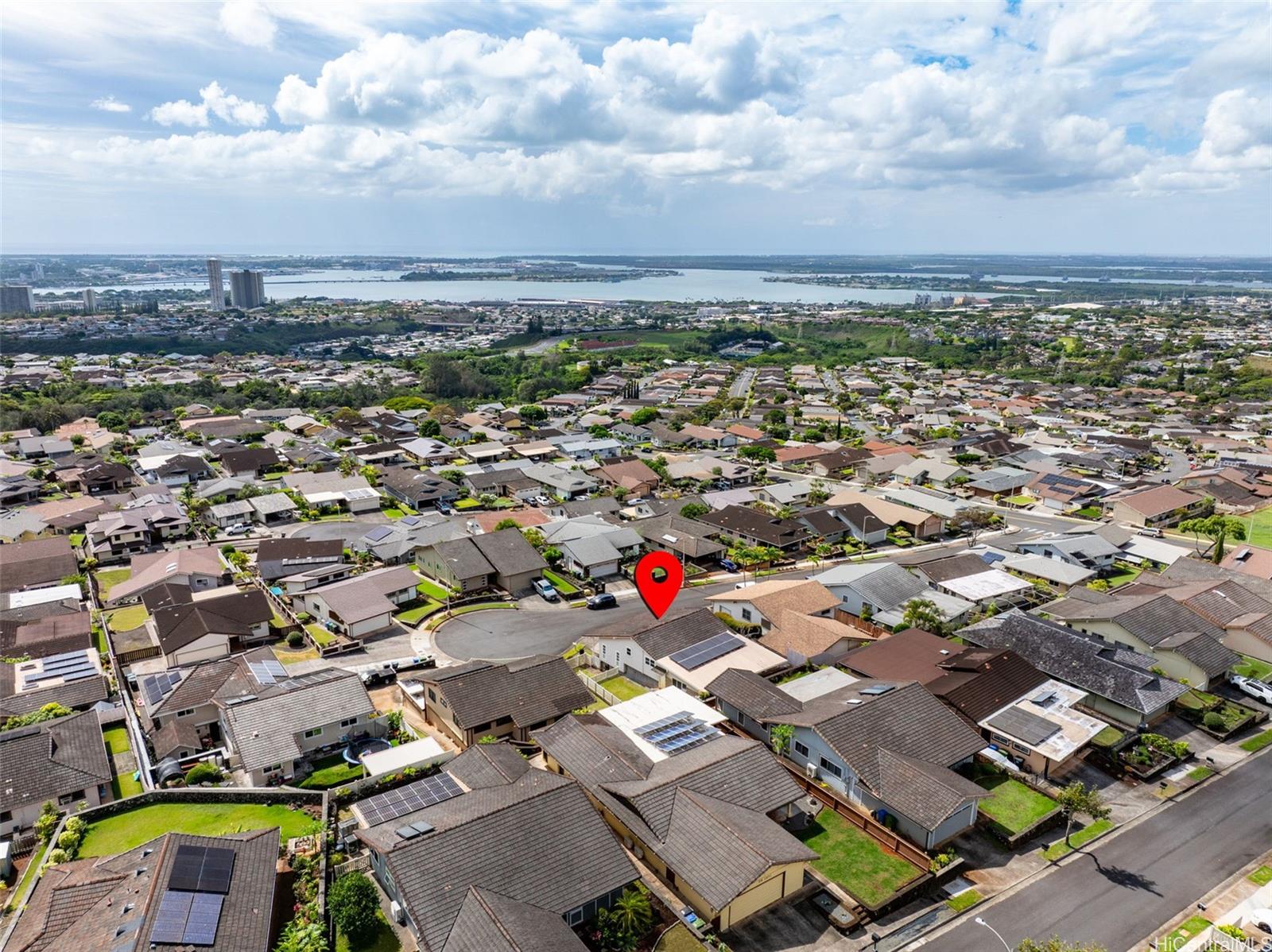 Experience island living in this 4-bedroom, 3-bath home located at the end of a quiet cul-de-sac in the highly desired Newtown Estates neighborhood. Enjoy spectacular views of the city, ocean, coastline, and sunsets right from your living room and deck—perfect for relaxing or entertaining. The home offers a versatile layout with a 4th bedroom featuring a separate entry, ideal for guests, extended family, or a home office. 3rd full bath in extra-large 4-car enclosed garage, spacious fenced yards, and storage shed provides ample room for storage, gardening, pets, or play, adding to the appeal of this well-maintained property. Energy-efficient living is made easy with 18 owned photovoltaic panels, split AC, and window AC units in the bedrooms to keep you cool and comfortable year-round. Recent updates include fresh interior paint, new carpet, vinyl flooring in the laundry room, and new refrigerator. Conveniently located near parks, shopping, and restaurants this home combines comfort, functionality, and a prime location in one of Aiea’s most sought-after communities. Listing by: REMAX Hawaii (808) 330-0284