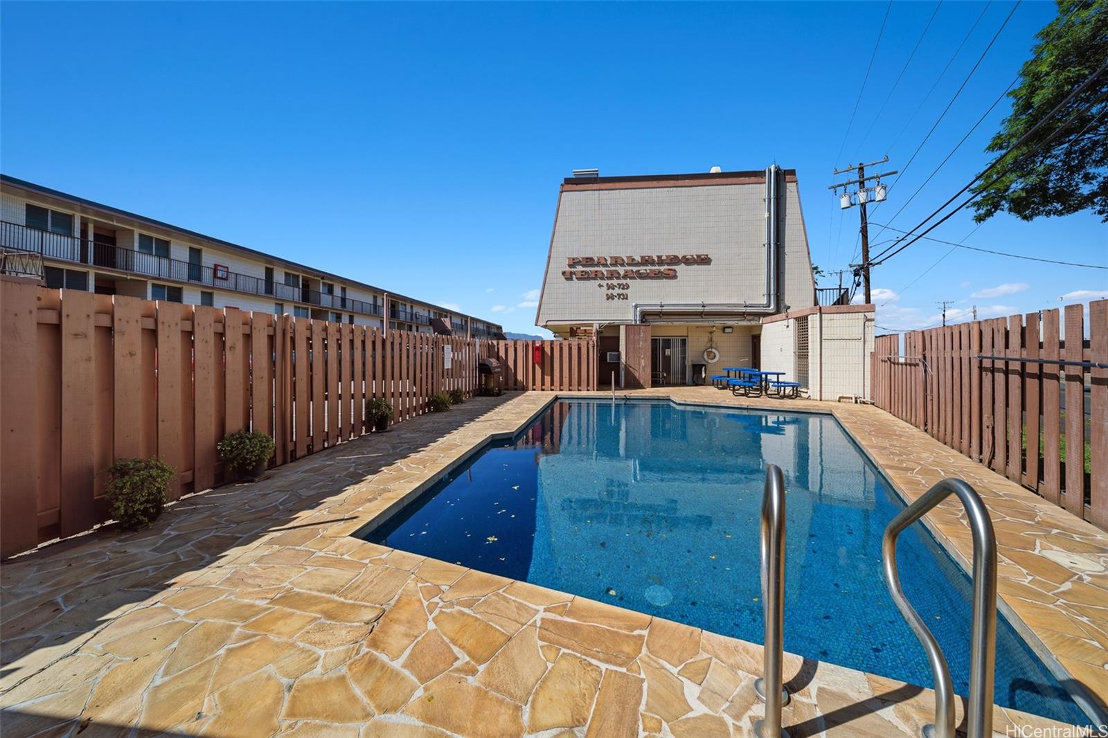 [0] => Step into island living in Pearl Ridge Terraces, nestled in the heart of Aiea. This updated 2-bedroom, 1-bathroom retreat invites you to enjoy a lifestyle that's equal parts convenience and comfort. Wake up to lovely views and take advantage of the community's sparkling pool—a perfect spot to cool off on warm Hawaiian days. With accessible laundry facilities and a dedicated parking space, your daily routine just got a whole lot easier. But what truly makes this property shine is its prime location. Imagine being just steps from the rail line and directly across from a vibrant shopping center—whether you're grabbing coffee, dining out, or running errands, everything you need is right at your fingertips. This is your chance to own a slice of paradise in charming Aiea.