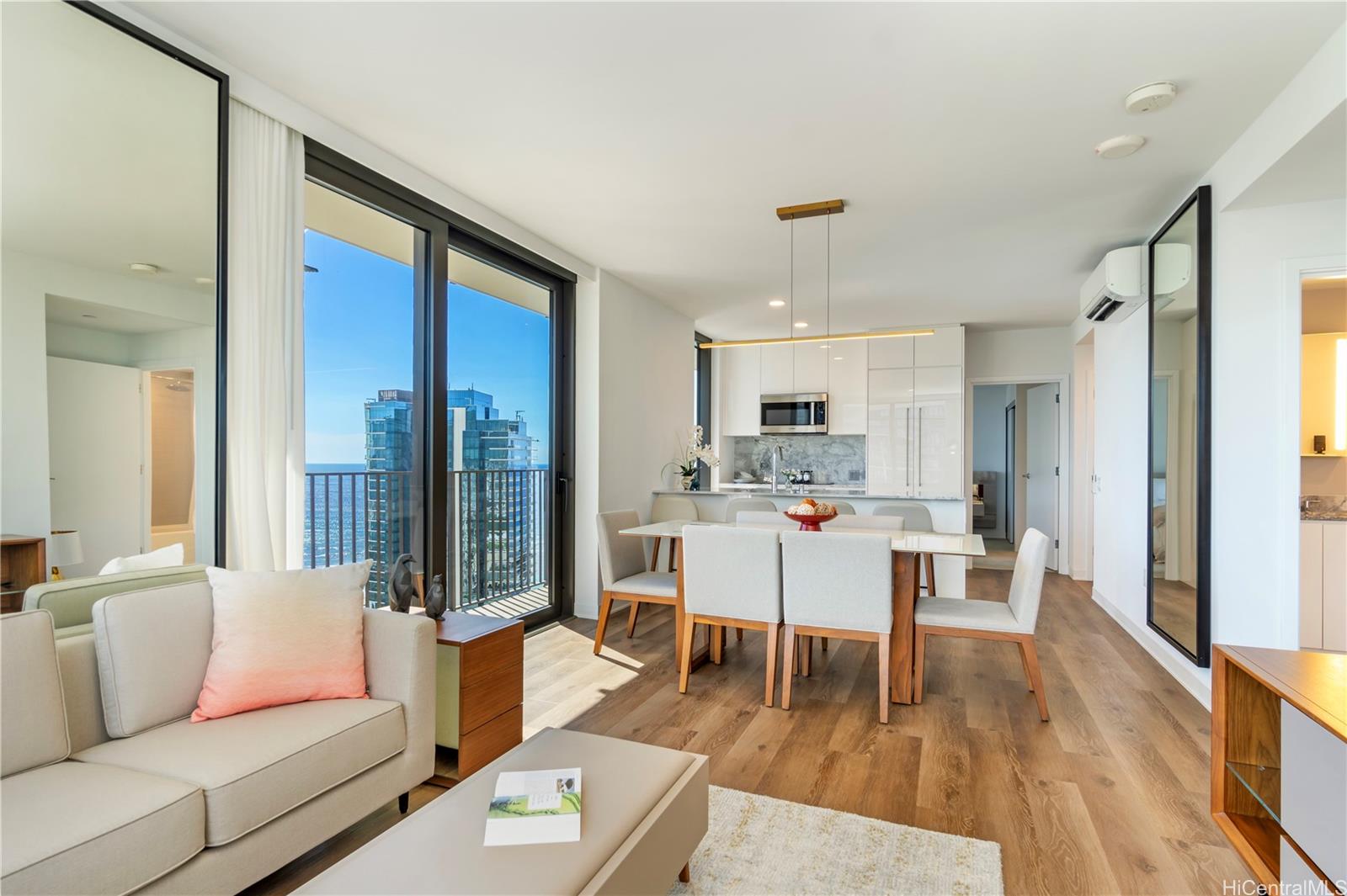 Welcome to A‘ali‘i #3714 in Ward Village, offering sweeping ocean and mountain views from a high floor.