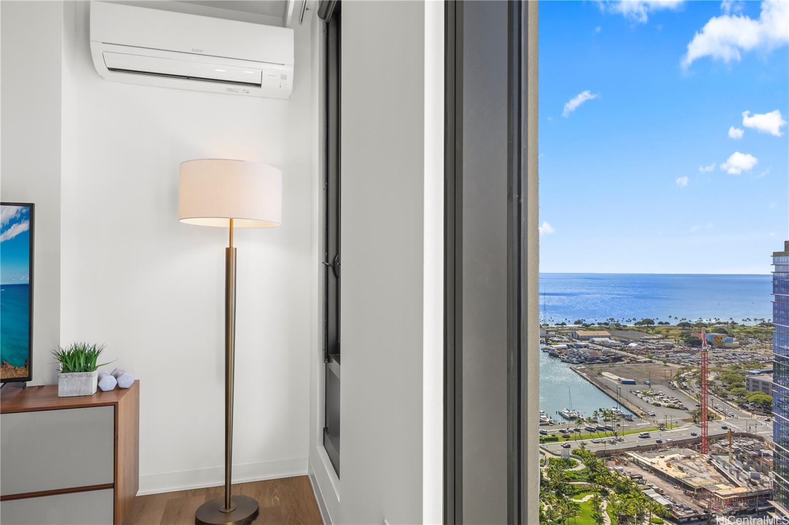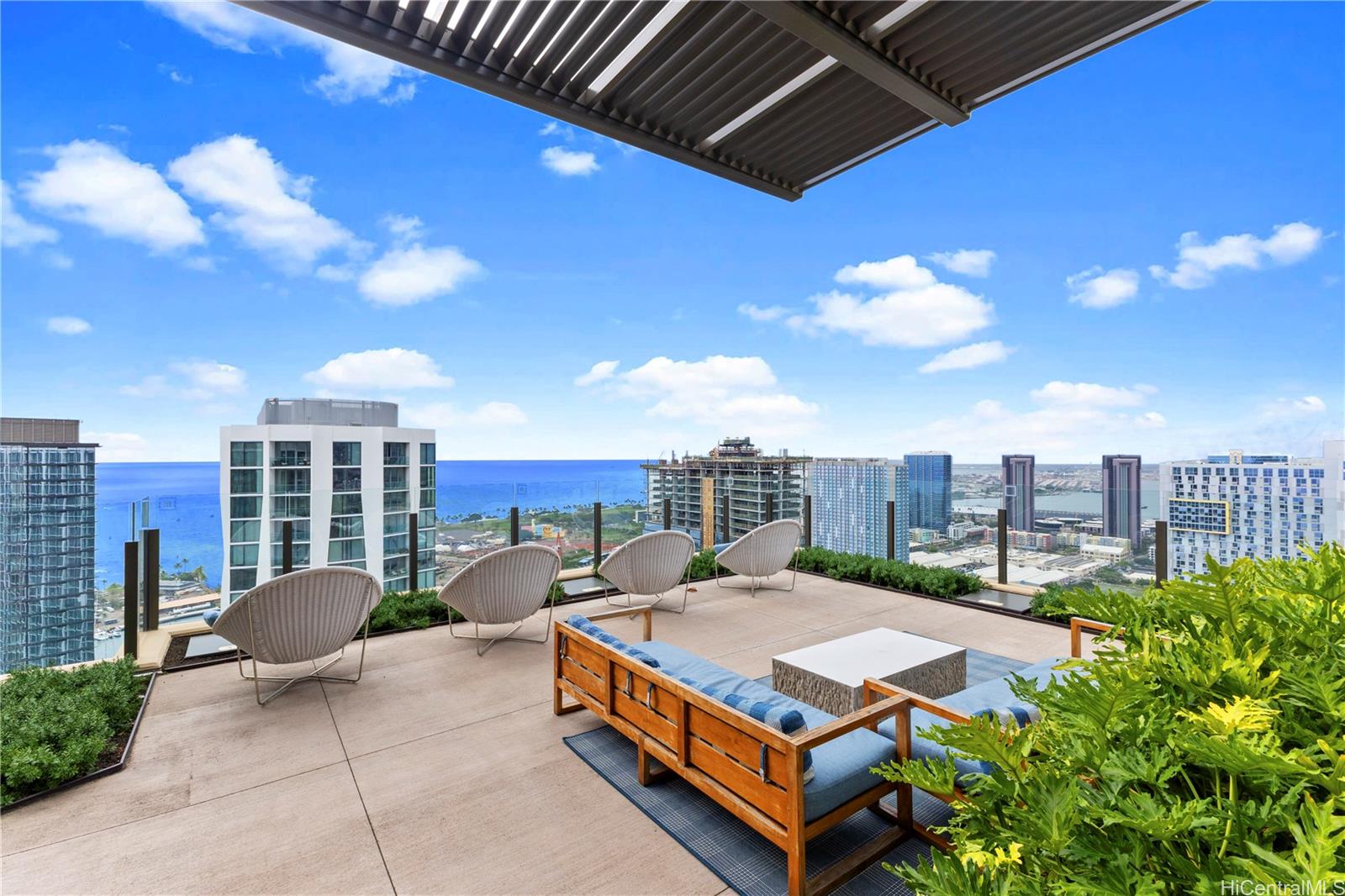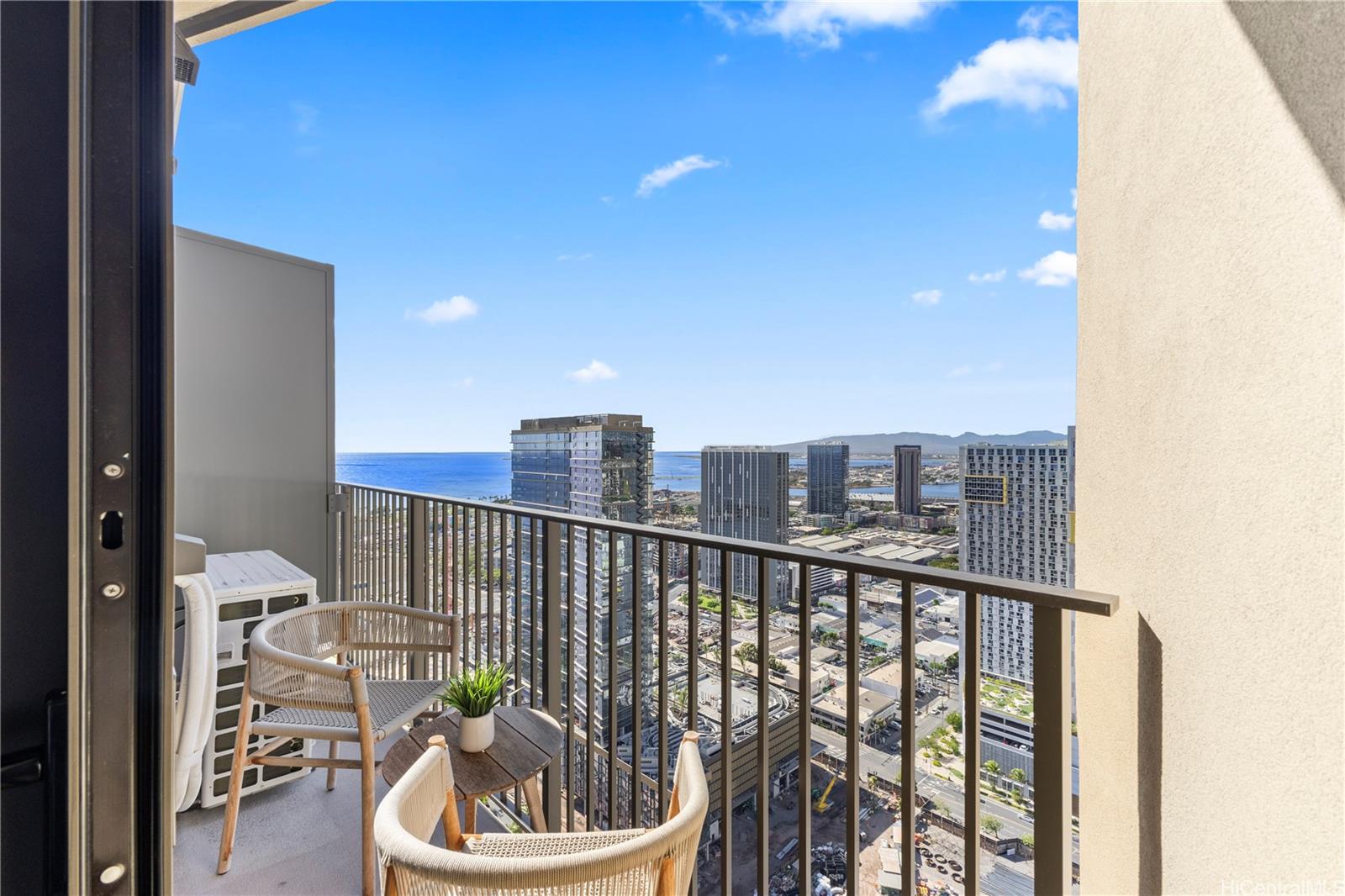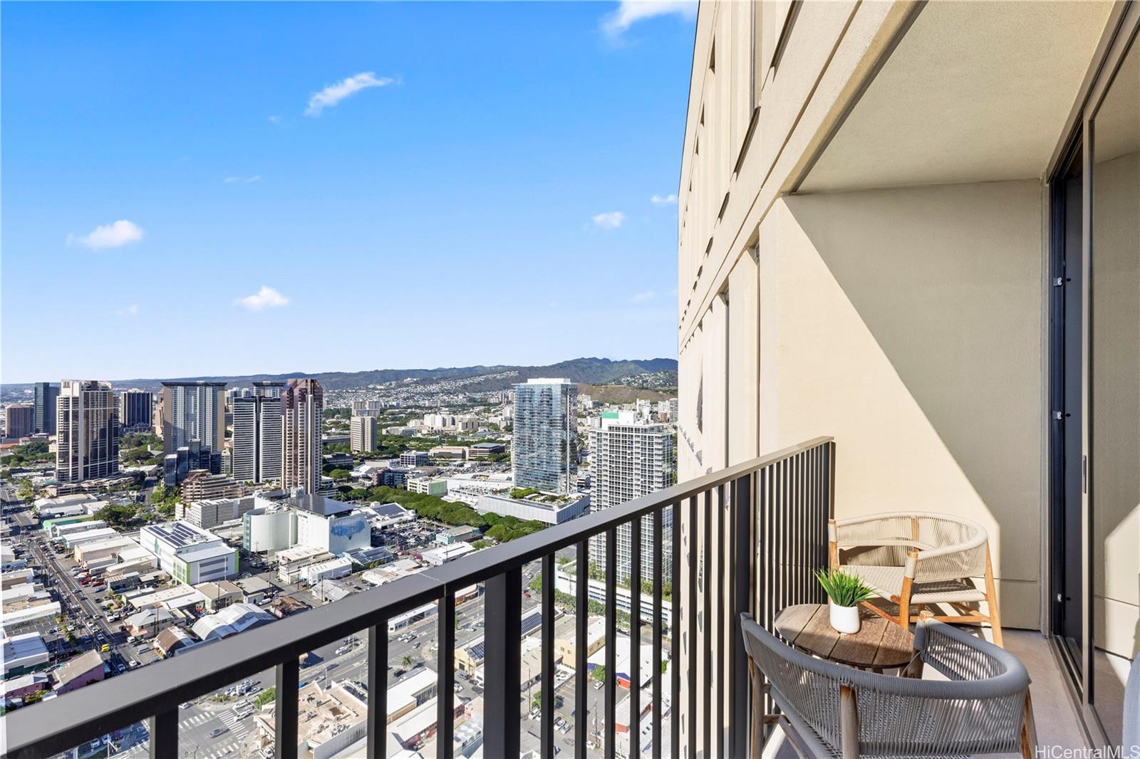 Welcome home and enjoy! High floor unit on the sunset side of the building. Stunning views from the lanai and 668 total sf makes this one of the largest one bedroom units in Aalii. Ease of life with resort-style amenities for your convenience. Unit is located just below the roof deck with breathtaking views from the sky lounge and fitness club. Poolside cabanas = entertain at the barbecue area, keiki pool, and indoor/outdoor event space. Located in the heart of Ward village near restaurants, grocery, and the Ala Moana Center. Convenient walking distance to most areas. Listing by: ILC & Swell Realty LLC (808) 951-4177