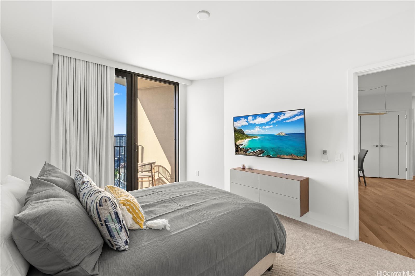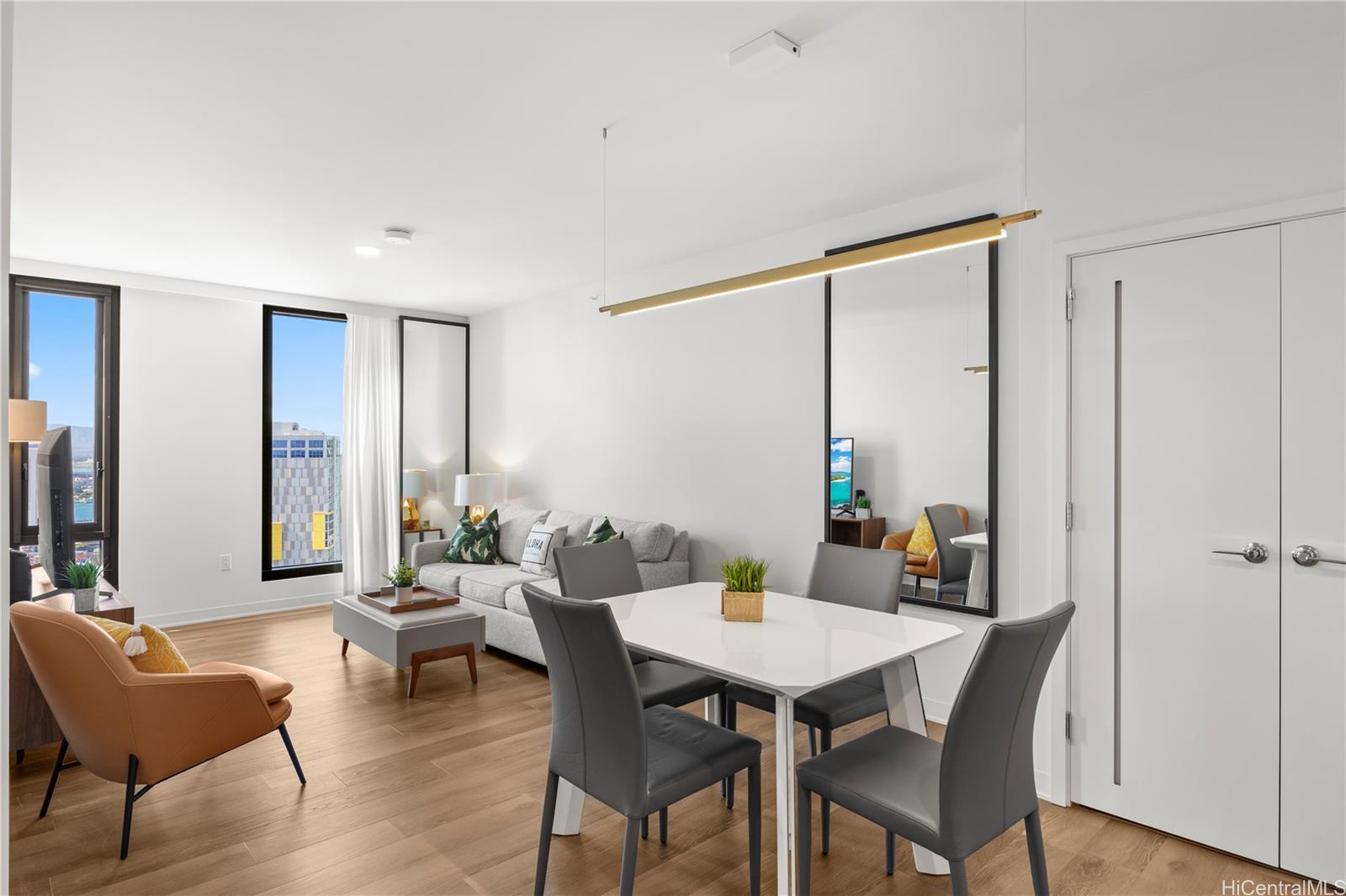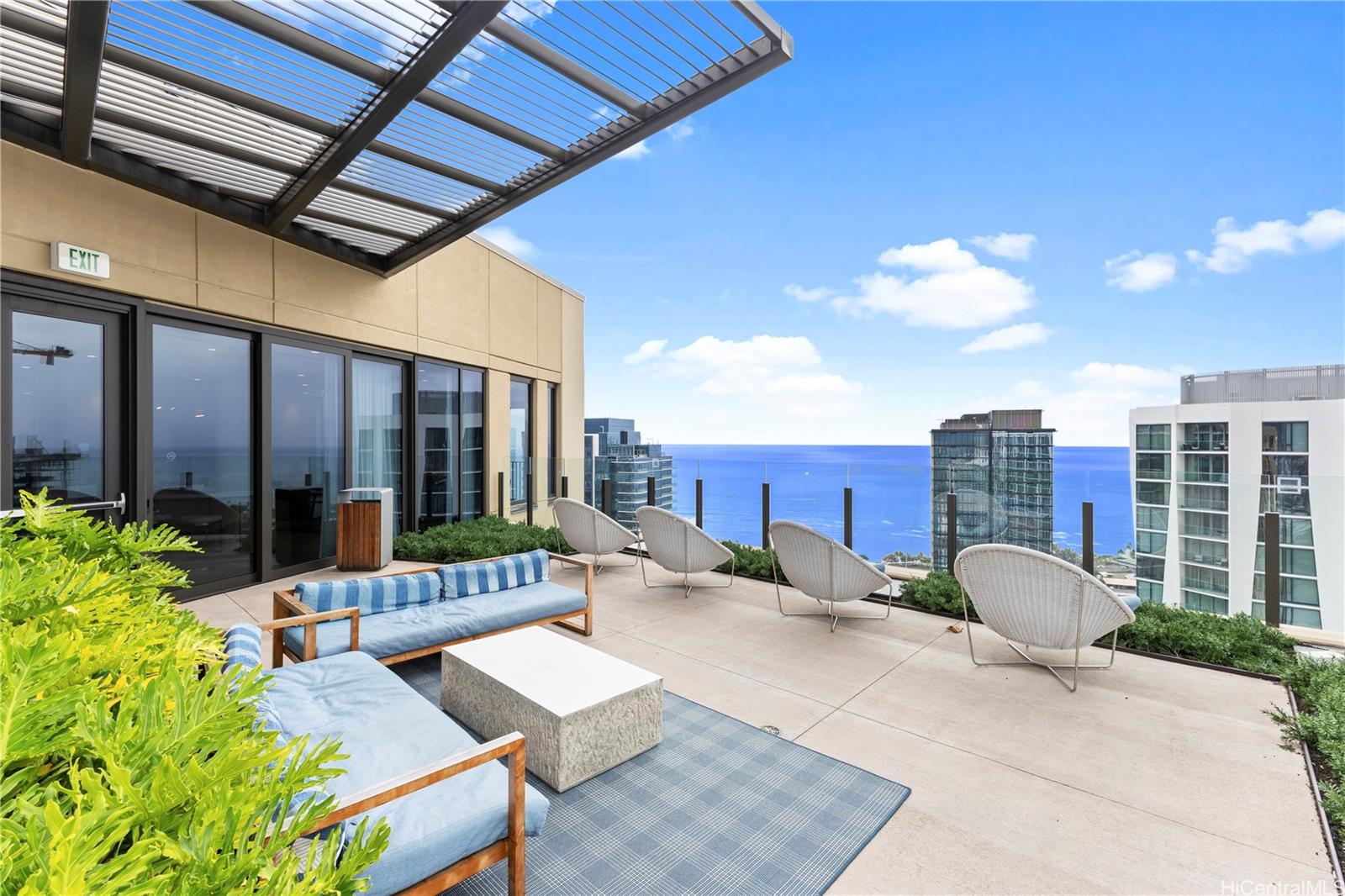 Welcome home and enjoy! High floor unit on the sunset side of the building. Stunning views from the lanai and 668 total sf makes this one of the largest one bedroom units in Aalii. Ease of life with resort-style amenities for your convenience. Unit is located just below the roof deck with breathtaking views from the sky lounge and fitness club. Poolside cabanas = entertain at the barbecue area, keiki pool, and indoor/outdoor event space. Located in the heart of Ward village near restaurants, grocery, and the Ala Moana Center. Convenient walking distance to most areas. Listing by: ILC & Swell Realty LLC (808) 951-4177