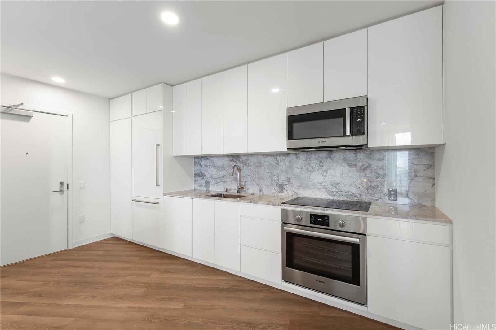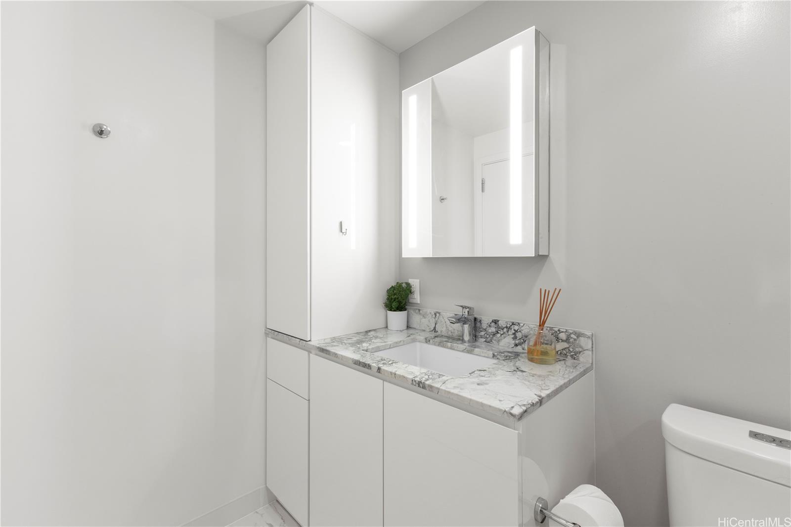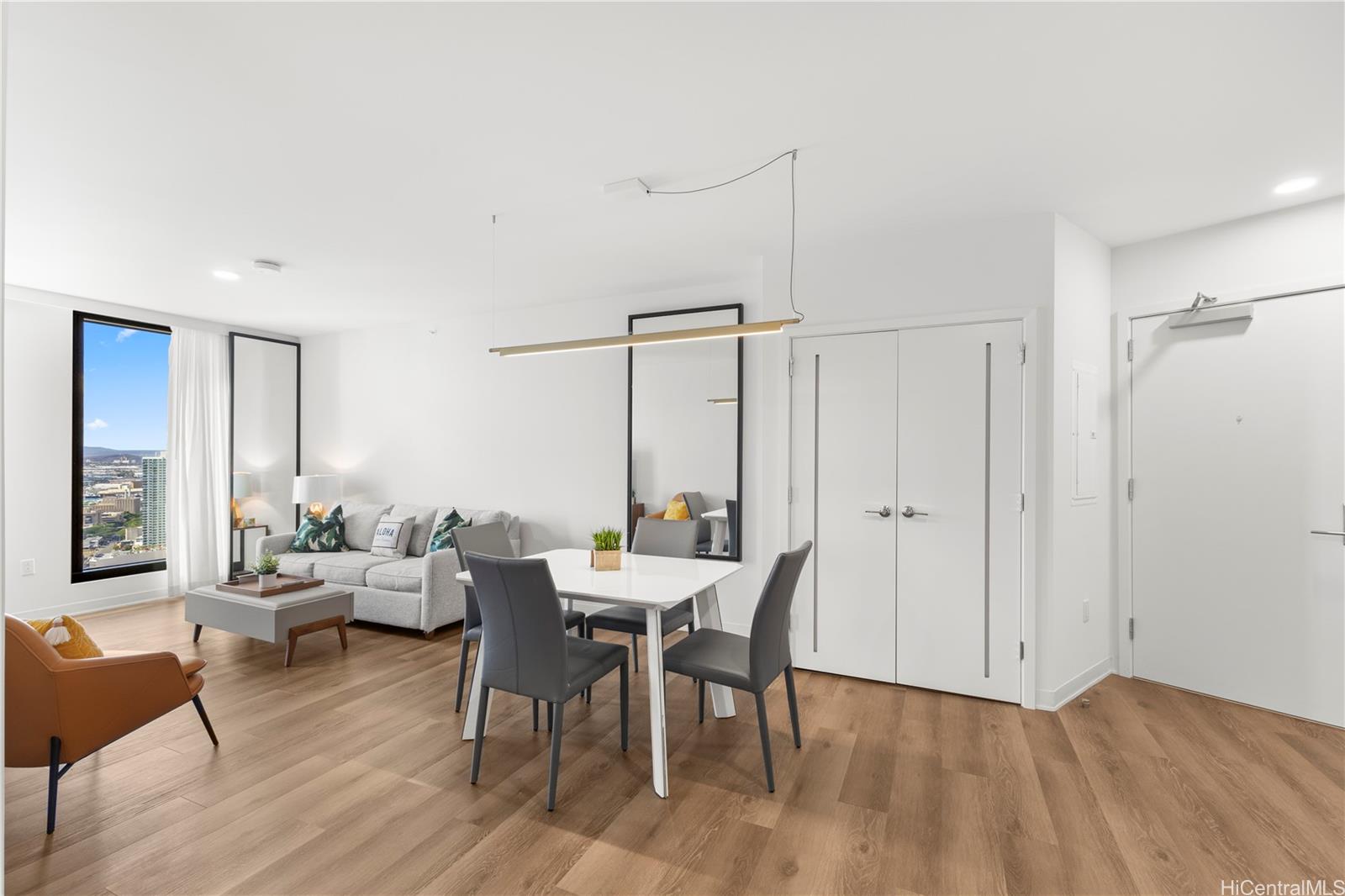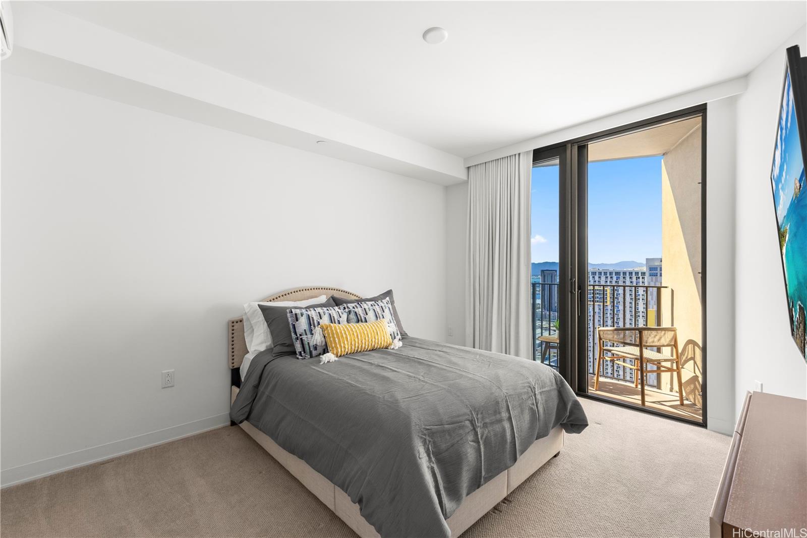 Welcome home and enjoy! High floor unit on the sunset side of the building. Stunning views from the lanai and 668 total sf makes this one of the largest one bedroom units in Aalii. Ease of life with resort-style amenities for your convenience. Unit is located just below the roof deck with breathtaking views from the sky lounge and fitness club. Poolside cabanas = entertain at the barbecue area, keiki pool, and indoor/outdoor event space. Located in the heart of Ward village near restaurants, grocery, and the Ala Moana Center. Convenient walking distance to most areas. Listing by: ILC & Swell Realty LLC (808) 951-4177
