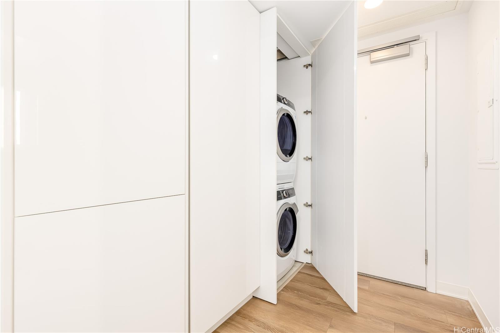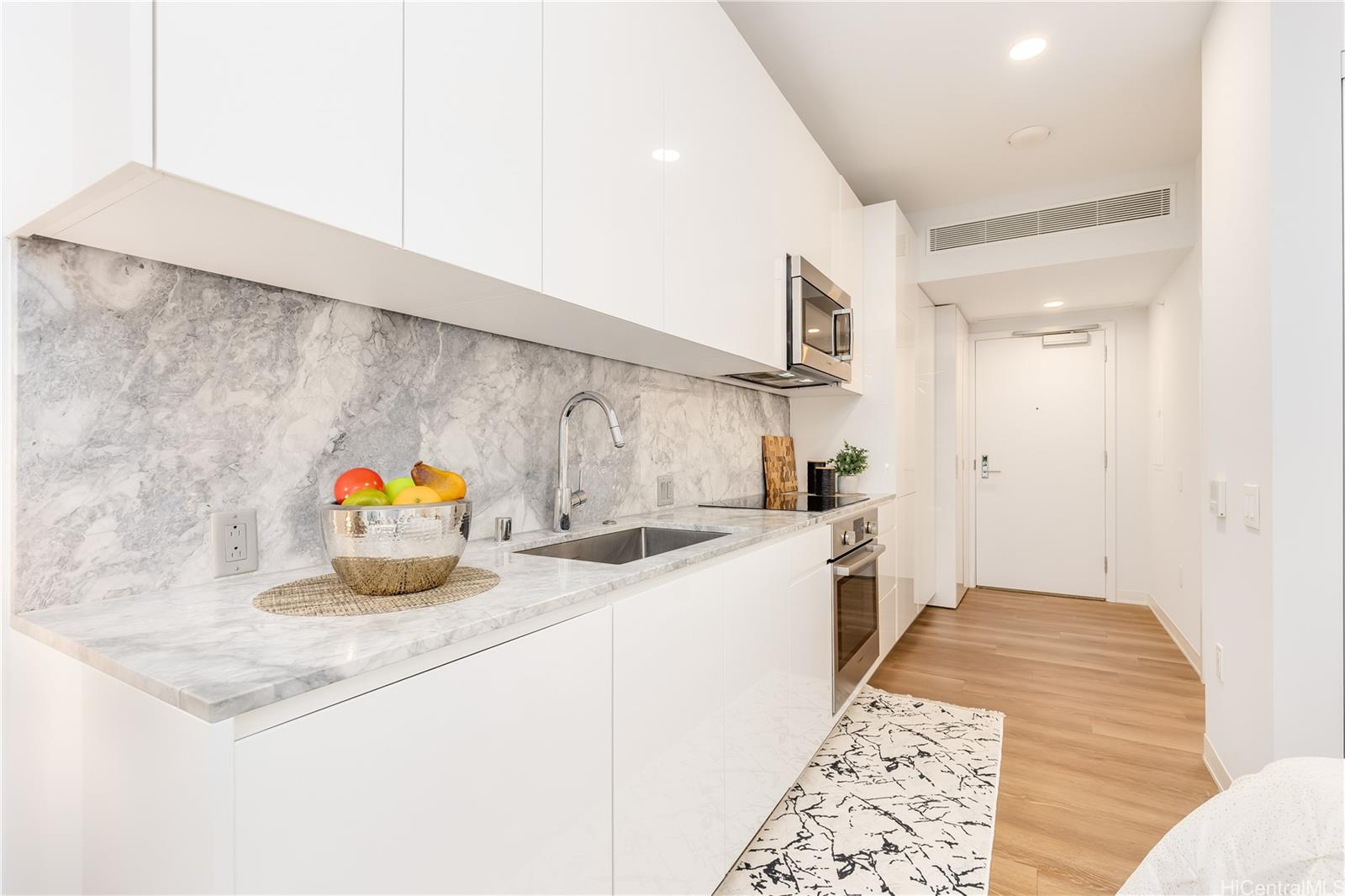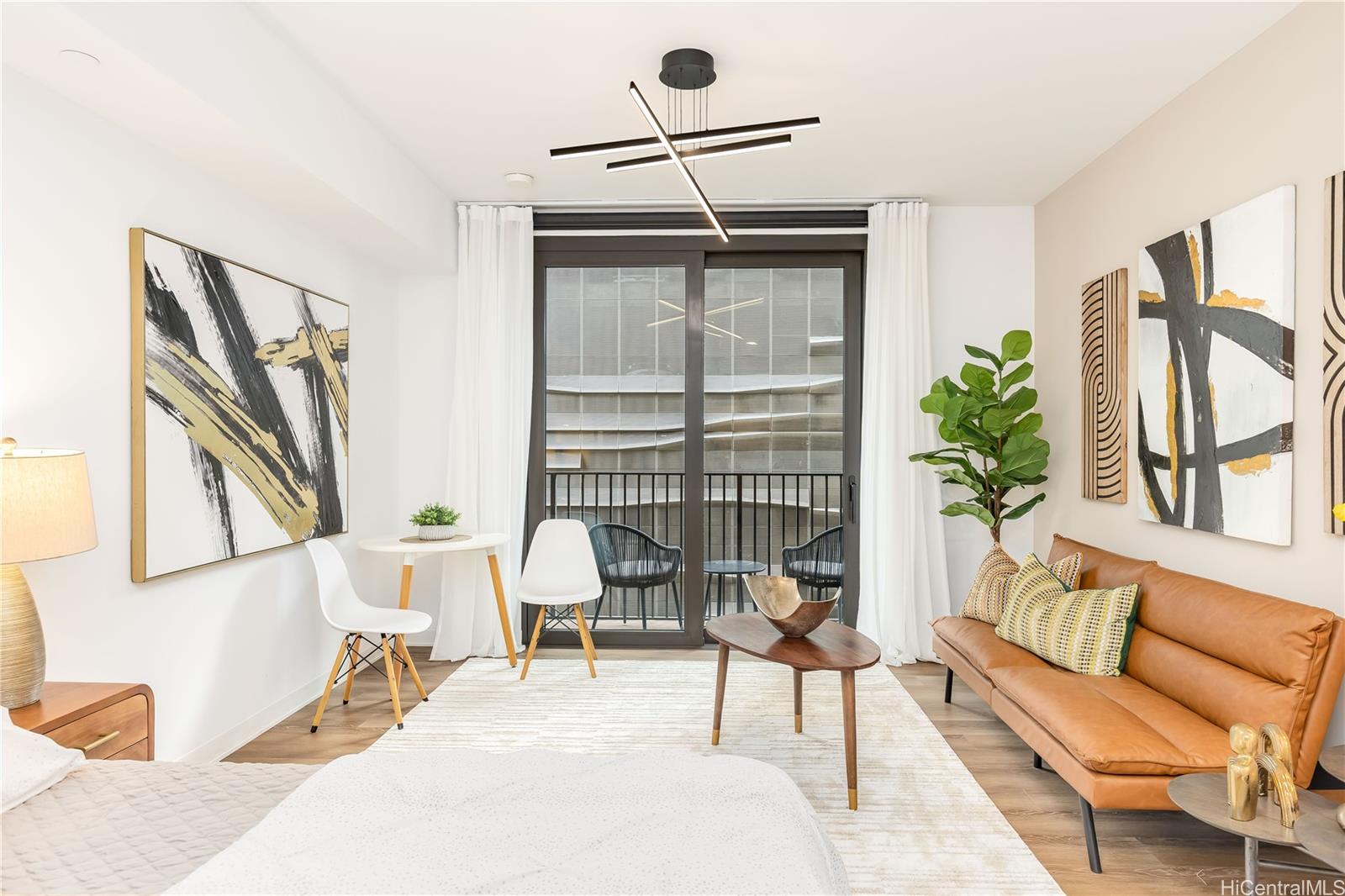 Be in the desirable and thriving Ward Village community with this well-priced, well-maintained studio in Aalii. The parking stall is on the same level as the unit, so no need to wait for an elevator. A 5th floor storage room is also included with the sale. Upgrades include new Washer/Dryer, USB outlets, and a home smart system. Digital blinds and fresh drapes for the lanai doors give multiple privacy options. This unit has high 9ft ceilings, which make the space feel more open. Aalii is known for its plethora of amenities and is next to Whole Foods in Kakaako. The WV community benefits from Assocation security patrol, and has wide sidewalks. Enjoy premium restaurant and retail offerings, all within a conveniently accessible area. Listing by: eXp Realty (808) 284-0808
