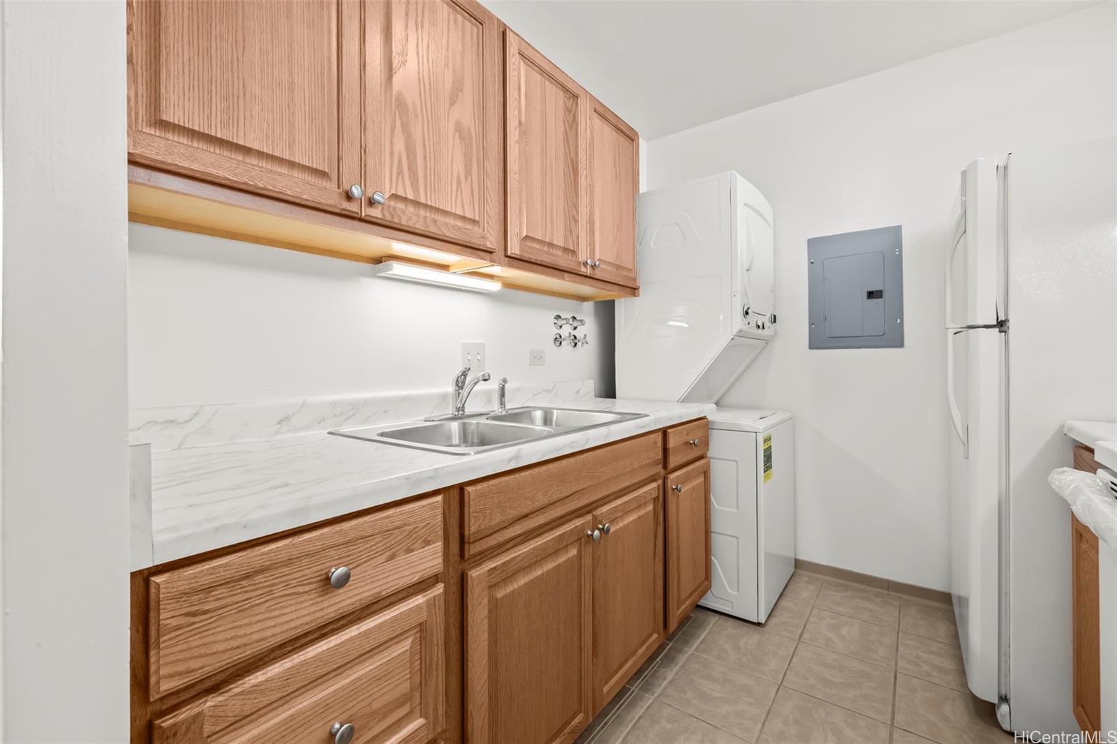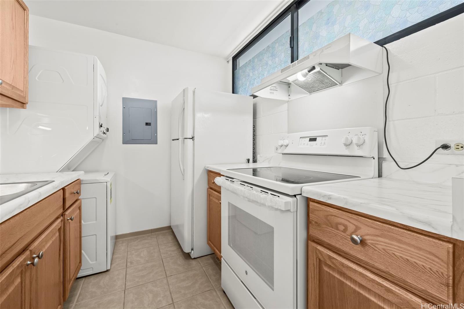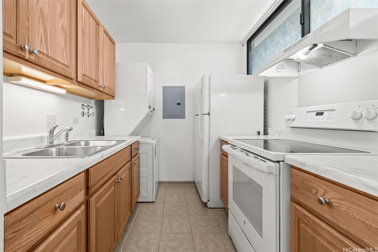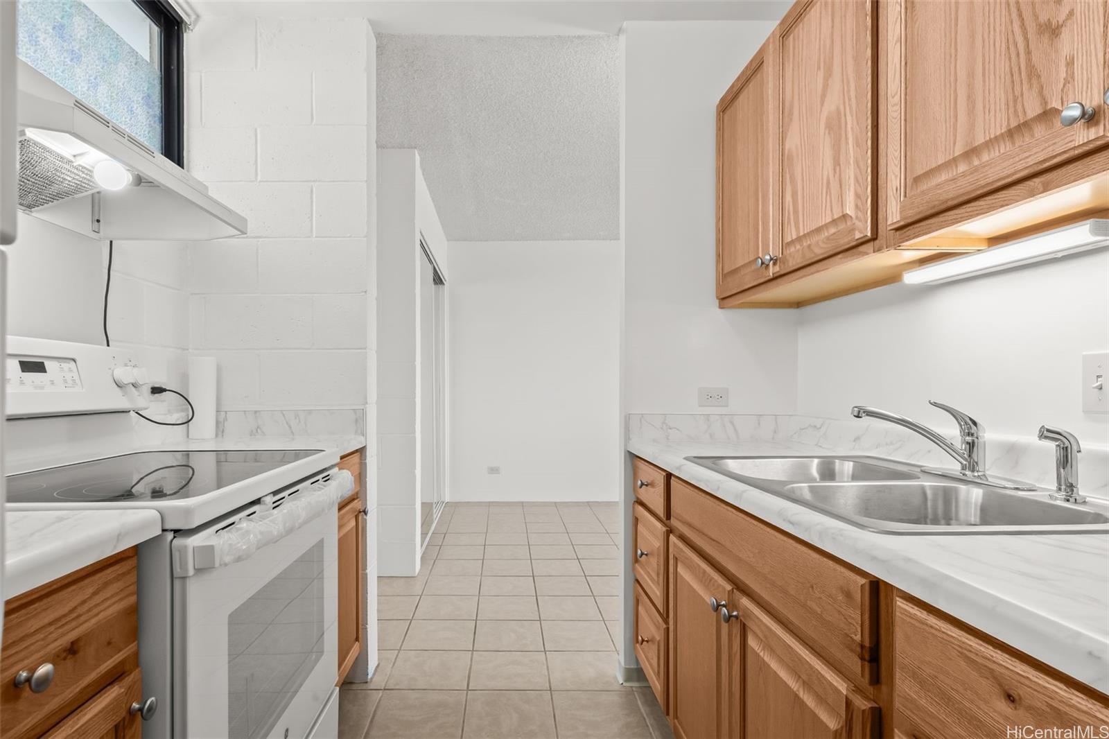 Welcome to Centre Court - New Renovations - Kitchen with all new cabinets/countertops, G.E. Glass top range, faucet, disposal, lite fixtures, & electrical outlets. New electrical panel with all new circuit breakers. New paint thru-out, with all new screens, with ceramic tile floors thru out, 2 mirrored closets, in room and living room. Bathroom upgraded with new hardware for toilet, sink, tub, & towel bars. Newer stack washer/dryer, fixed double wall divider, w/door for room privacy, w/track lighting for living room. Property has a rolling gate w/clicker, enclosed gated swimming pool, BBQ area w/picnic tables, existing open tennis court area. Gated driveway entrance has video cameras w/others on site, secured/keyed lobby w/2 elevators, and mail boxes. Convenient trash chutes on each floor, w/large trash bin, located at parking area. Assigned parking stall & pet friendly. Short walking distance to Halawa Skytrain Station & Aloha Stadium Swap Meets. Near Military Bases, and Pearlridge Malls. A must see to appreciate. Listing by: Executive Investors Realty (808) 255-6741