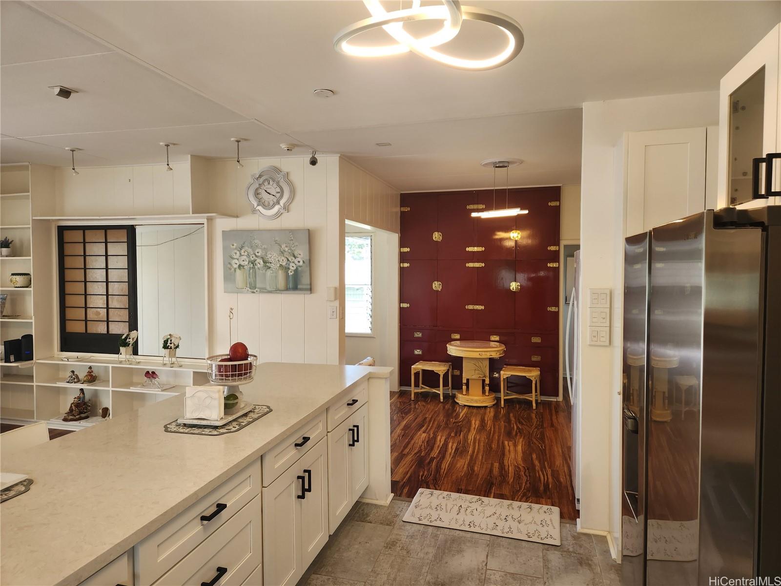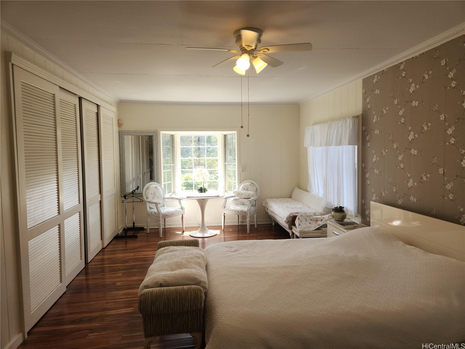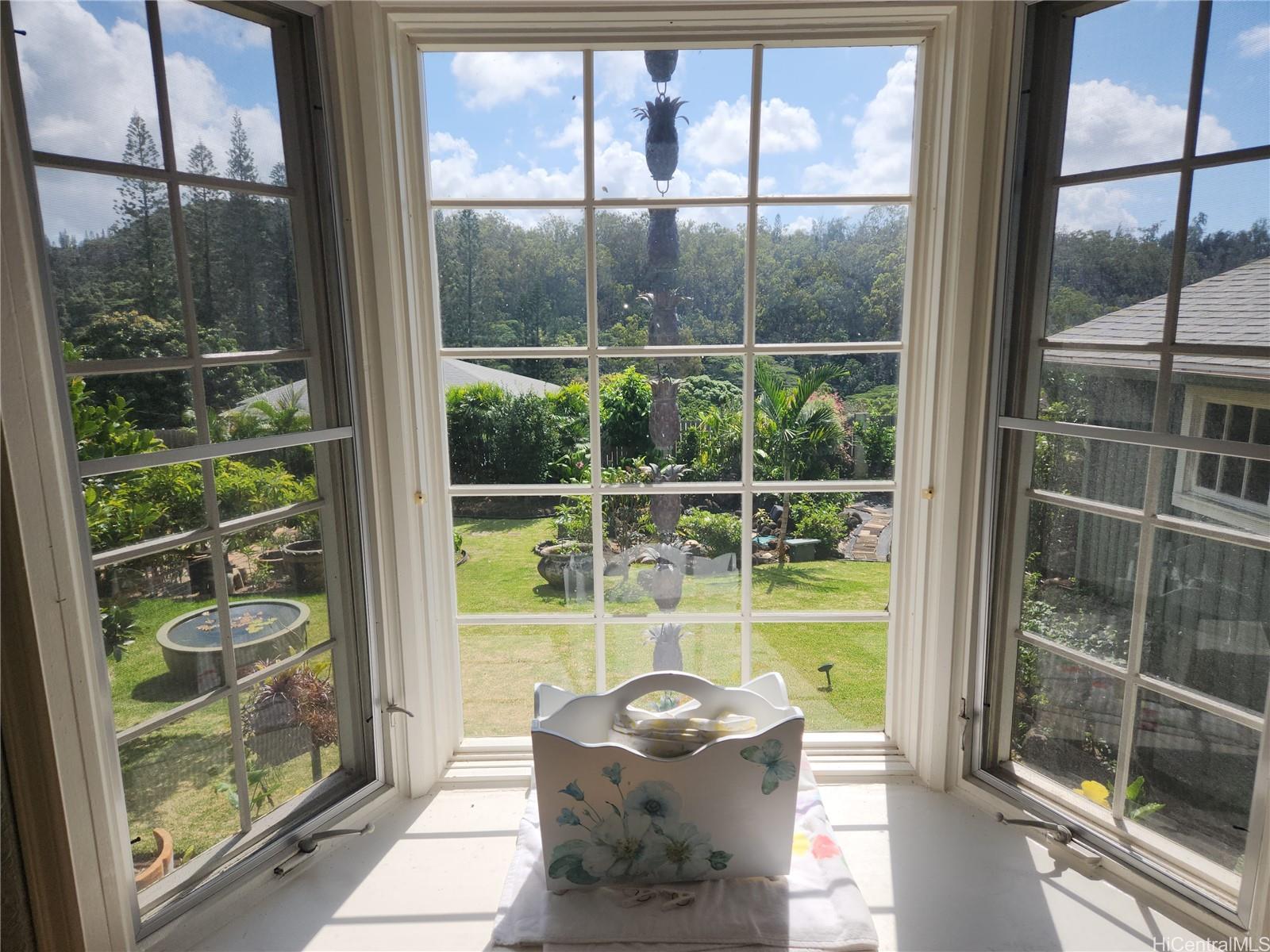 string(978) "Move up to this unique special home at the top of Aiea Heights. Lush green tranquil setting away from busy road on large 11,584 sq ft landscaped lot with fish pond, waterfall and fruit trees galore - apple, pear, cherry, tangerine, lime, sapodilla, loquat, dragon fruit, papaya and more. Main dwelling has large main suite and two bathrooms upstairs, and large room with bathroom downstairs. Separate cottage with koa wood floors has its own bathroom - great for extended family, office or workshop space. Large enclosed lanai to enjoy the views, new flooring, new exterior siding, renovated open kitchen, sliding door with built in blinds, renovated bathrooms in 2025, built in cabinets, solar water heater, roof replaced in 2019, 200 amp electrical, fenced yard for added privacy, sliding gate to carport, parking pad at side of home for added parking space, cabana with fireplace & bar. Shown by appointment only - call your realtor to schedule a showing. Home is sold As Is."