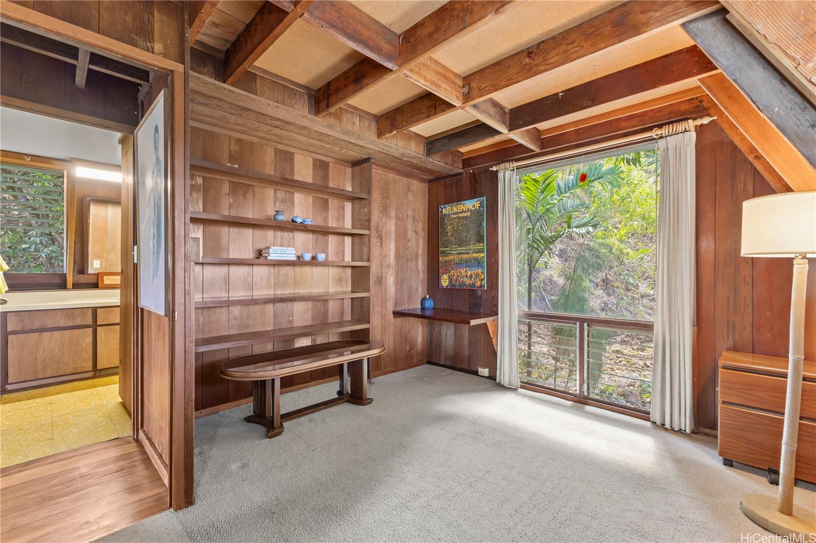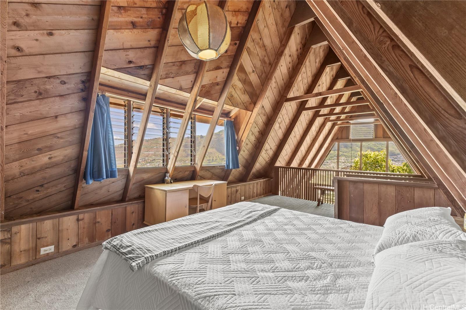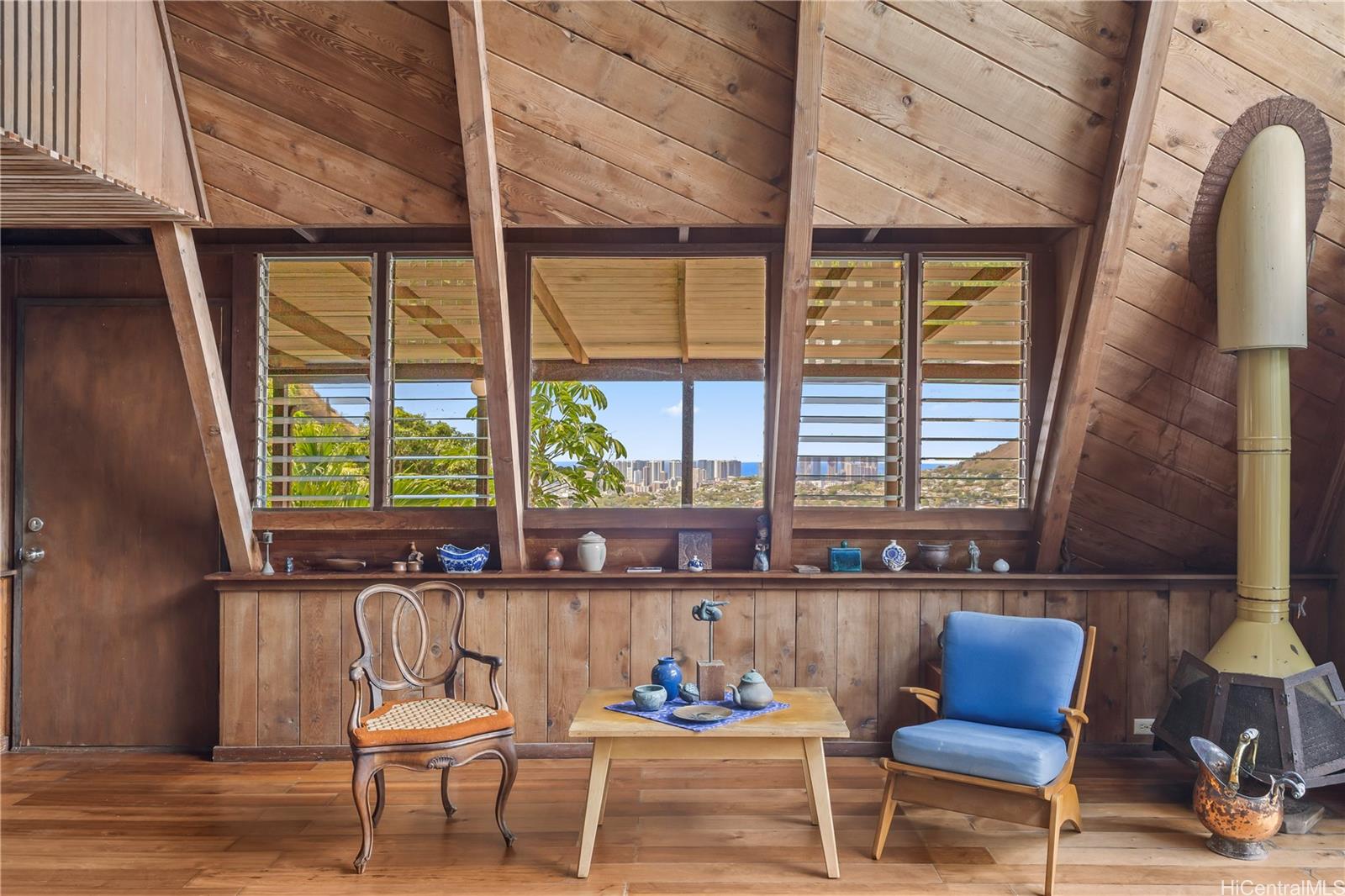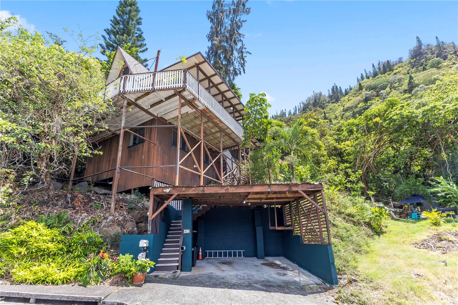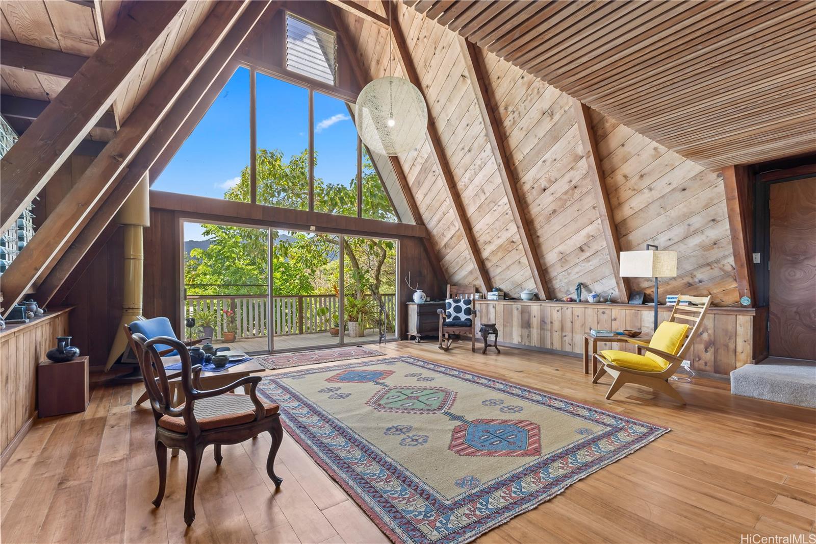 Step into this architecturally distinctive A-frame retreat in the lush Manoa Valley—where mid-century modern charm meets breathtaking natural beauty. Crafted for style and functionality, this home captures panoramic valley, mountain, and ocean views from multiple vantage points. Its clean lines, vaulted ceilings, and expansive windows reflect architect Carl Reinhardt’s signature mid-century style, while the flexible layout offers exceptional versatility for multi-generational living or creative use of space.