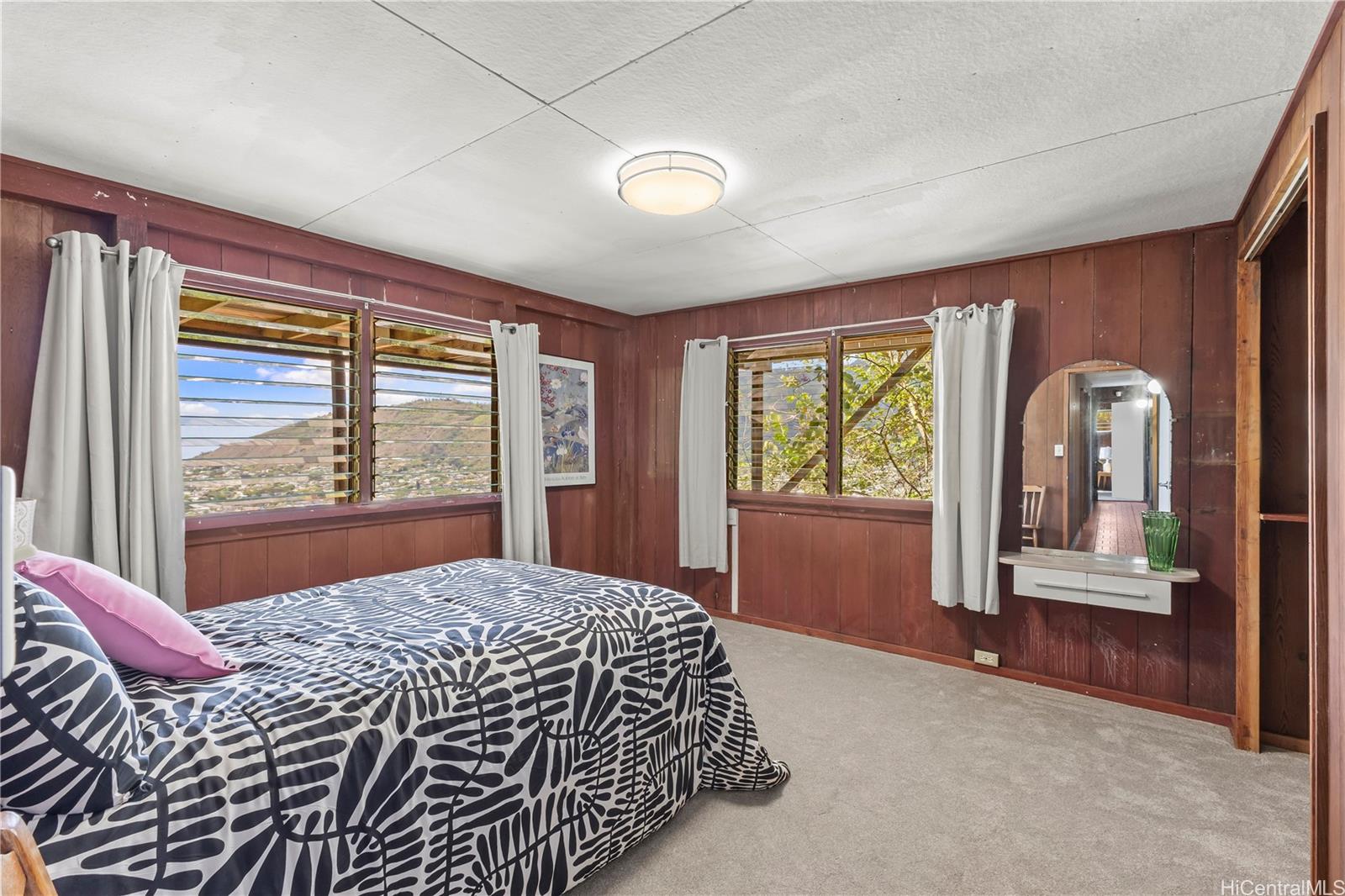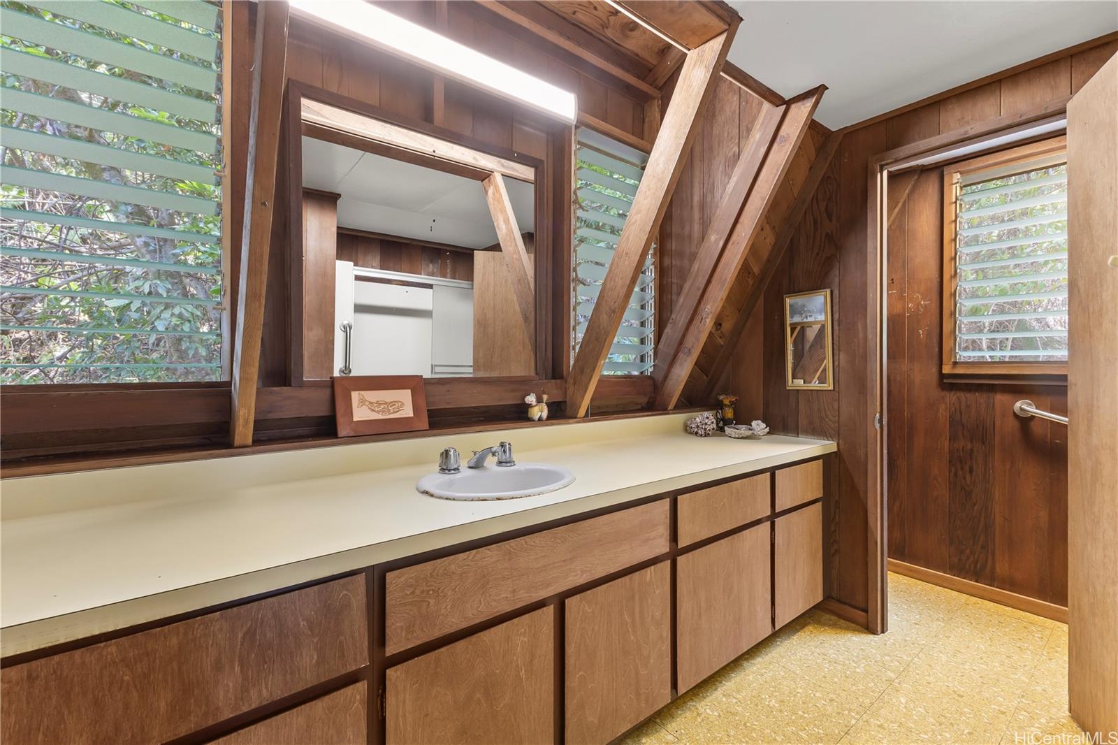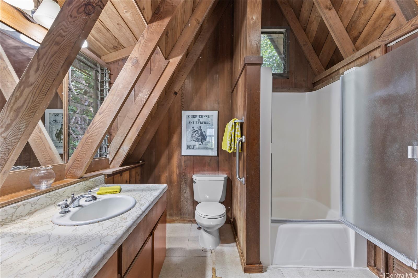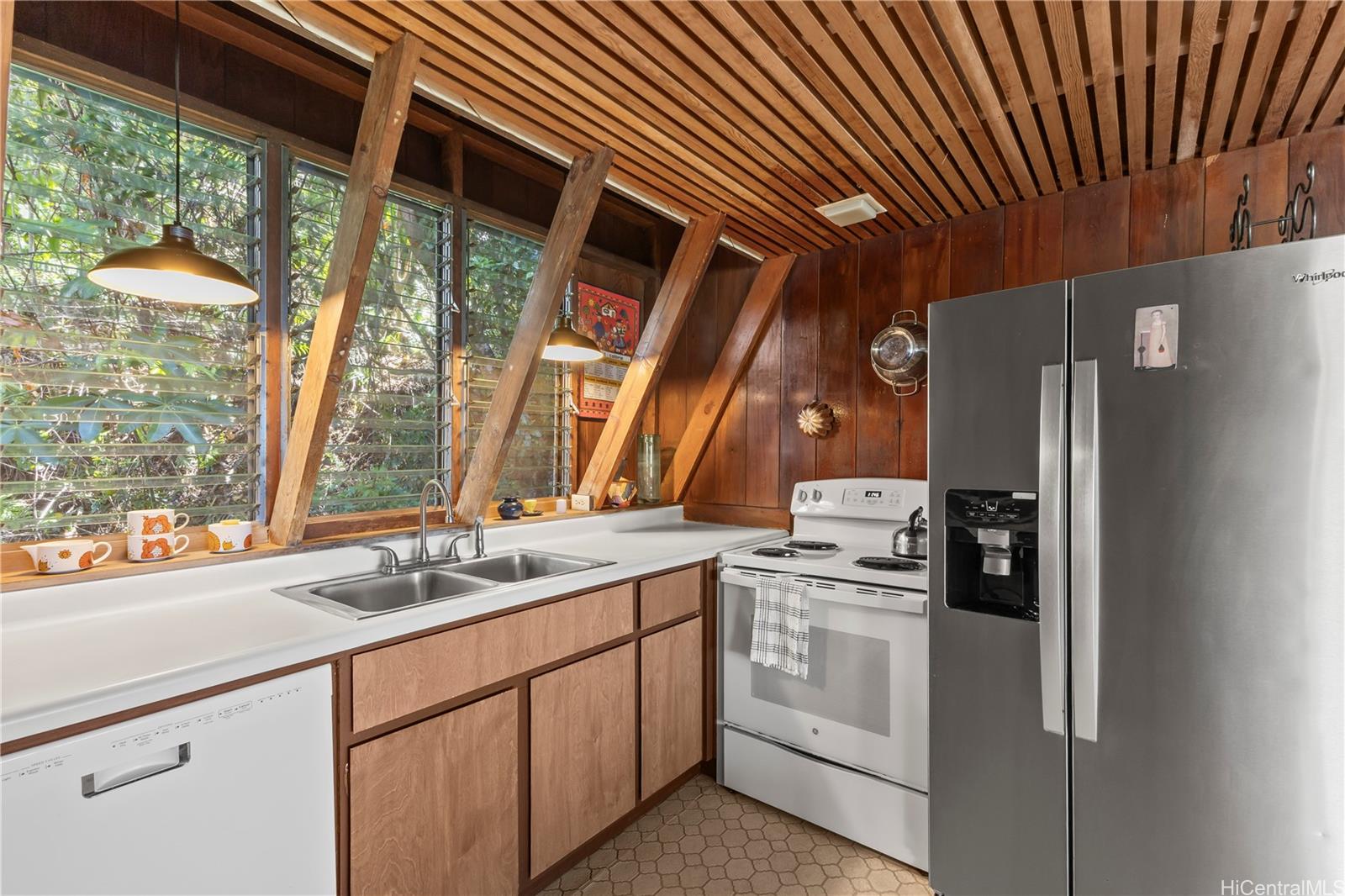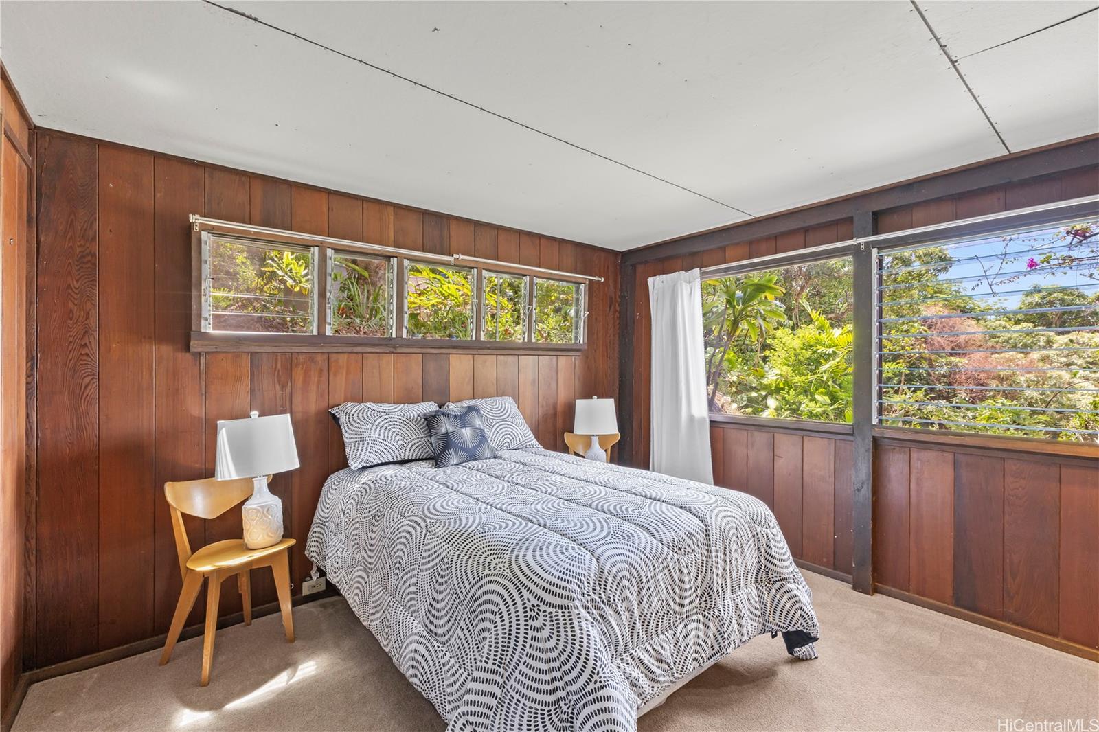Step into this architecturally distinctive A-frame retreat in the lush Manoa Valley—where mid-century modern charm meets breathtaking natural beauty. Crafted for style and functionality, this home captures panoramic valley, mountain, and ocean views from multiple vantage points. Its clean lines, vaulted ceilings, and expansive windows reflect architect Carl Reinhardt’s signature mid-century style, while the flexible layout offers exceptional versatility for multi-generational living or creative use of space.